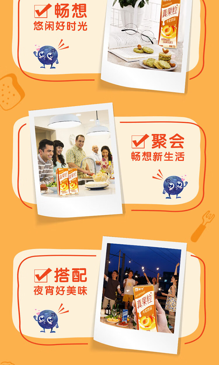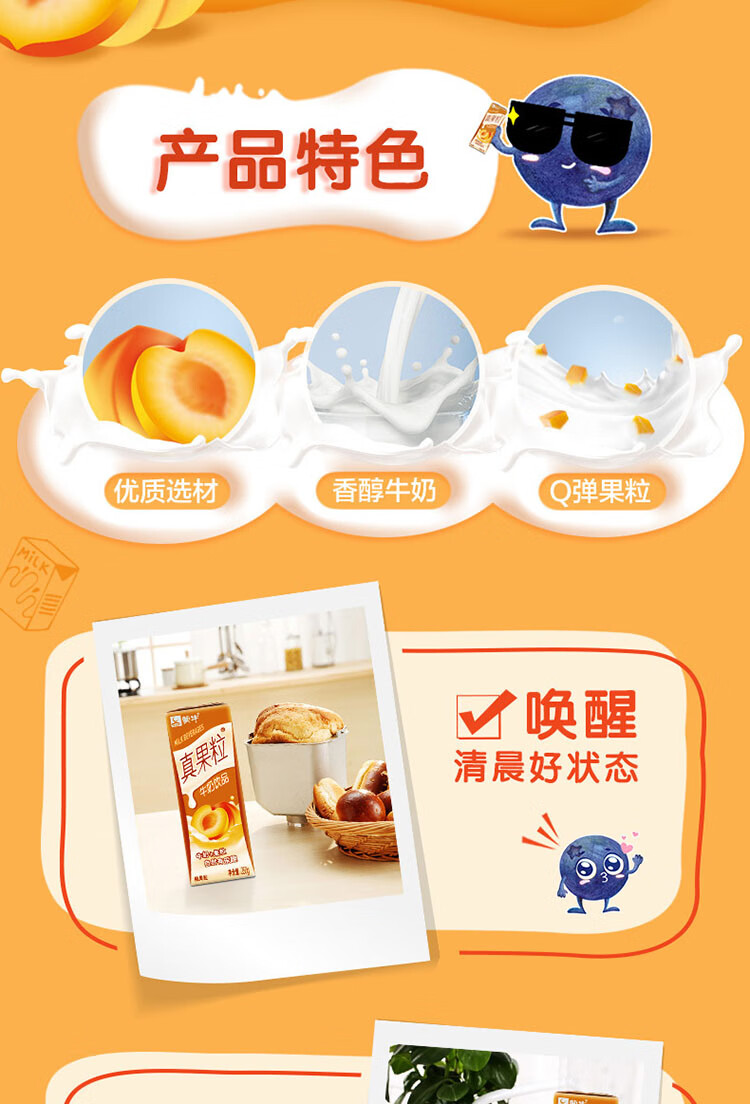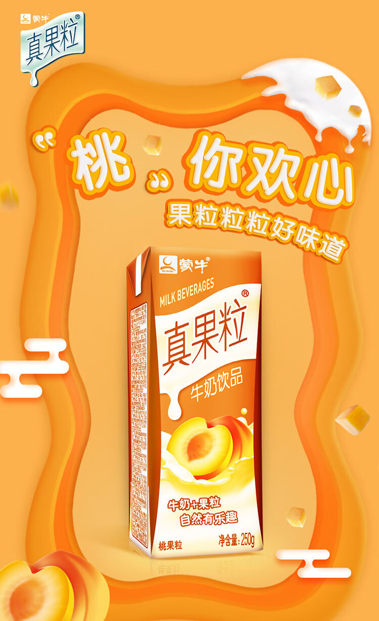 蒙牛真果粒黄桃味牛奶饮品250ml*12盒