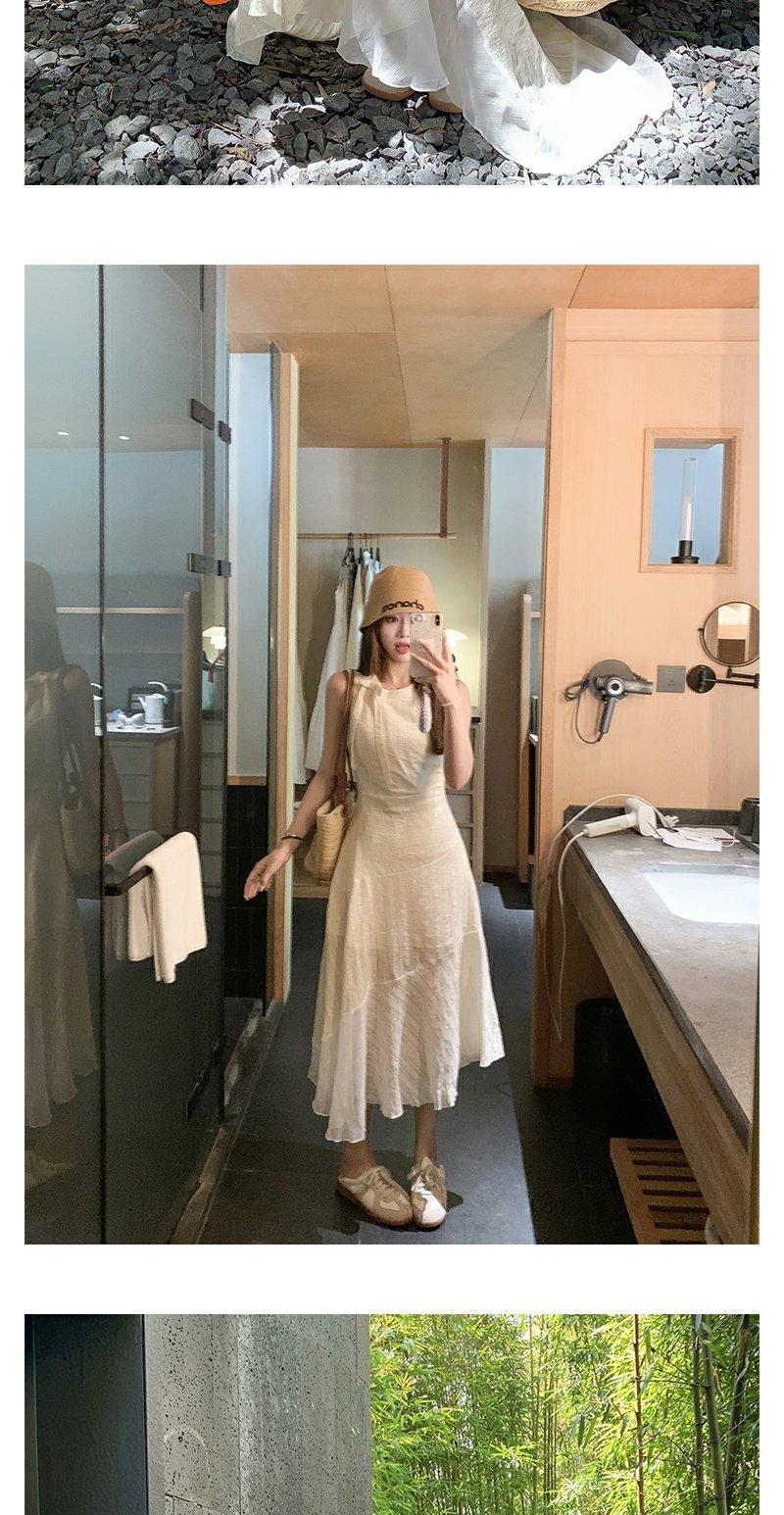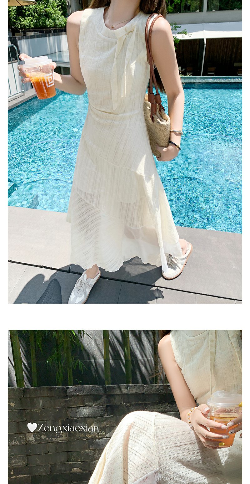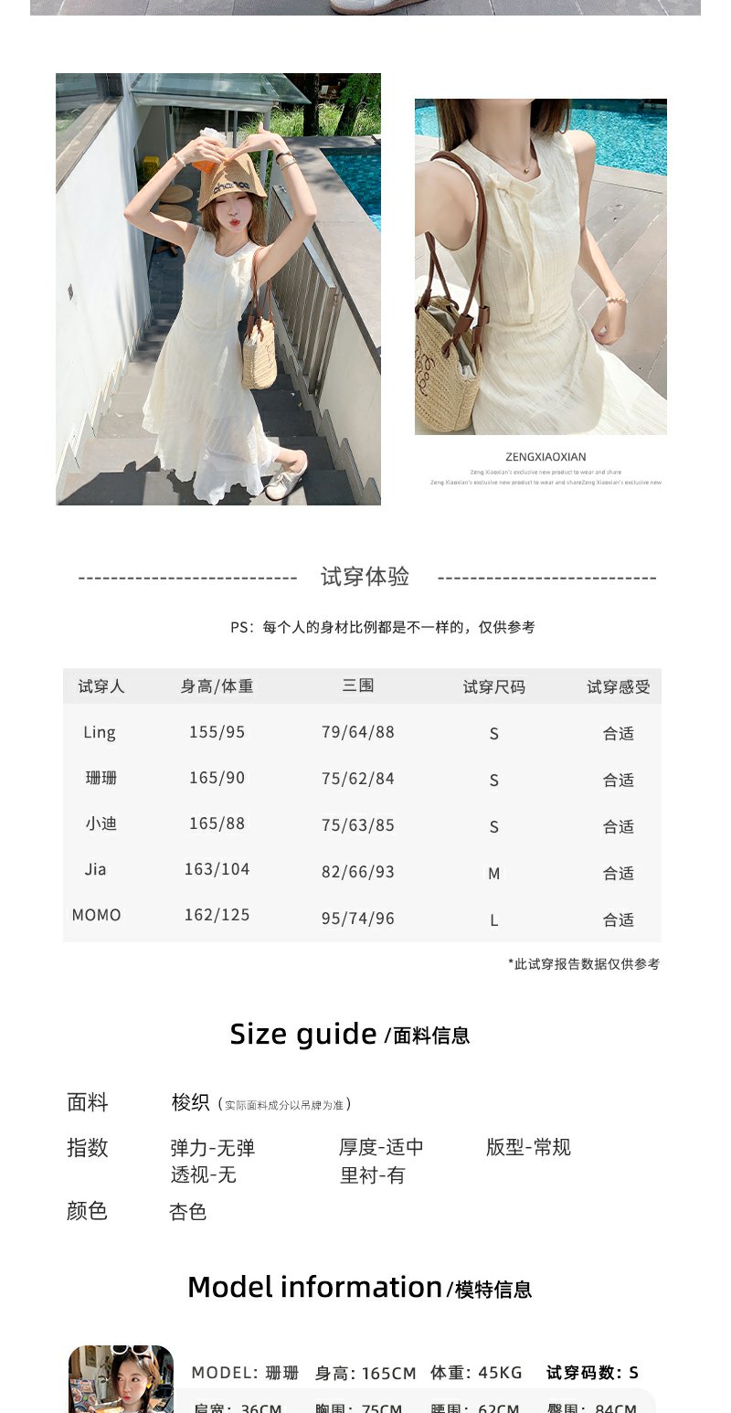 <曾小咸推荐>法式蝴蝶结杏色无袖连衣裙女长裙