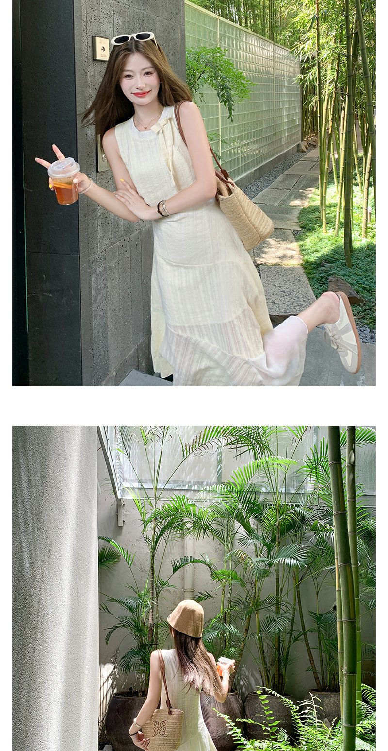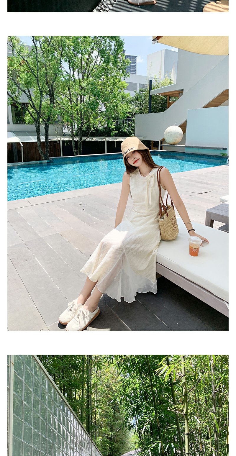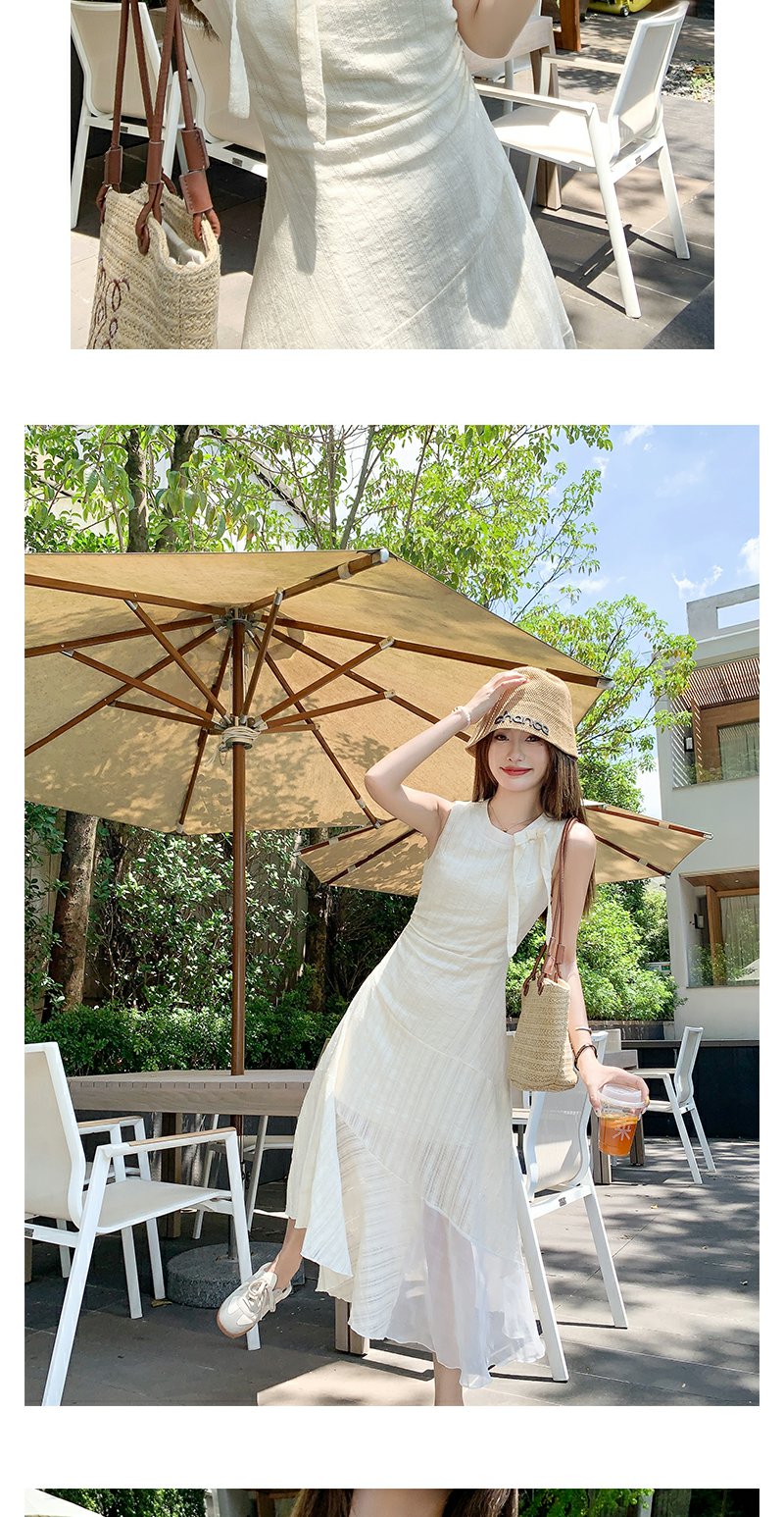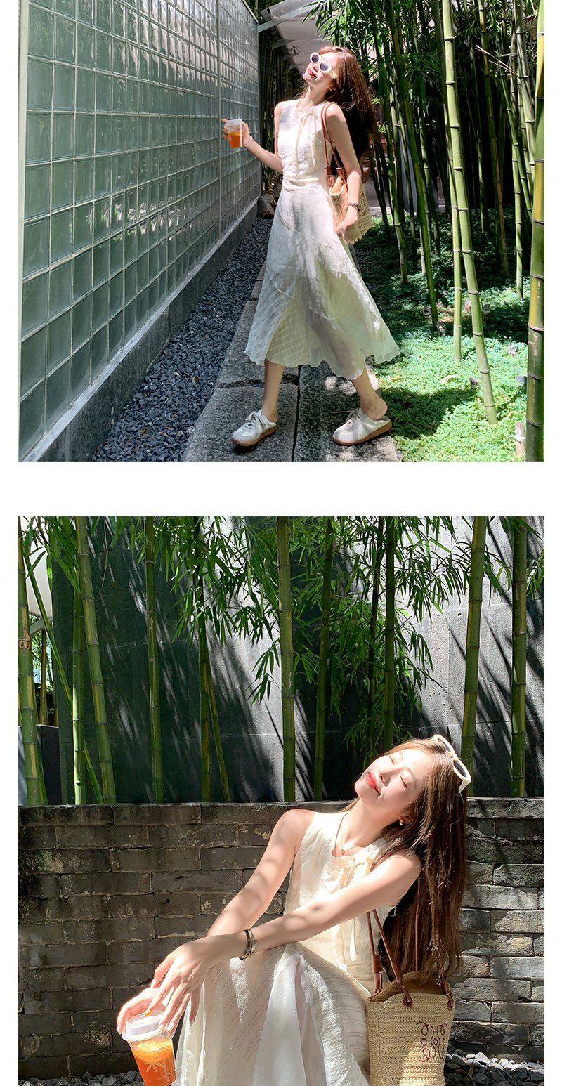 <曾小咸推荐>法式蝴蝶结杏色无袖连衣裙女长裙