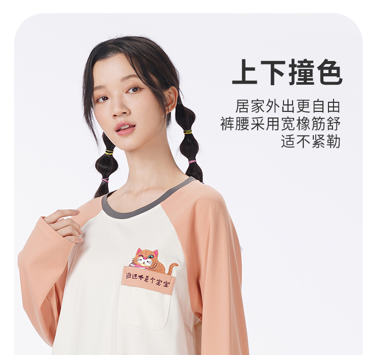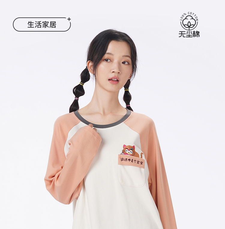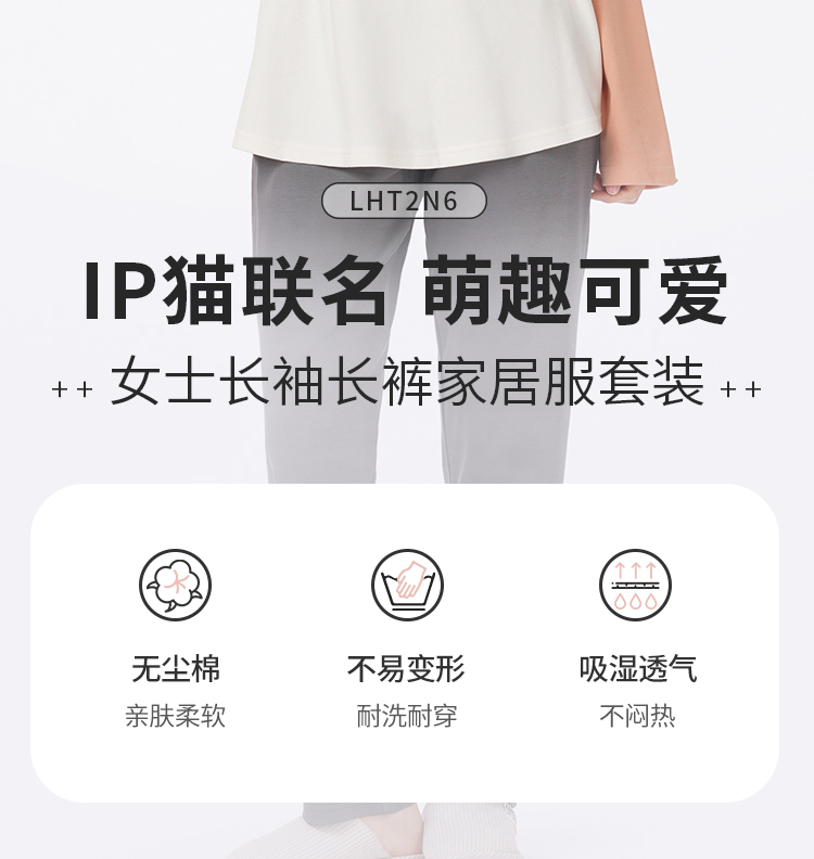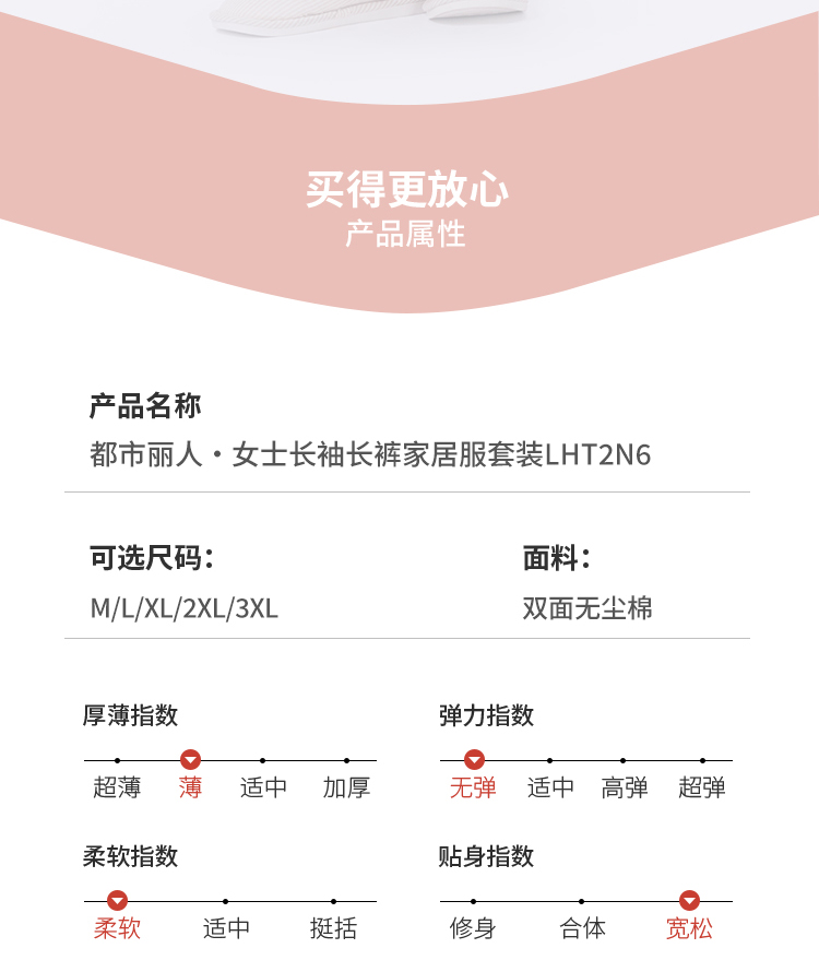 都市丽人睡衣生活家居长袖家居服双面无尘棉薄女士棉质套装LHT2N6