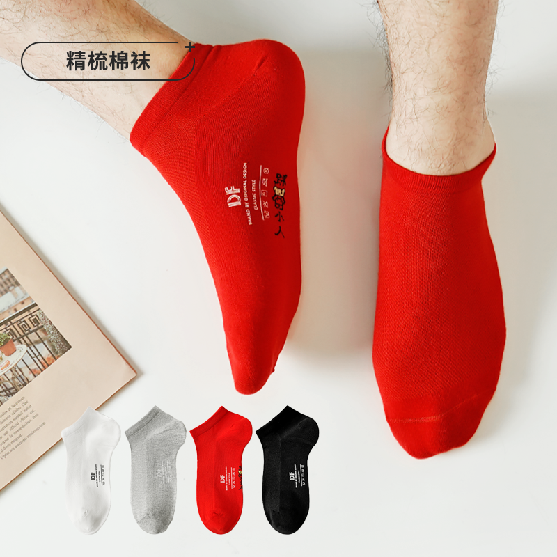都市丽人都市锋尚简约系列精梳棉袜子中厚男士男士船袜本命年必备红品红色新年本命年红品FC3CA2