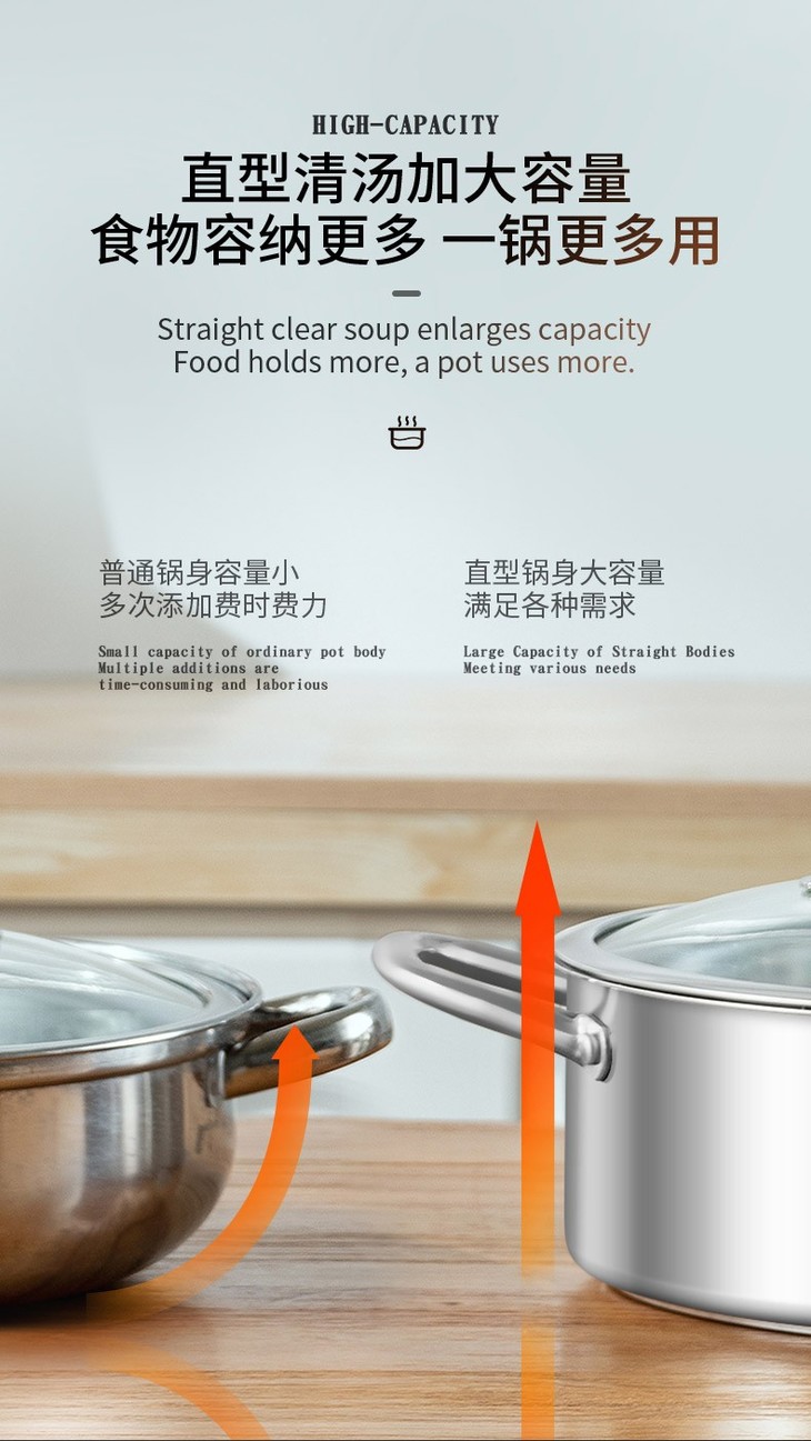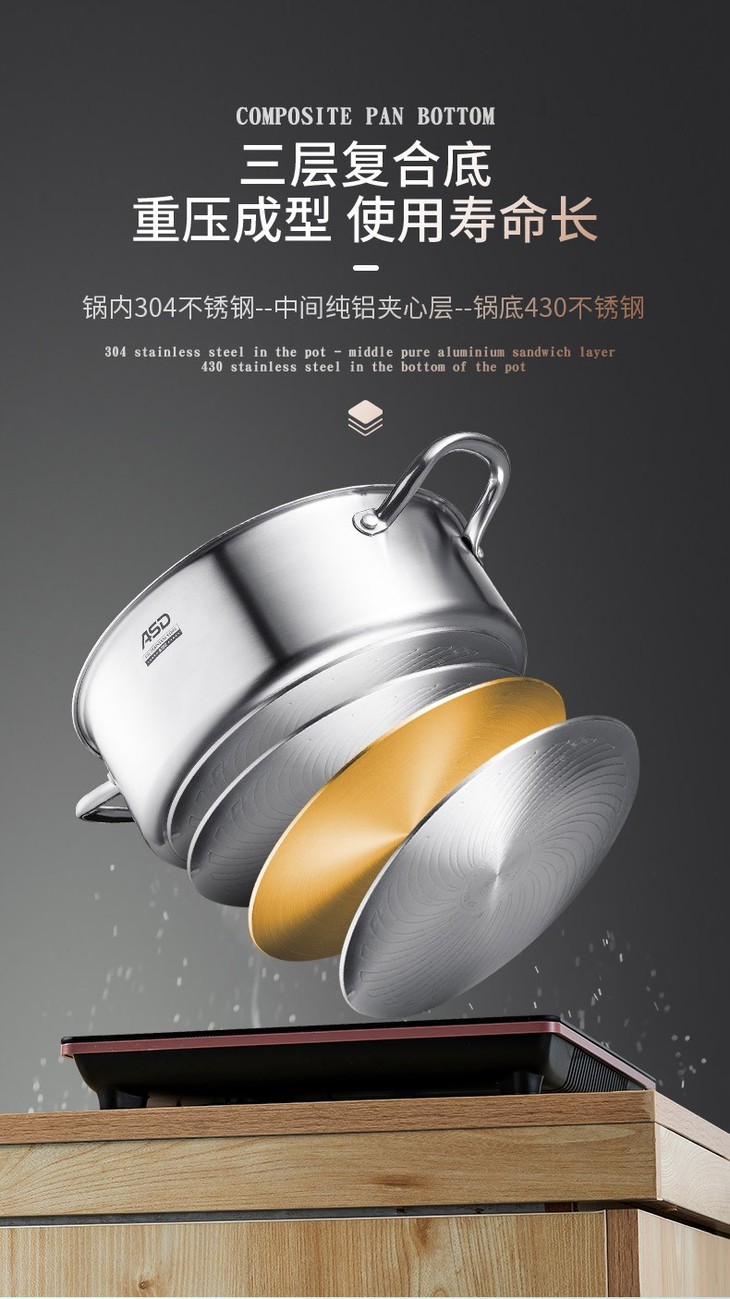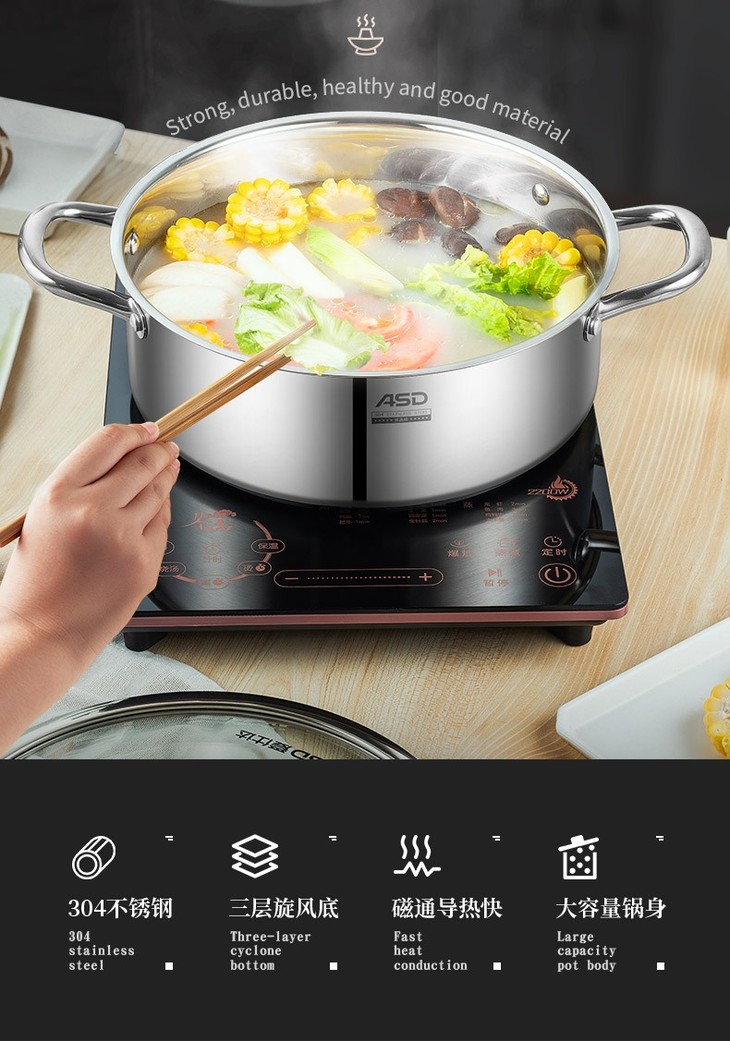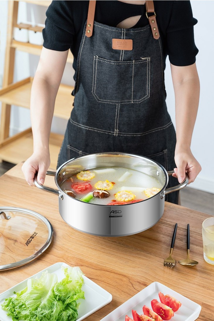 爱仕达(ASD)304不锈钢直身火锅汤锅一锅多用 加厚复底燃气明火电磁炉通用 28CM 清汤火锅 FS28A1WG