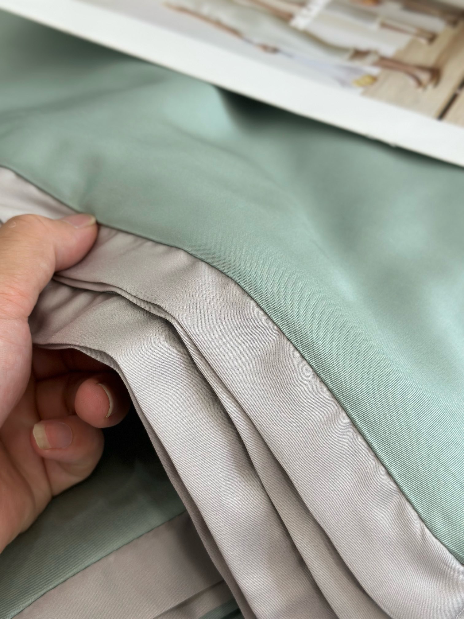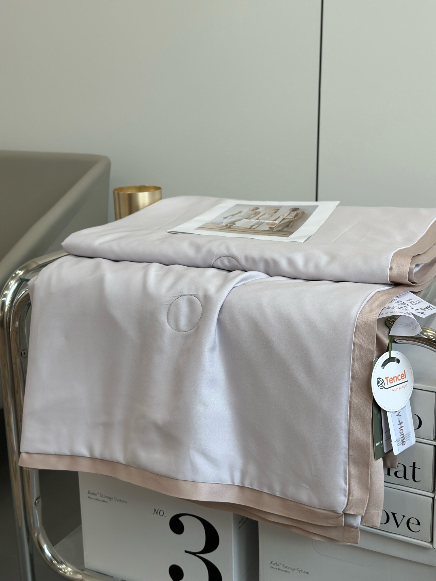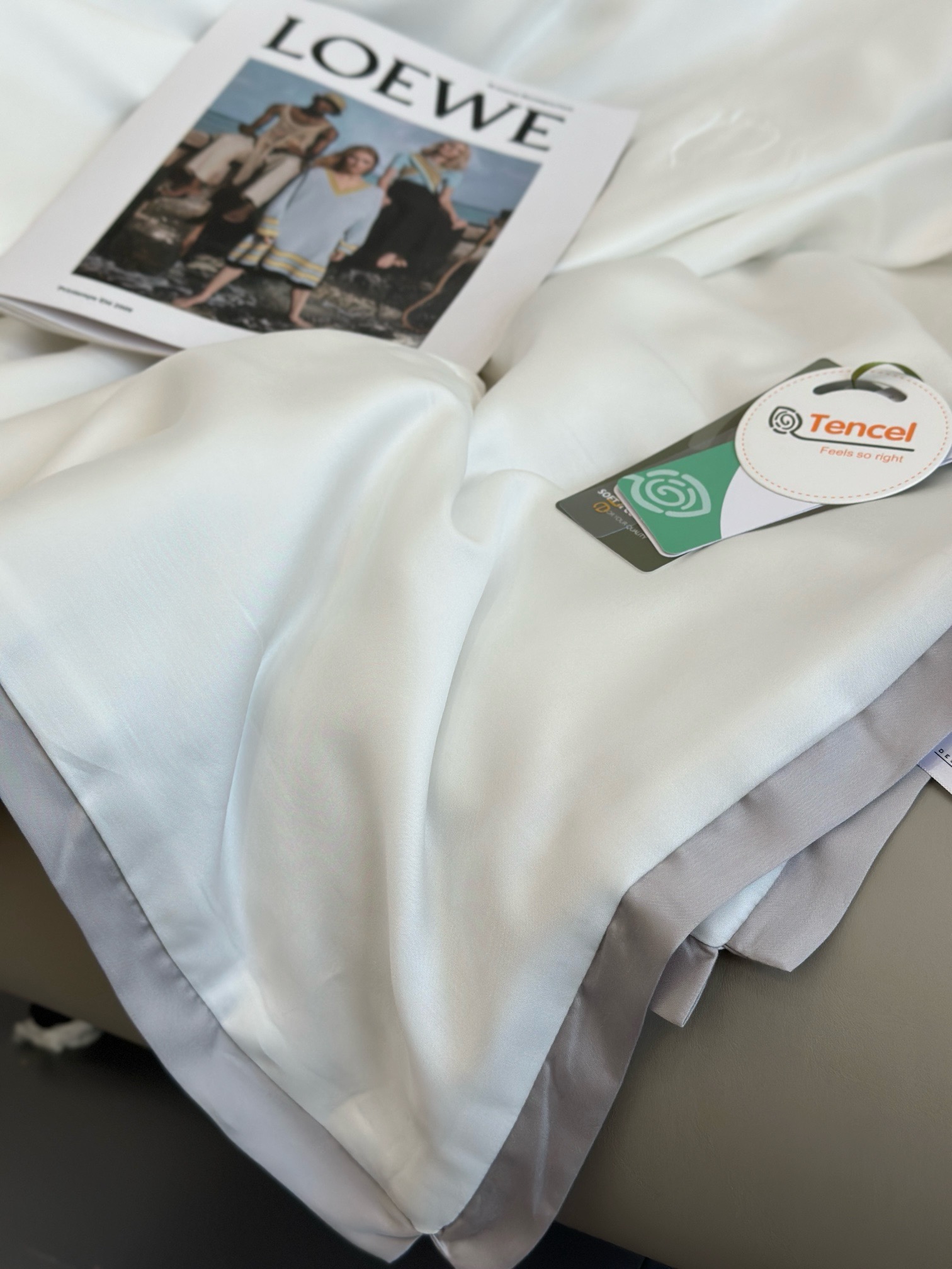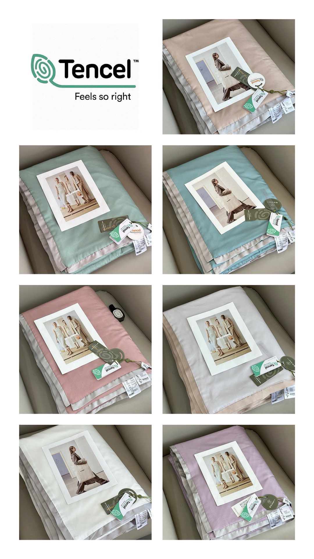 “无比细腻丝滑的兰精天丝面料,手感特别柔软,可以直接贴身使用,直接机洗,夏天空调间里用真的无比无比舒适~”