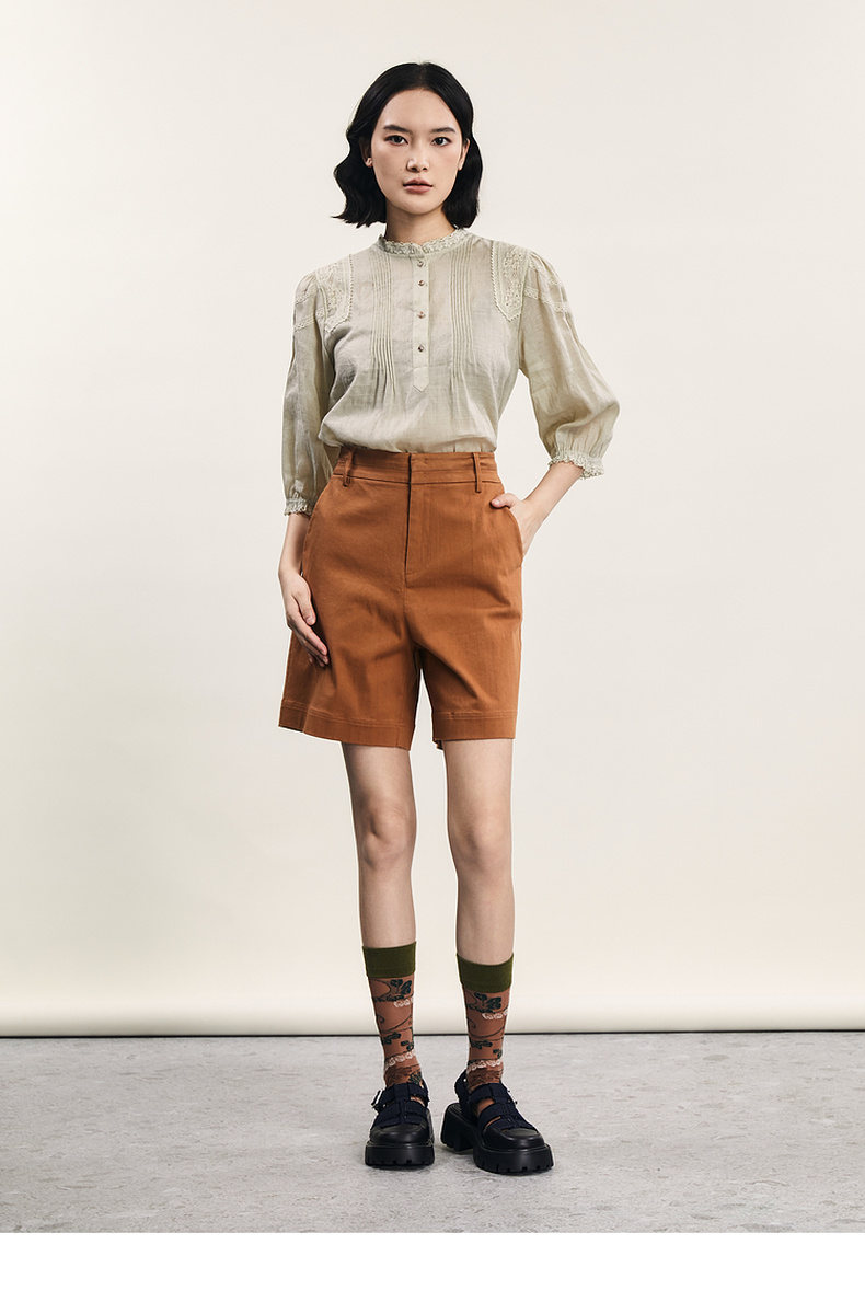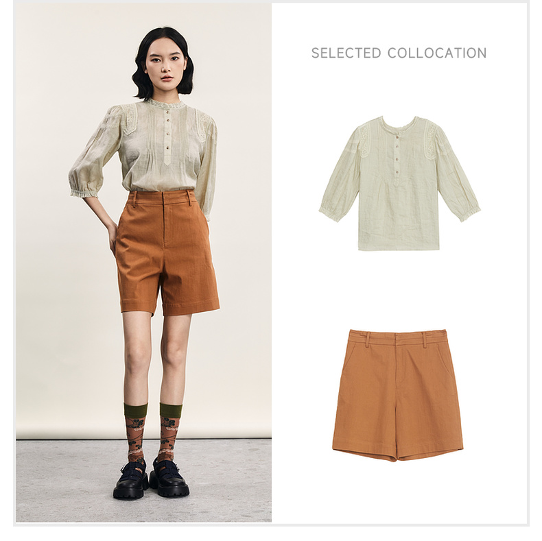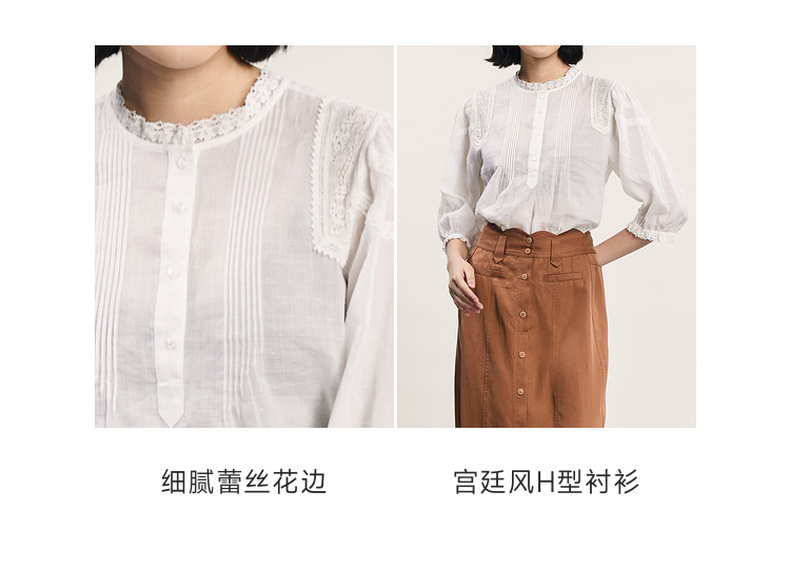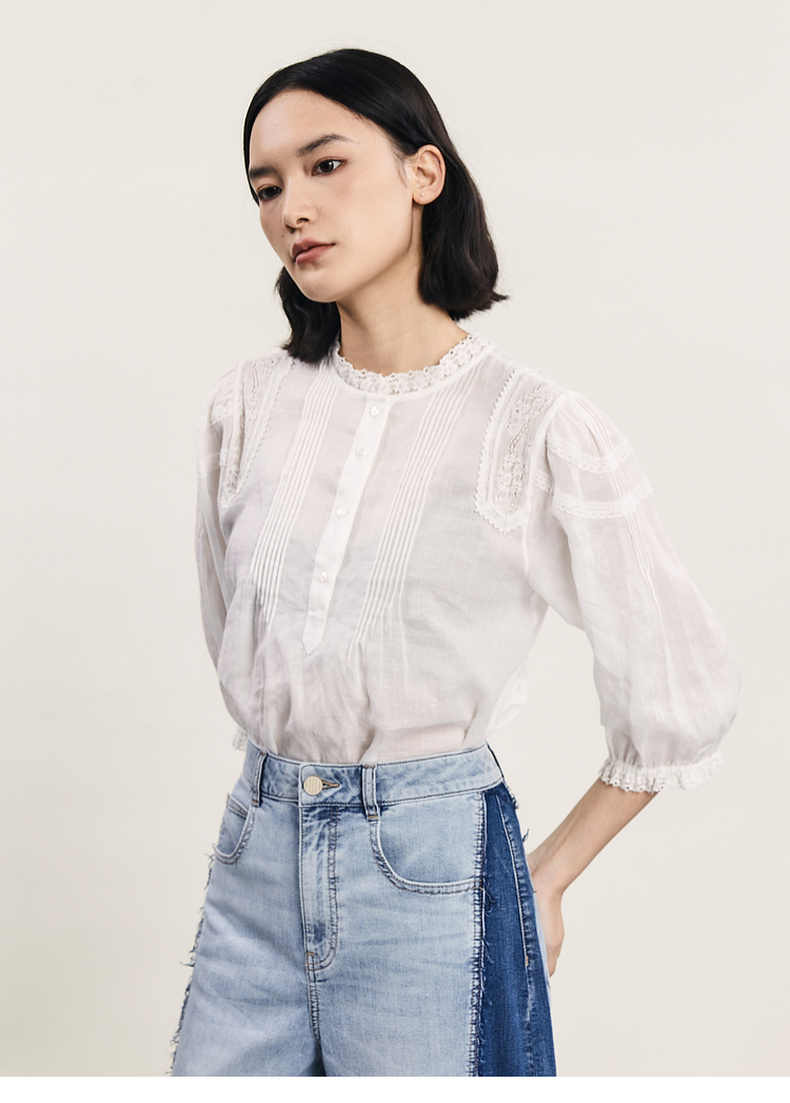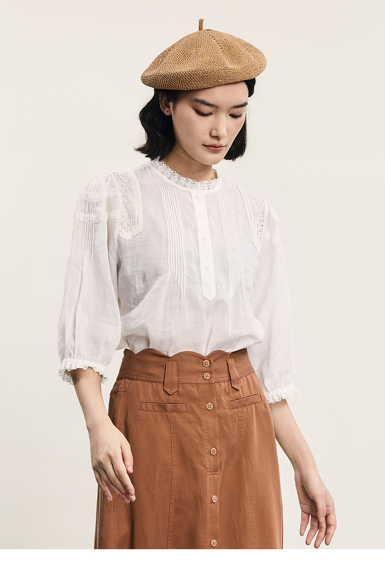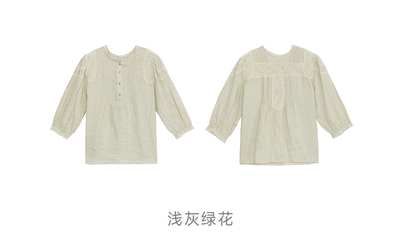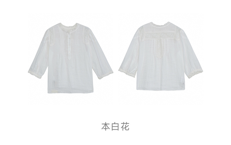 谜底苎麻衬衫七分袖女2024年夏新品复古风绣花透气衬衣242GC0655