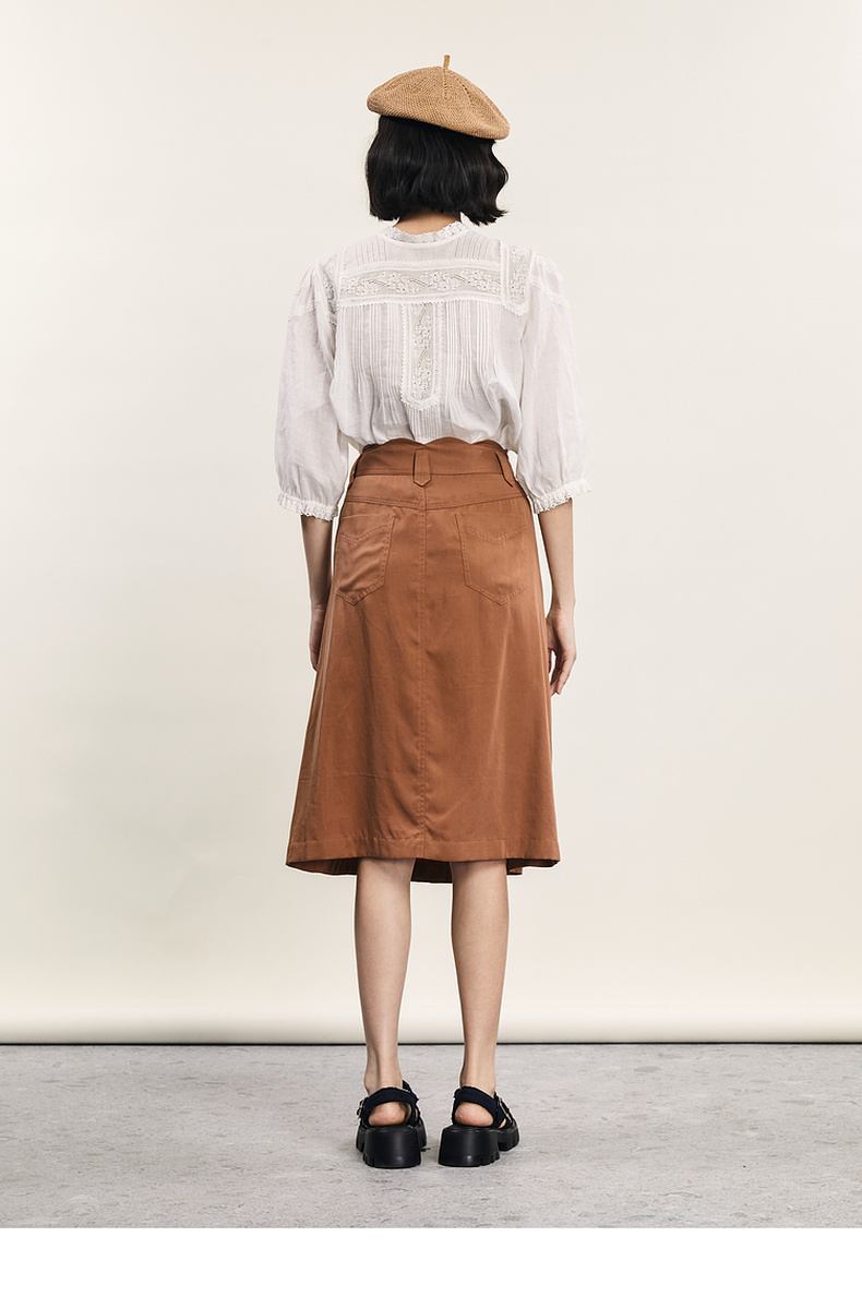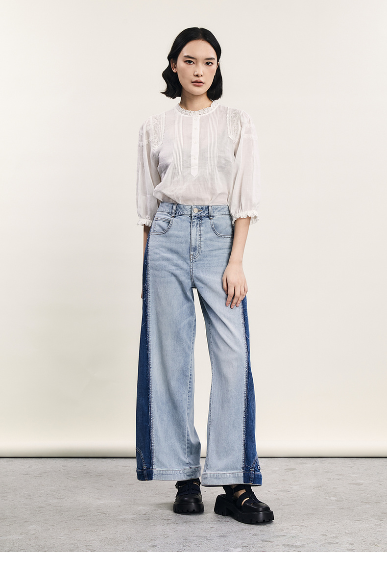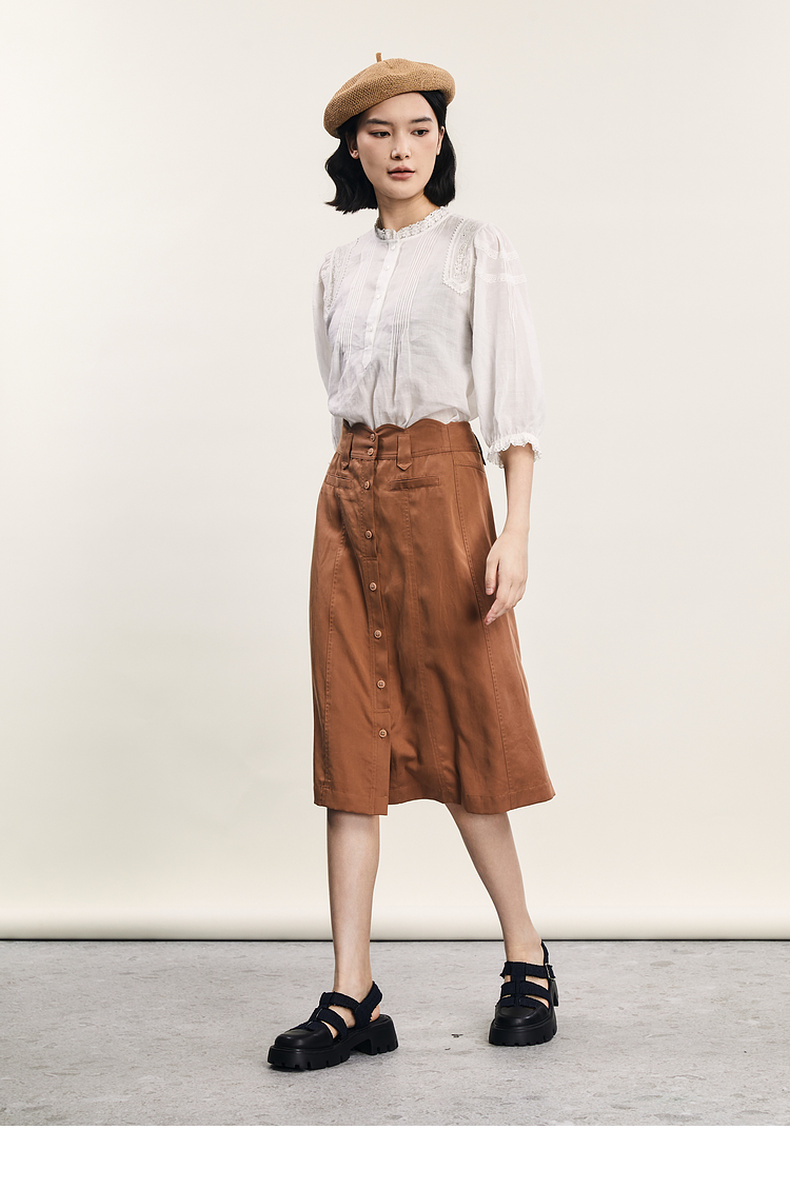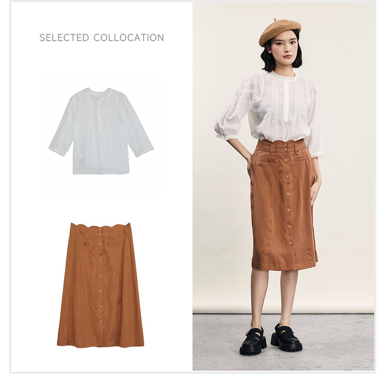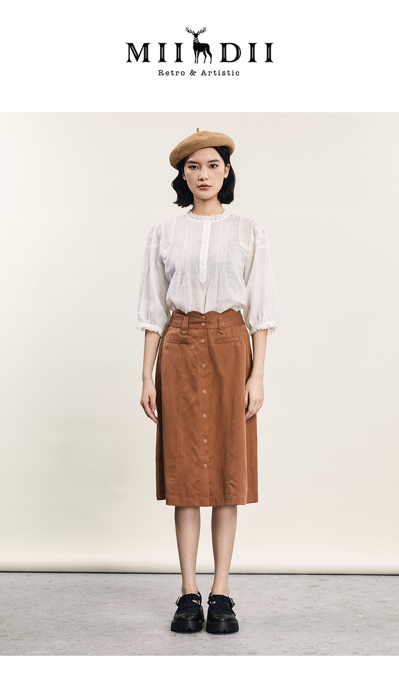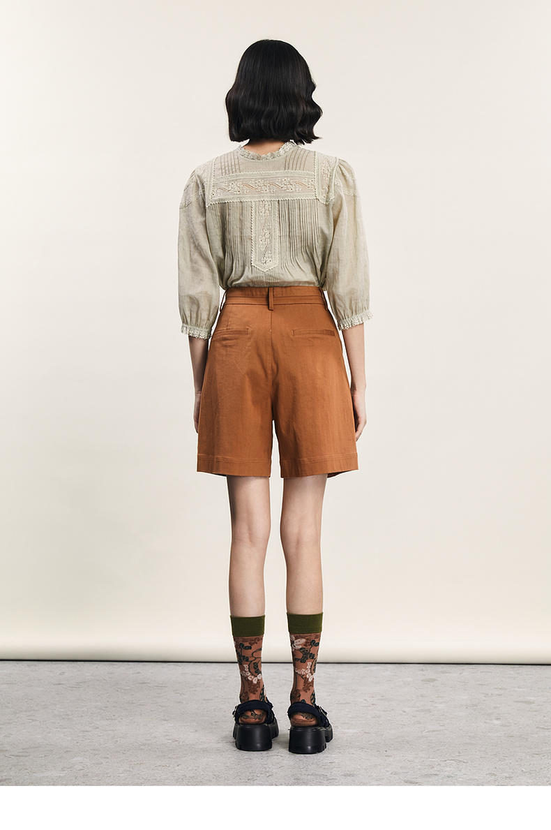 谜底苎麻衬衫七分袖女2024年夏新品复古风绣花透气衬衣242GC0655