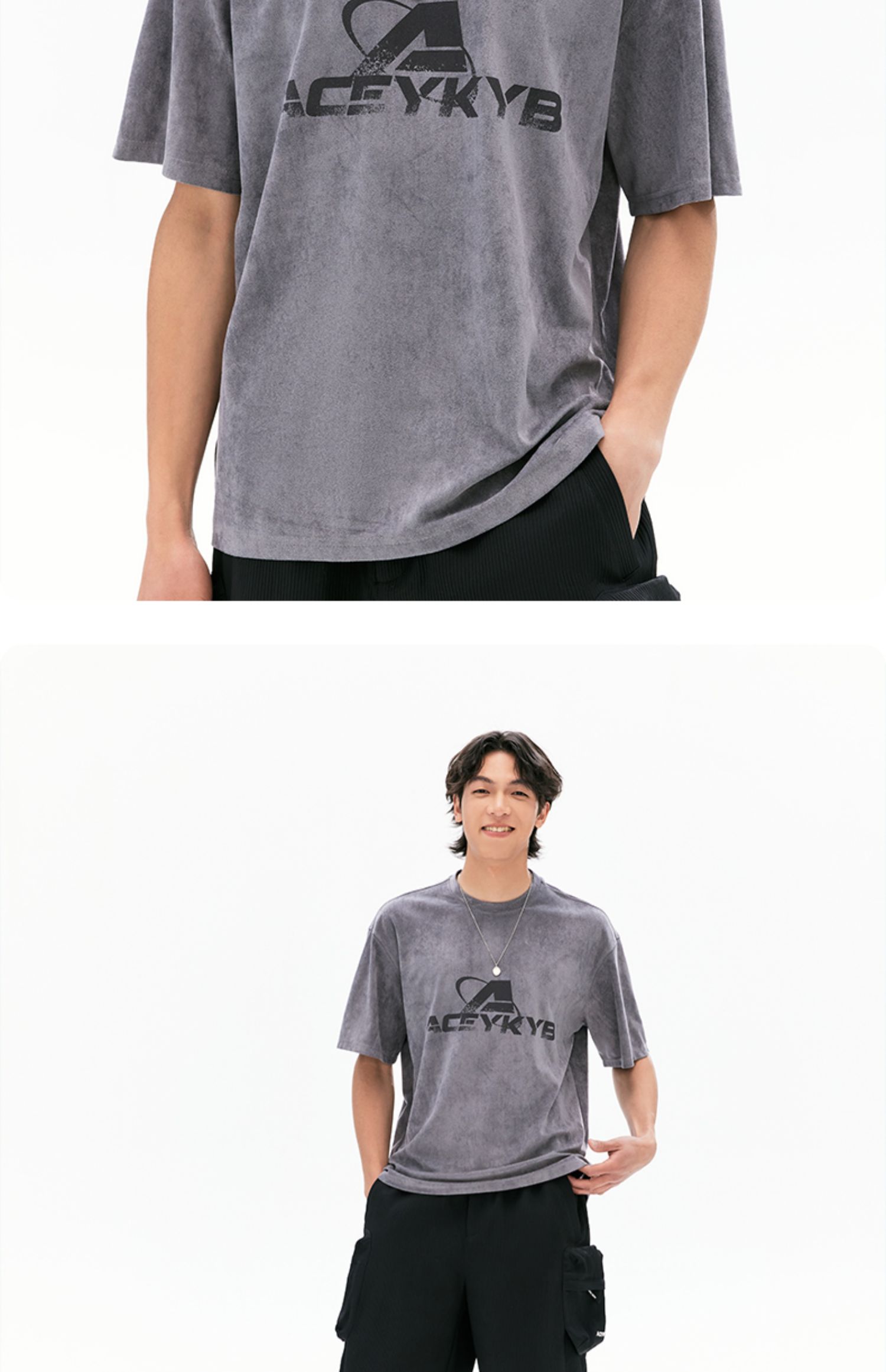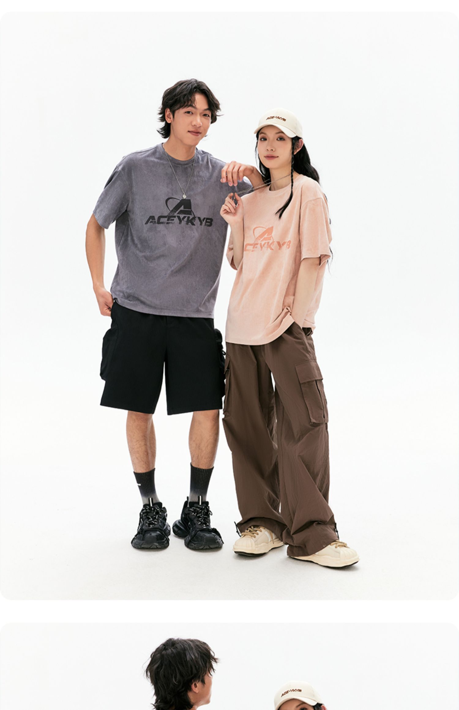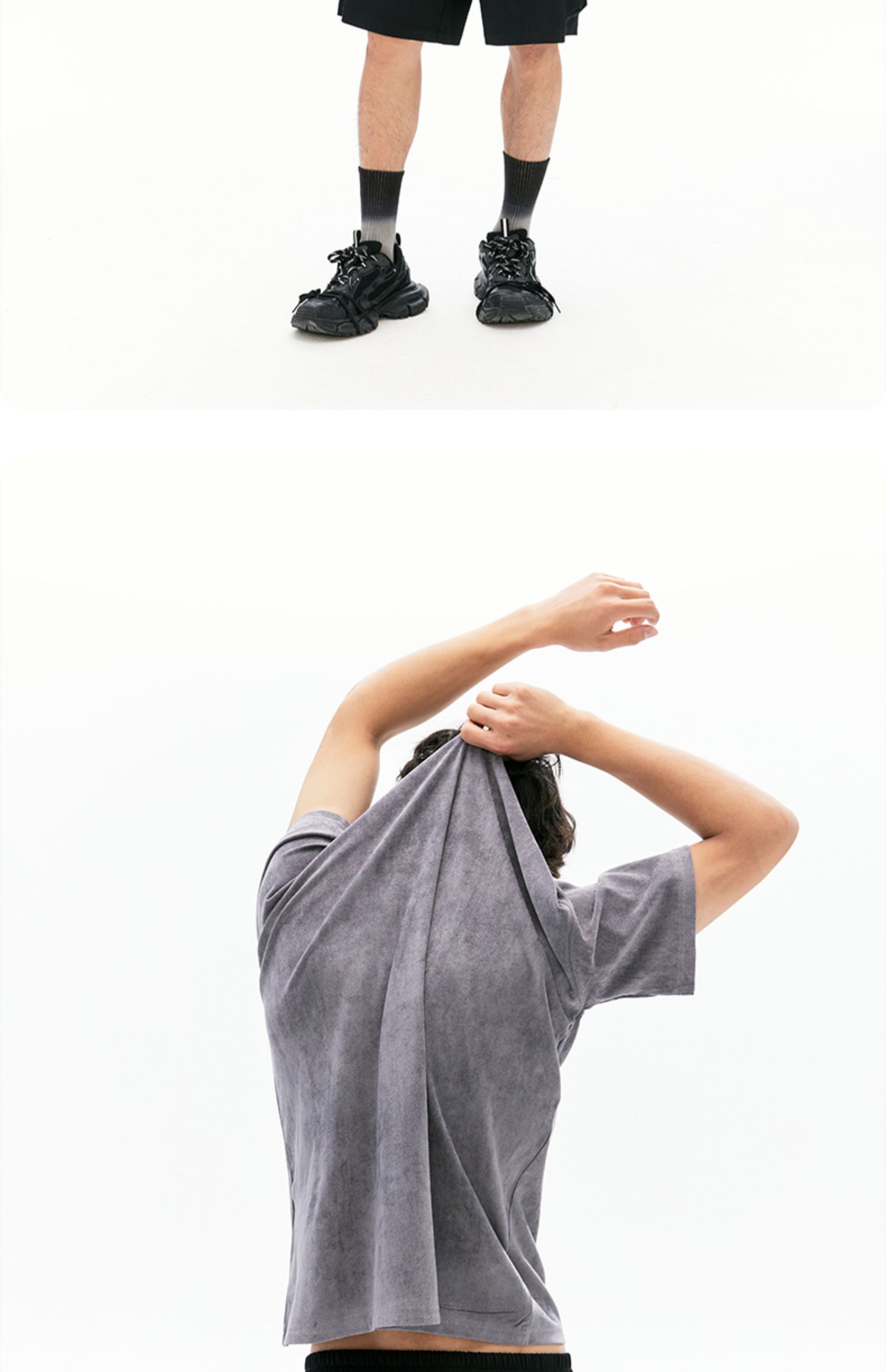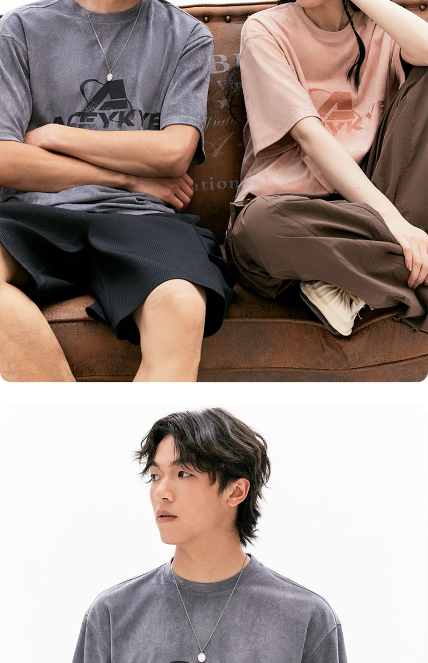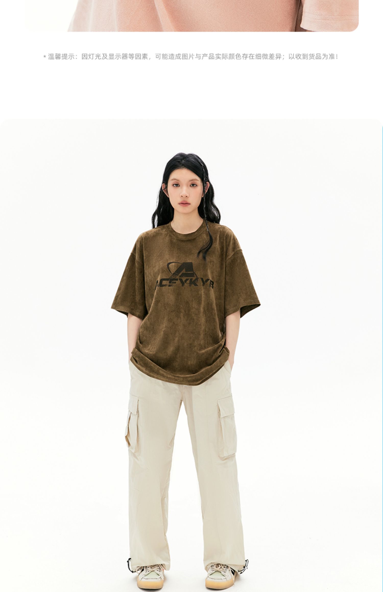YKYB黄子韬轻薄麂皮绒T恤潮牌美式复古2025夏新款高级感宽松短袖