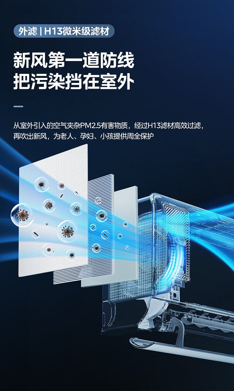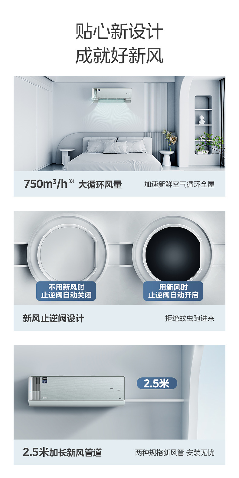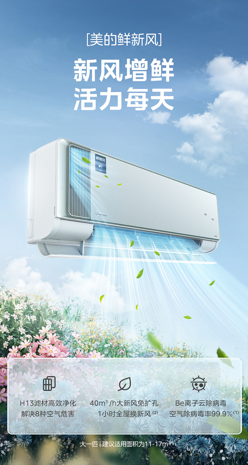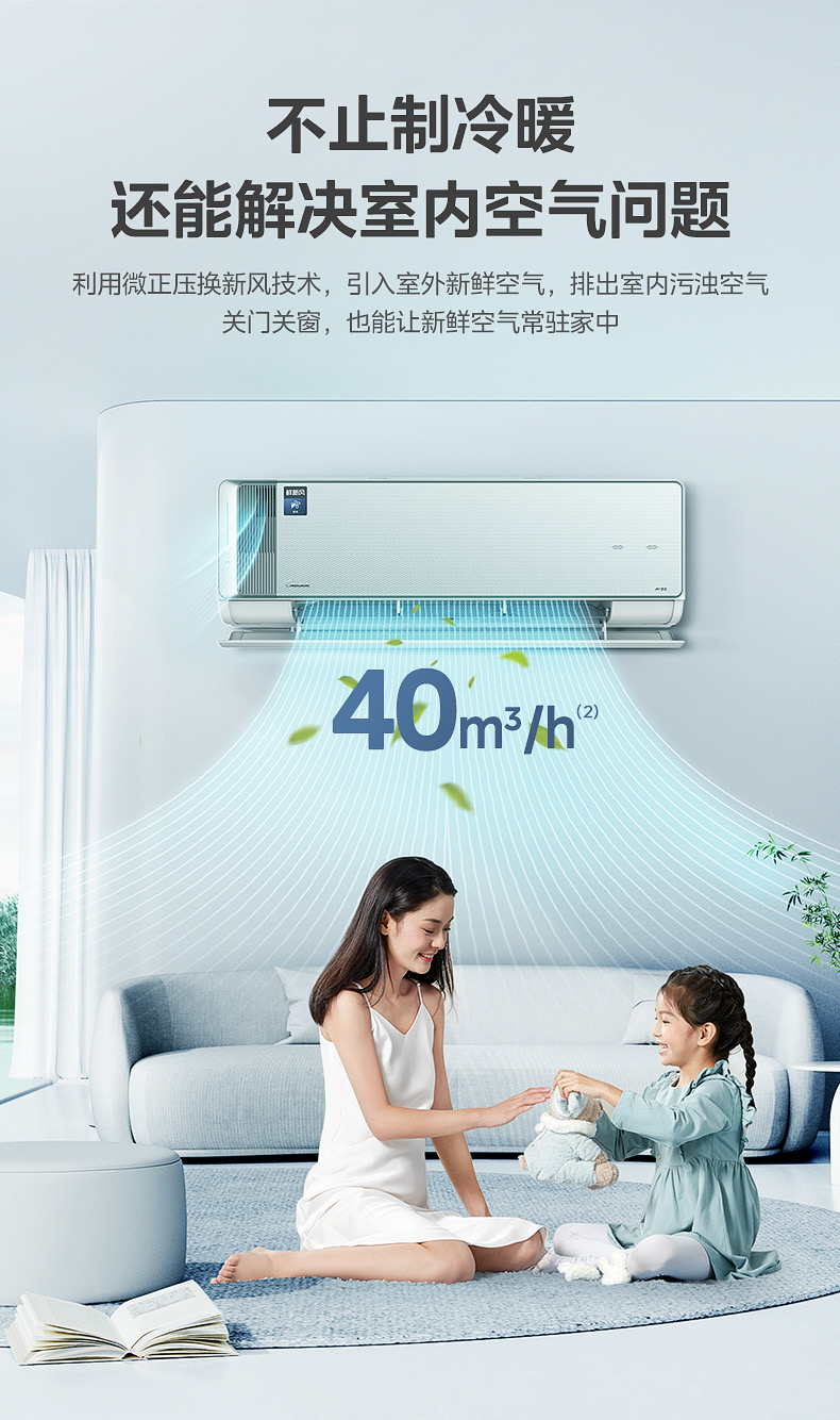 美的鲜新风净化空调一级能效大1匹/1.5匹 K2-1 变频 分体套机 青山雾 美的