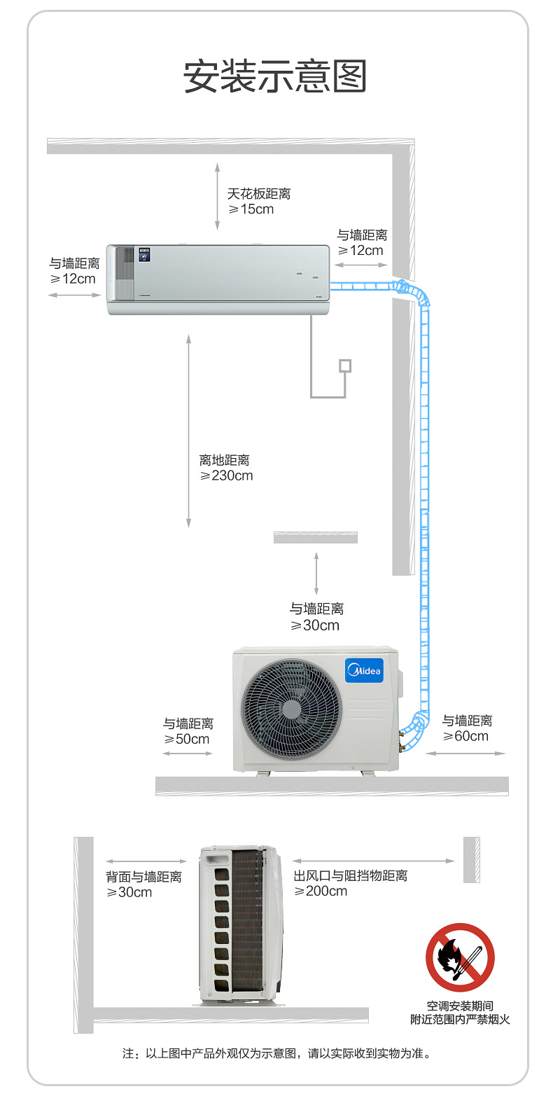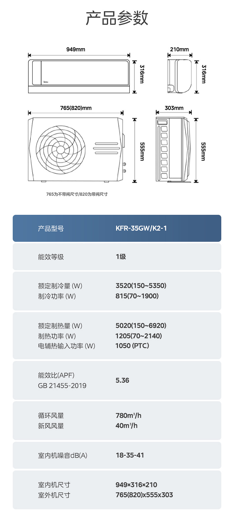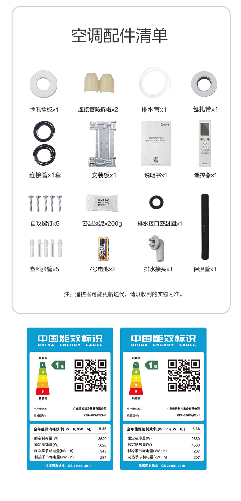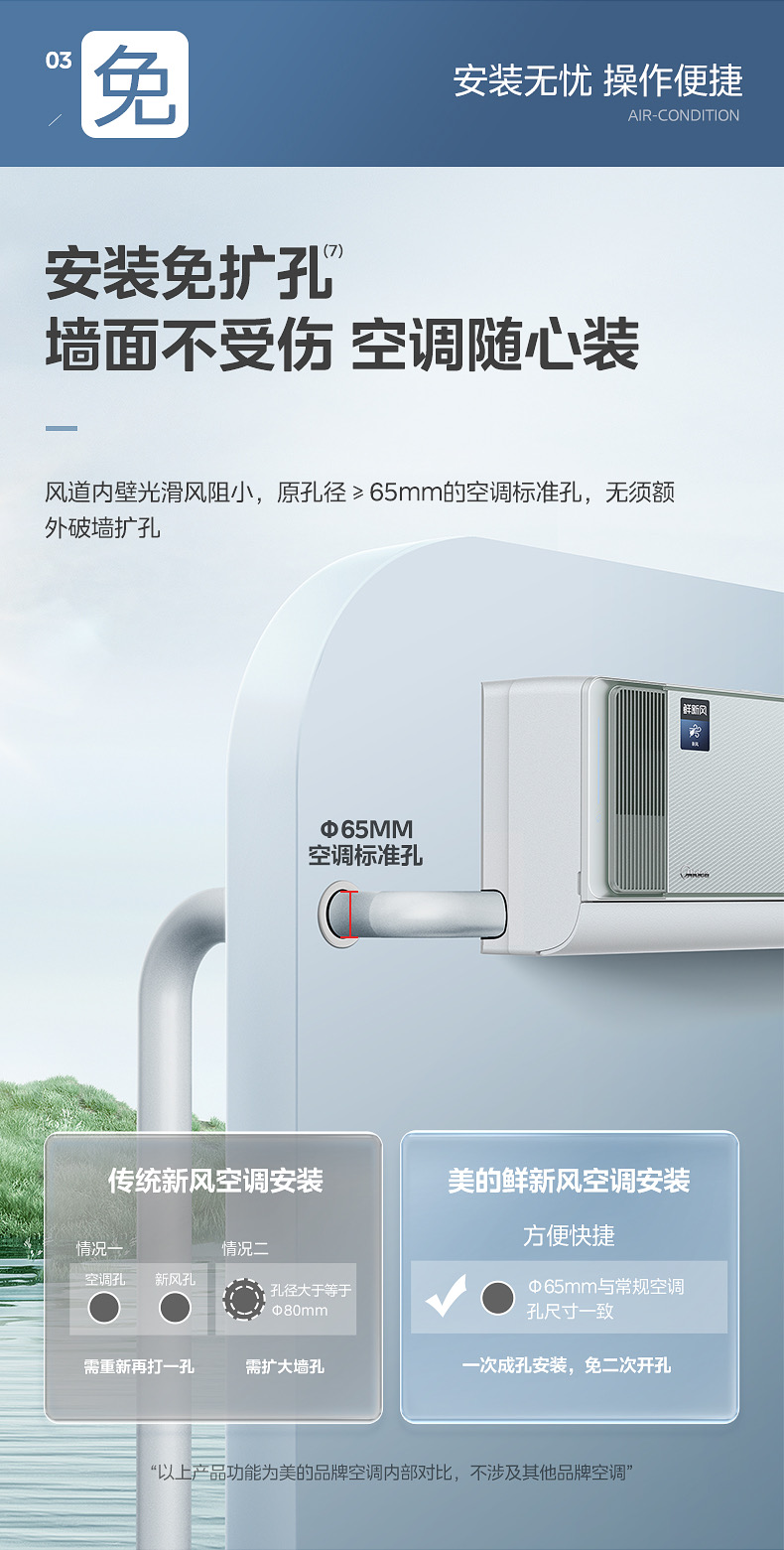 美的鲜新风净化空调一级能效大1匹/1.5匹 K2-1 变频 分体套机 青山雾 美的