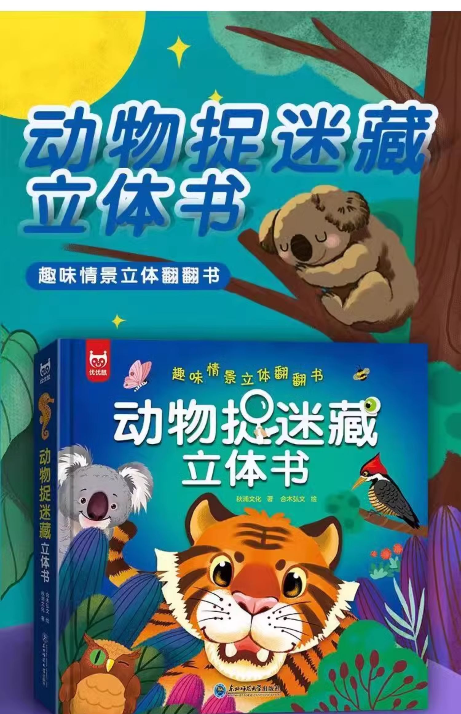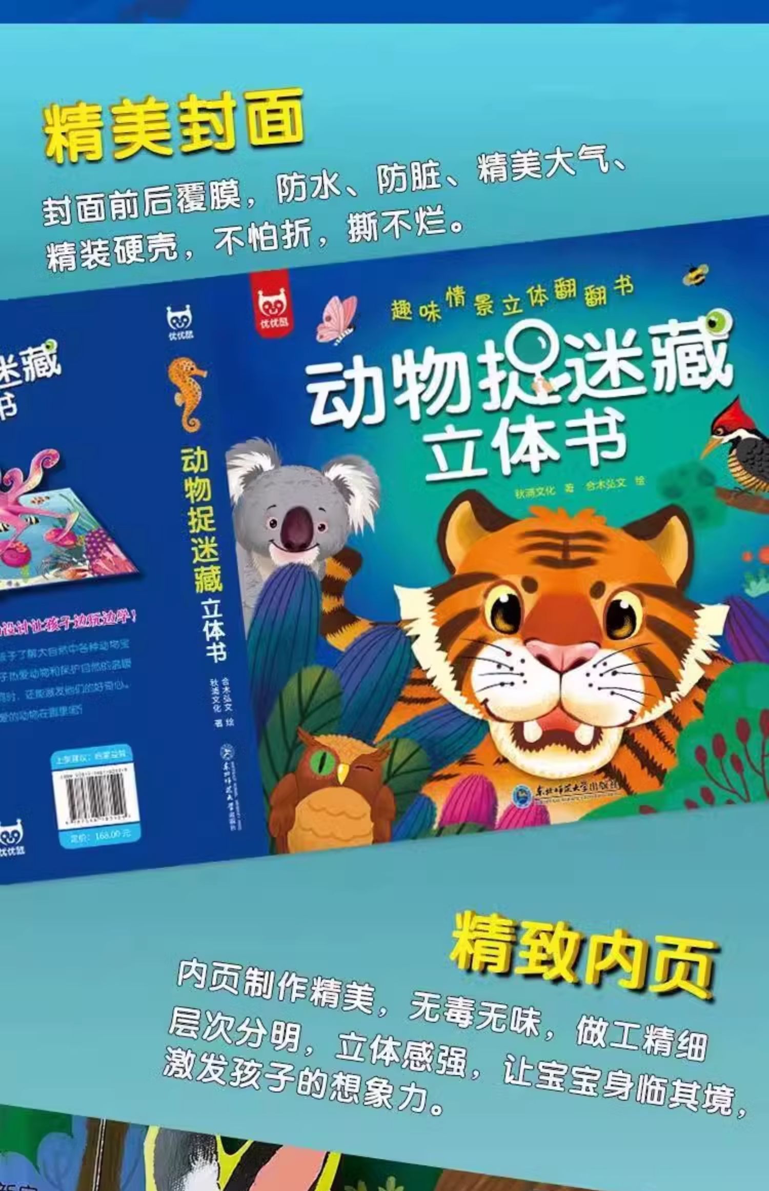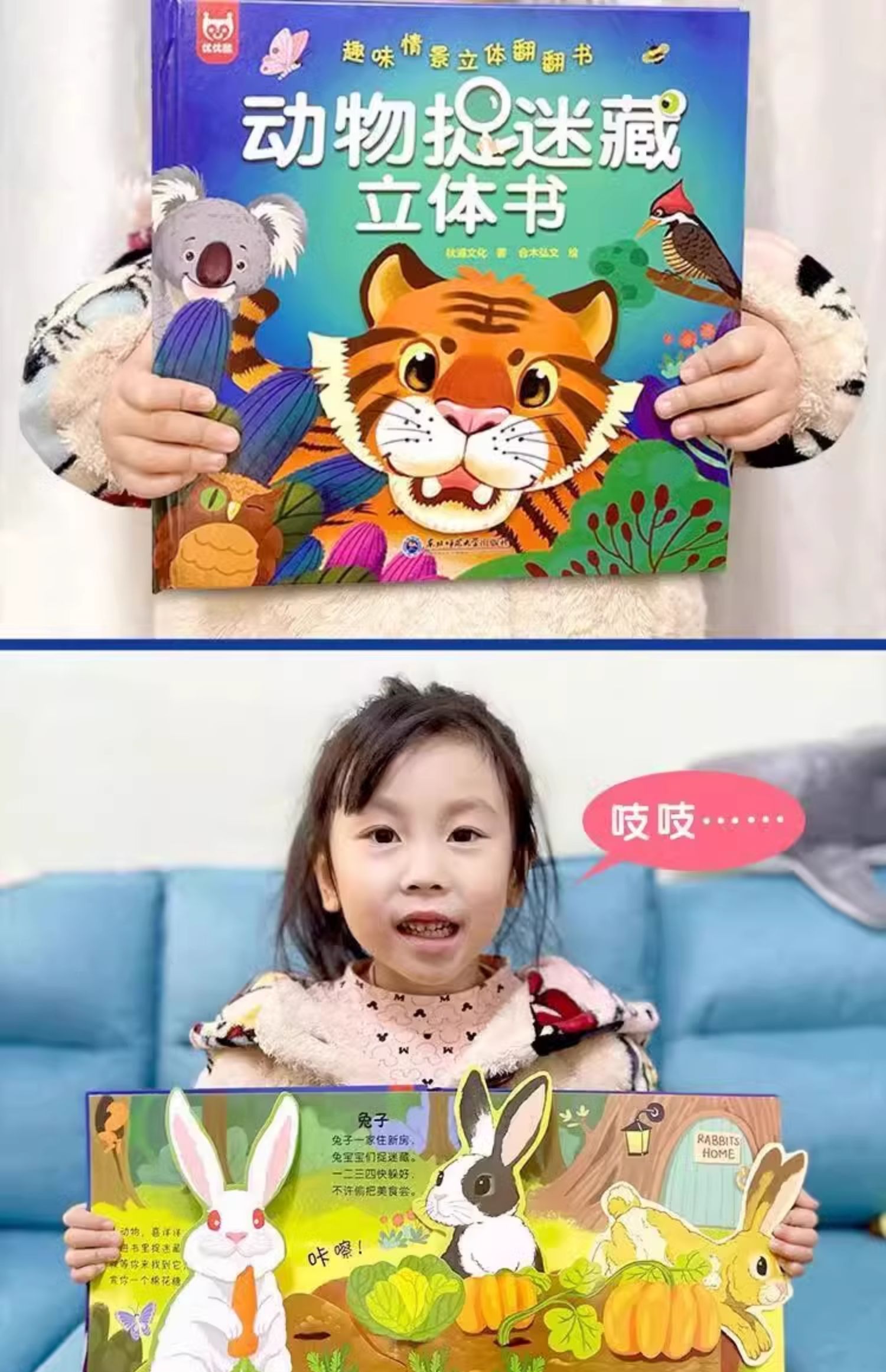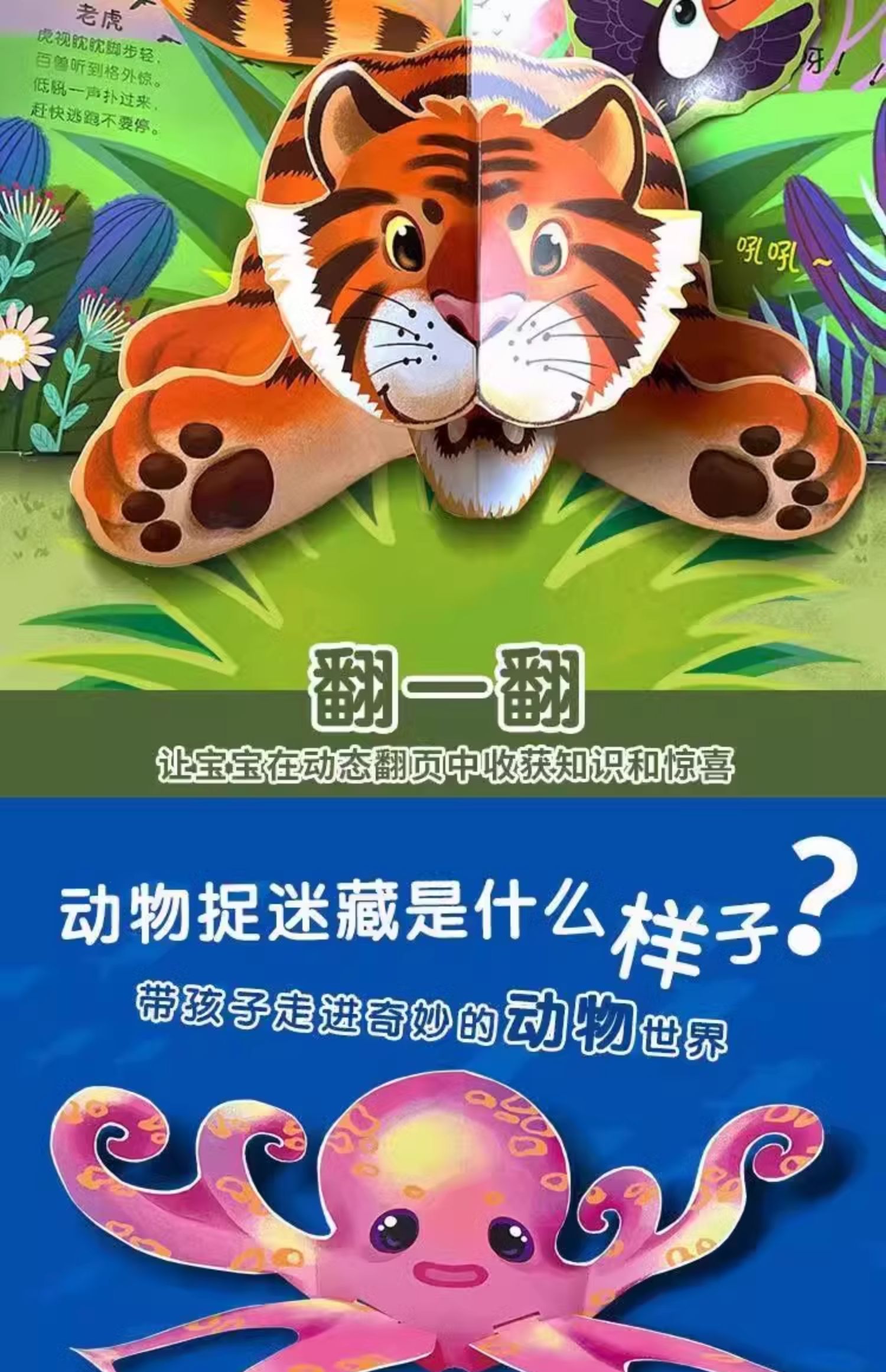 动物捉迷藏立体书 趣味情景立体翻翻书儿童益智早教游戏书幼儿园图画书3d立体书科普3-6-8-12岁绘本2岁宝宝小中大班机关课外故事书