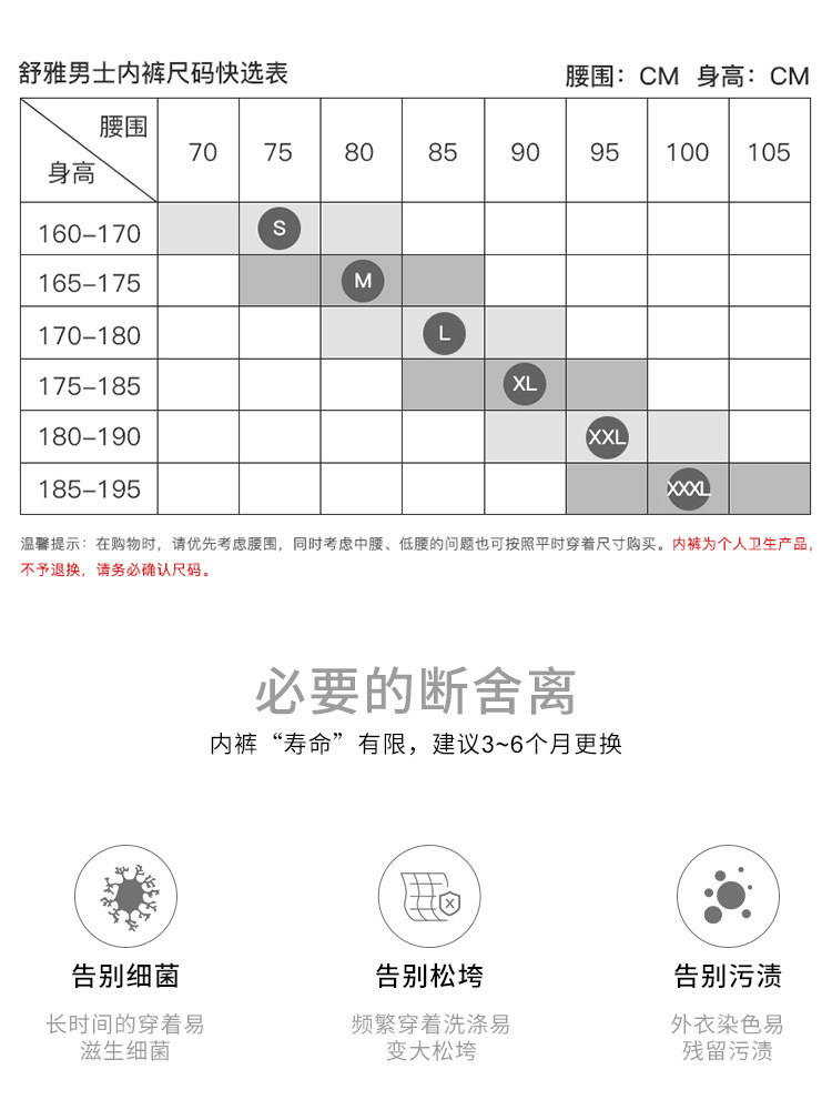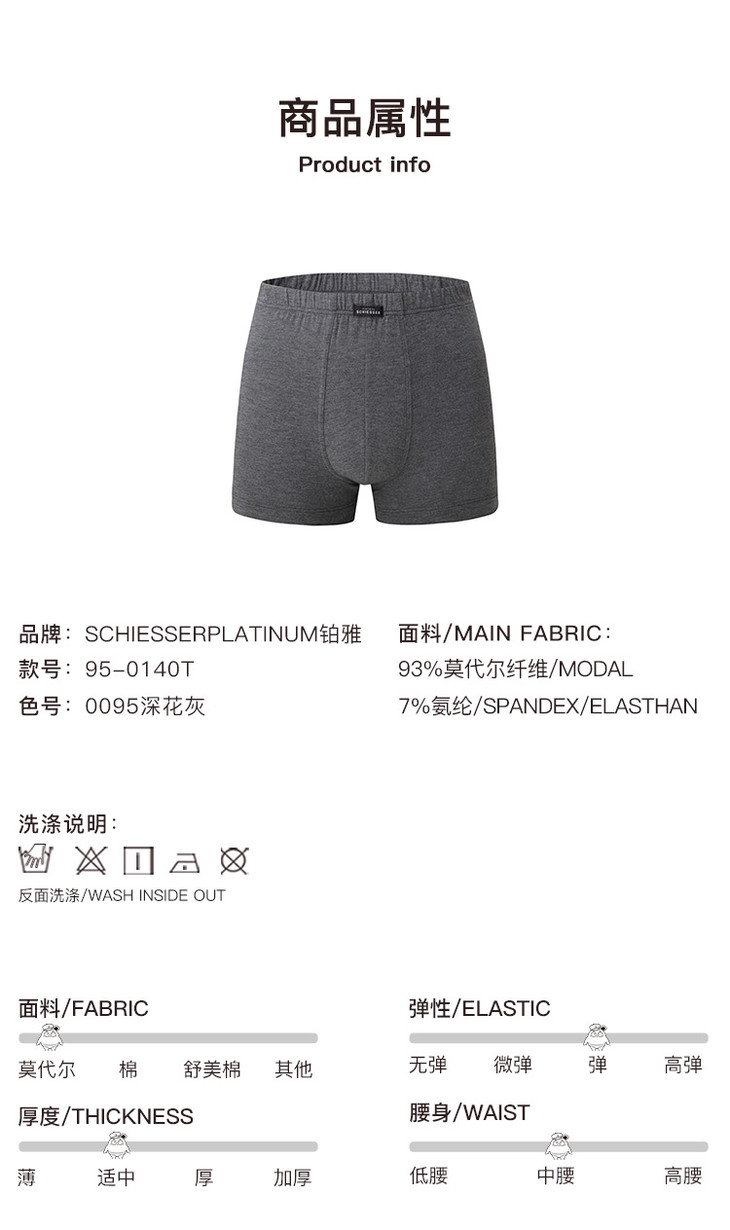舒雅铂雅男士莫代尔透气中腰平角内裤四角裤95/0140T