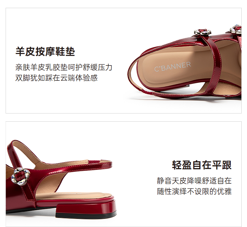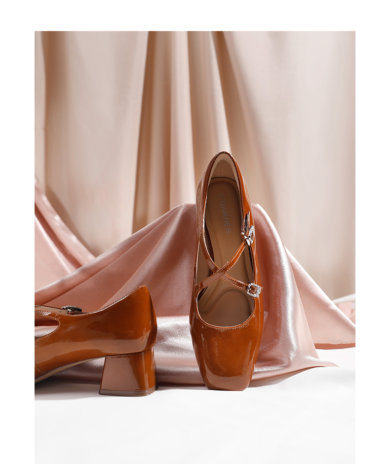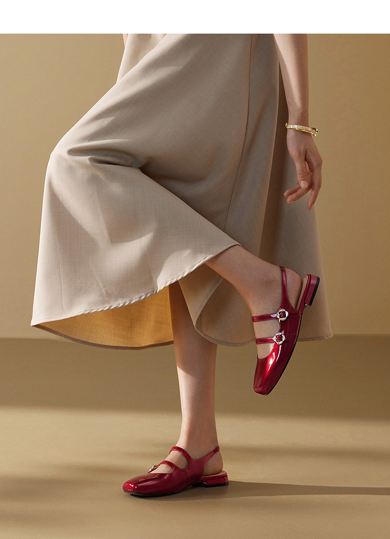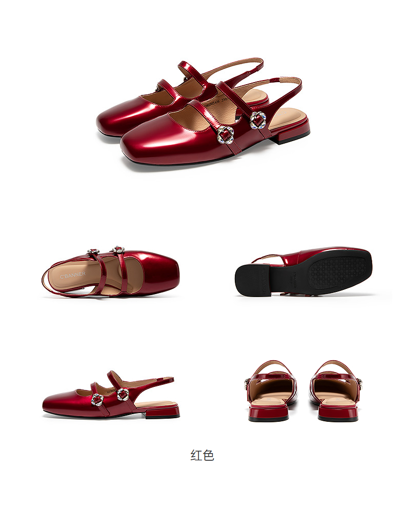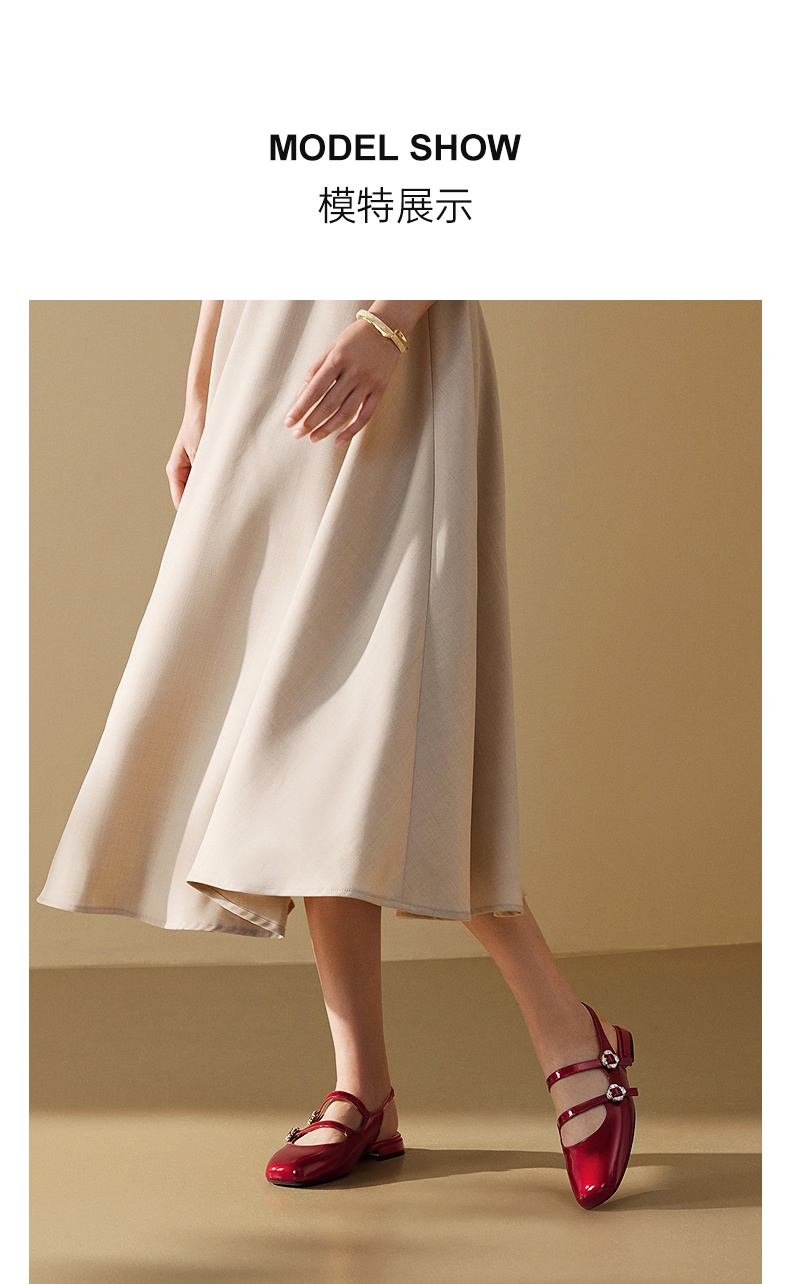 【静音系列】千百度牛漆皮扣式时装凉鞋女玛丽珍凉鞋A25282302