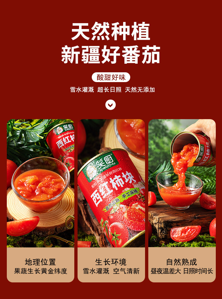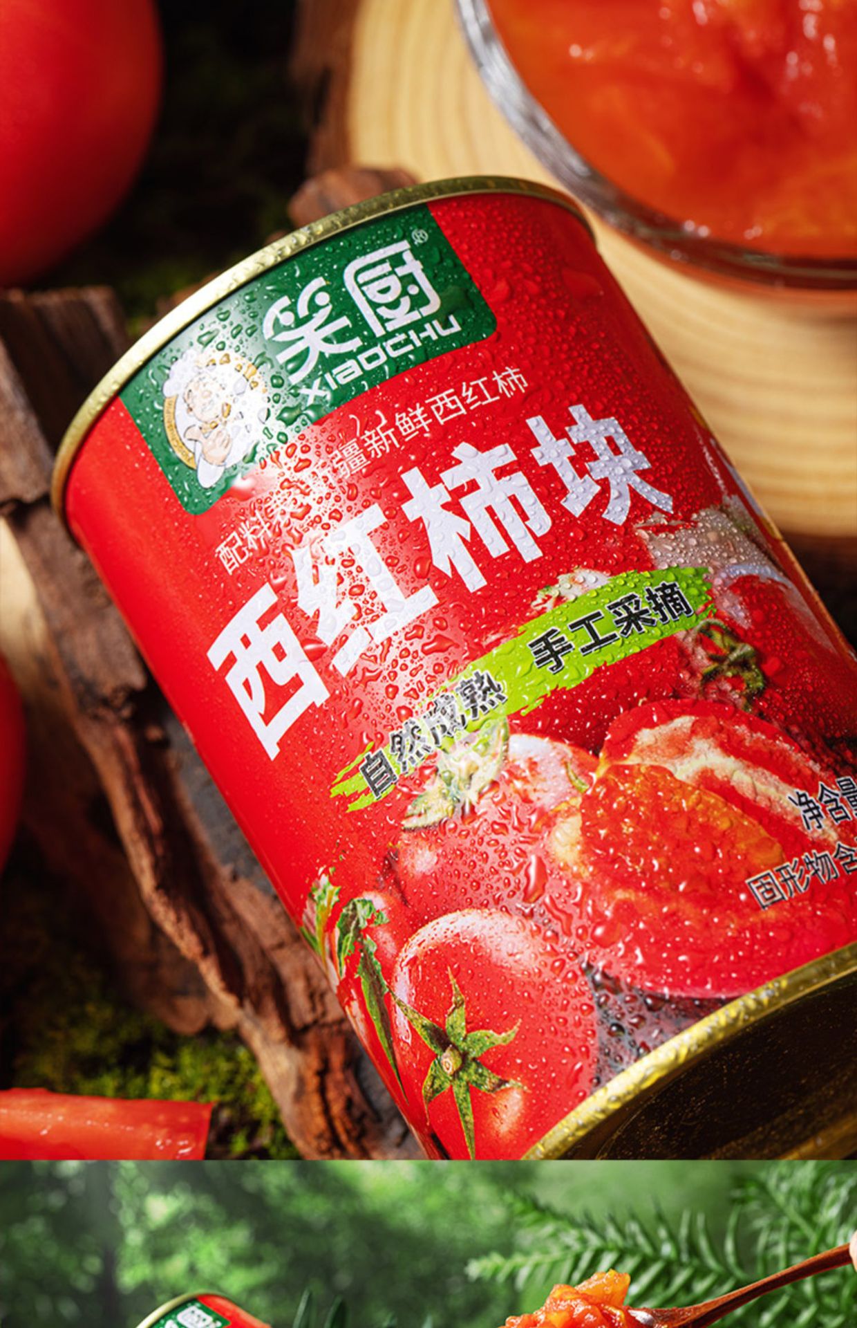 新疆特产笑厨西红柿酱西红柿块丁400g罐装番茄红素罐头去皮红柿子