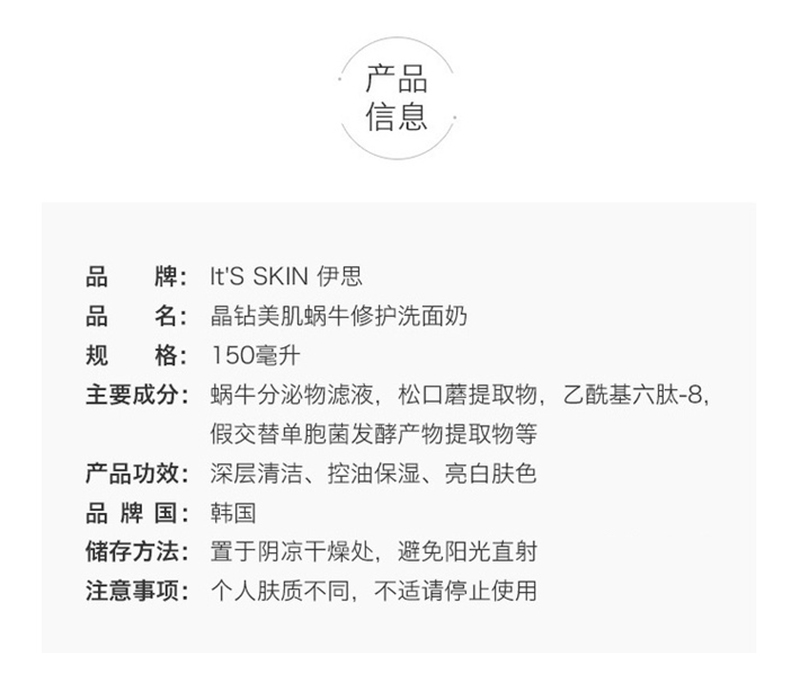 伊思 晶钻美肌蜗牛洗面奶150ml