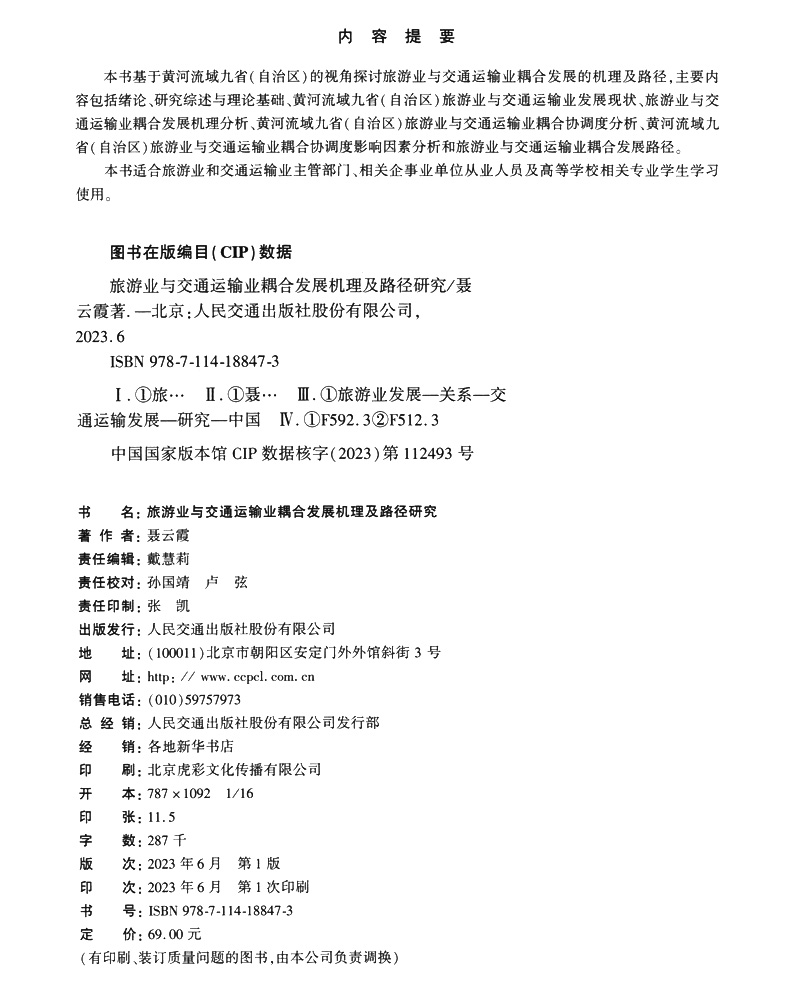 书名:旅游业与交通运输业耦合发展机理及路径研究