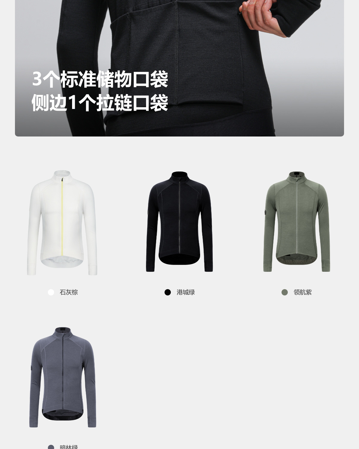 GRC桀骜无尽全天候美利奴羊毛长袖上衣保暖公路自行车骑行服男士