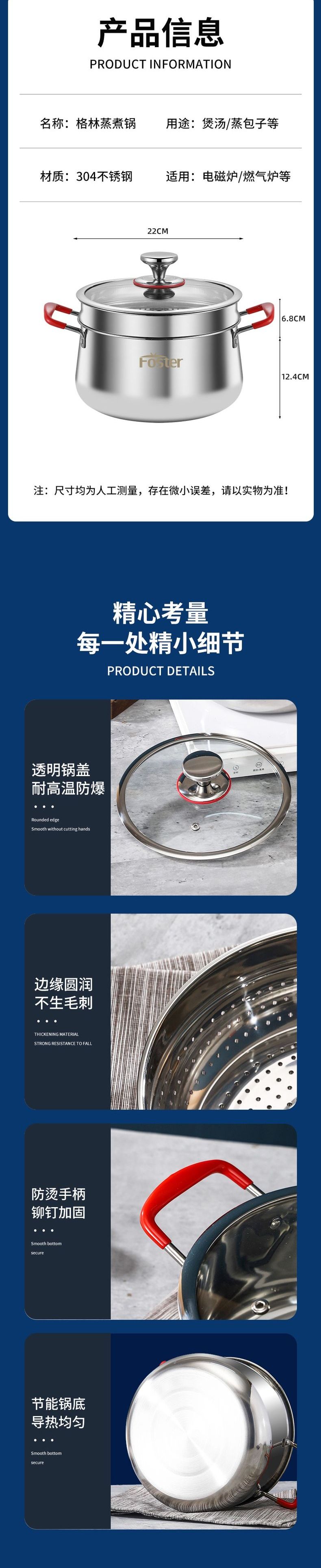 浮士德 格林蒸煮锅 FZ-Z1 不锈钢蒸煮锅燃气电磁炉通用