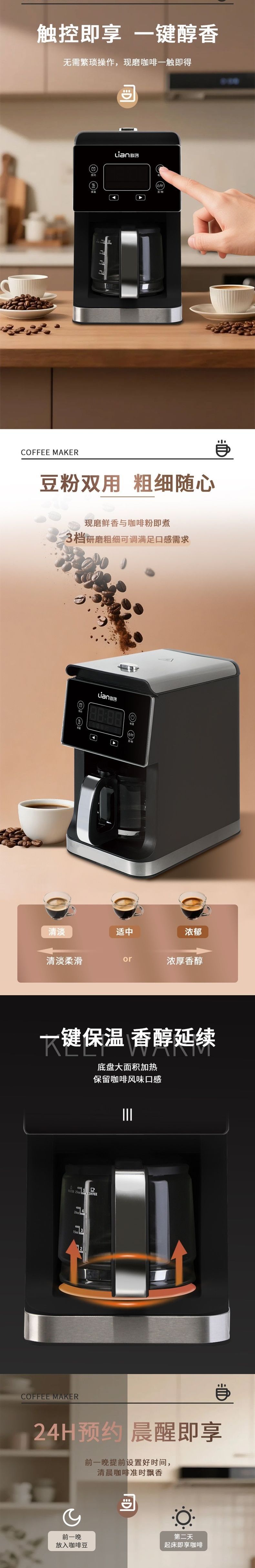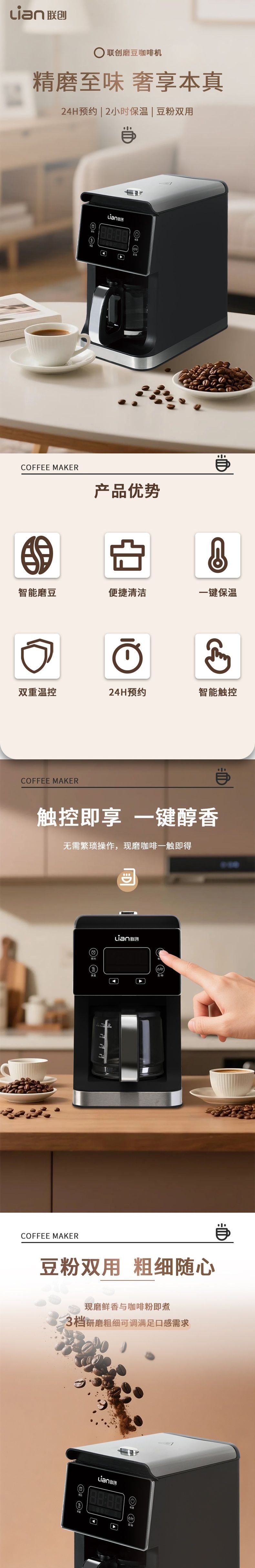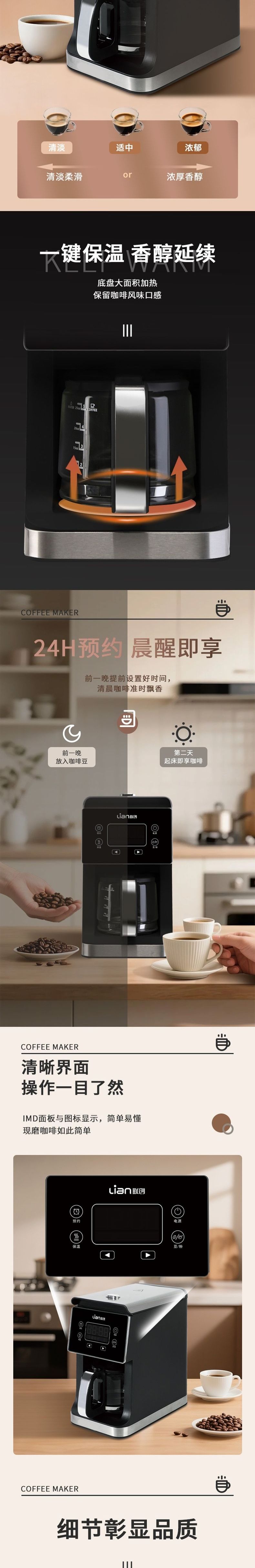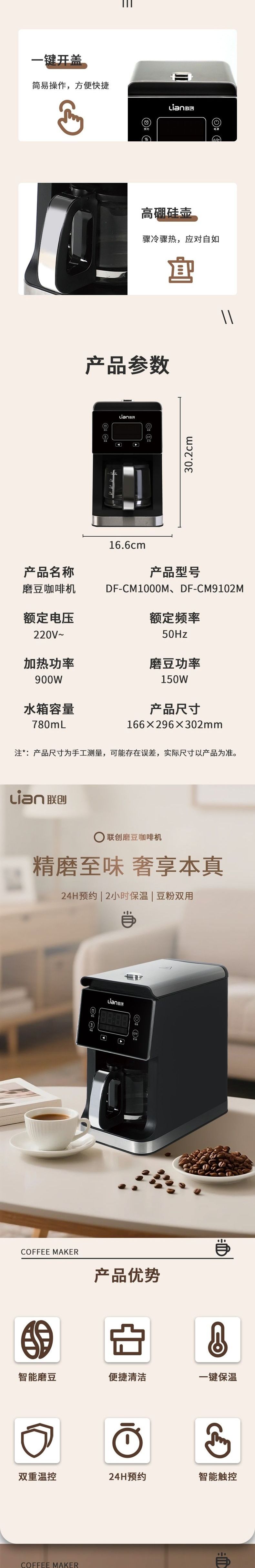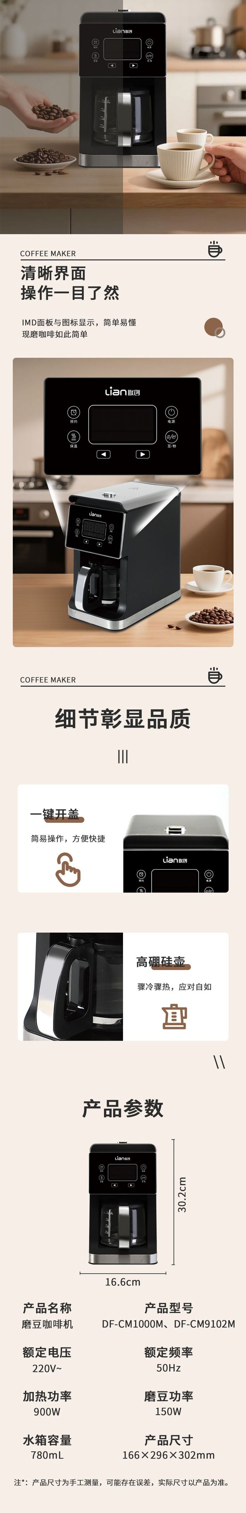 联创 磨豆咖啡机 DF-CM1000M 全自动研磨一体美式滴漏咖啡机