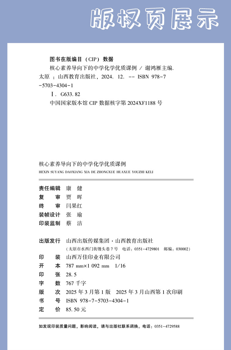 正版 核心素养导向下的中学化学优质课例 谢鸿雁主编