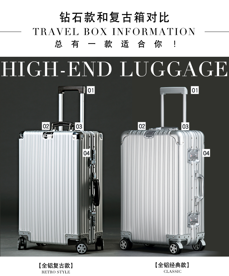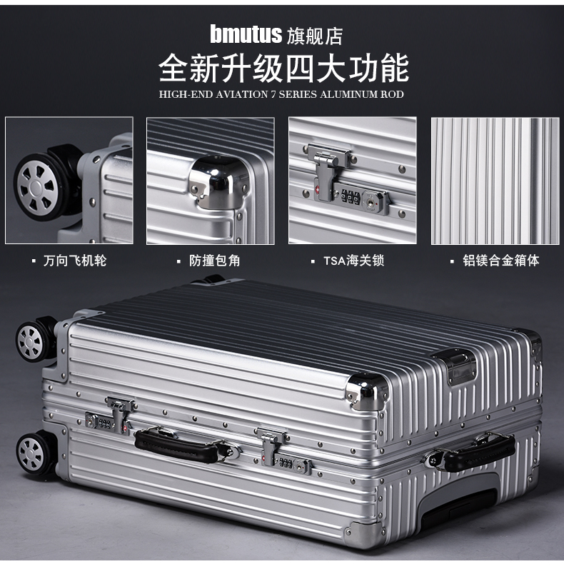 自然醒全铝镁合金拉杆箱万向轮行李箱男女24密码20寸商务旅行箱子ZT