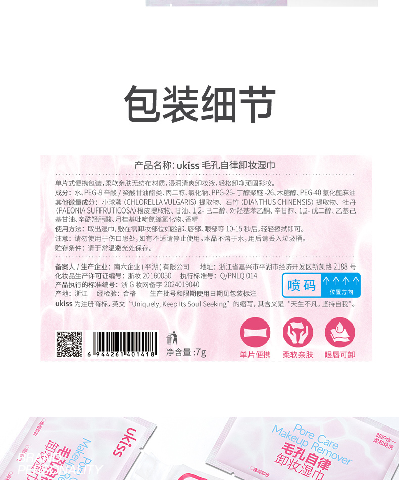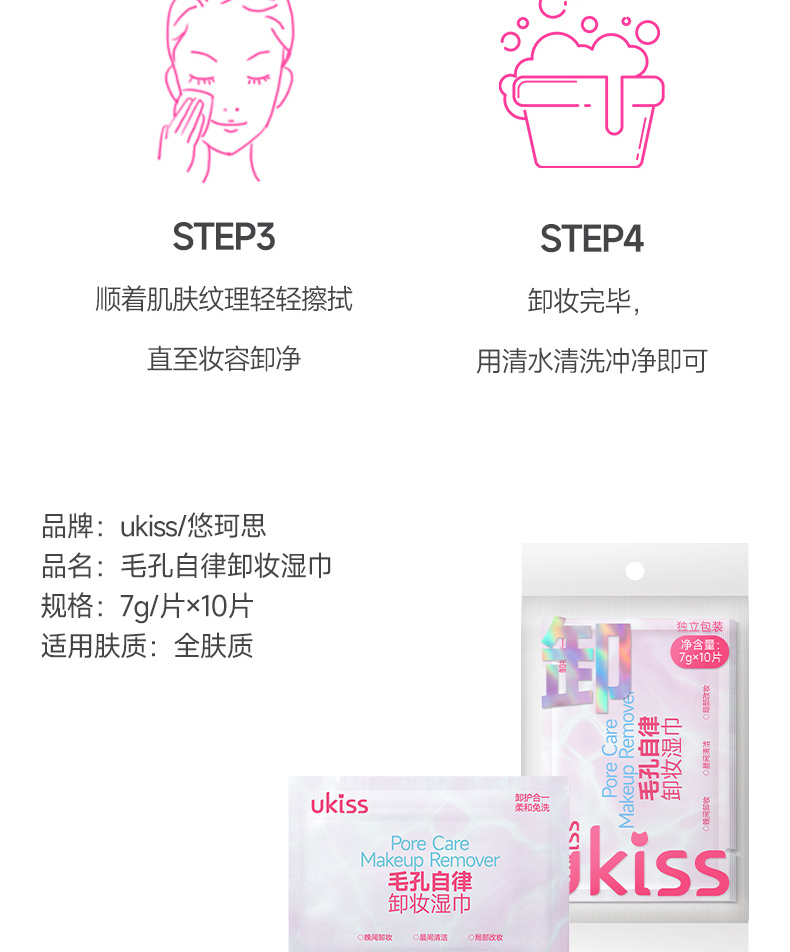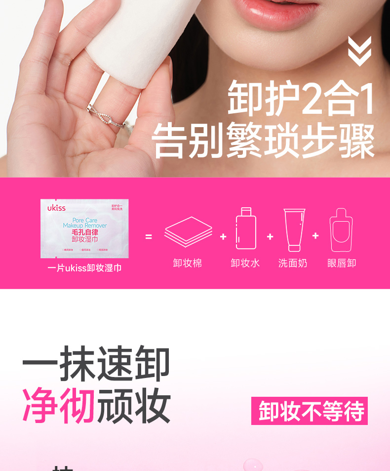 【浓颜专研款 一张卸全脸】ukiss悠珂思毛孔自律卸妆湿巾30片/盒