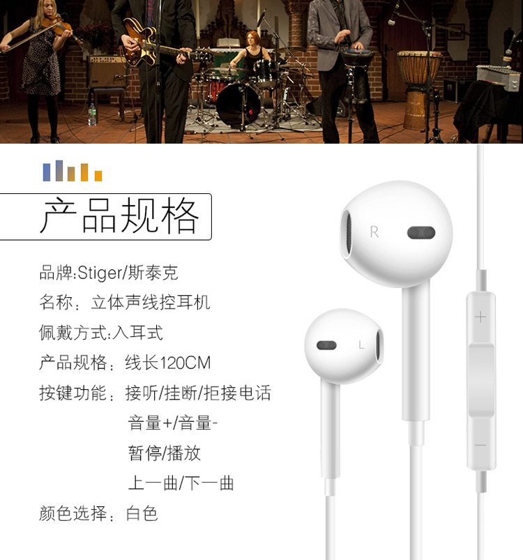 斯泰克耳机入耳式有线 3.5mm线控带麦克运动耳麦BCP-37