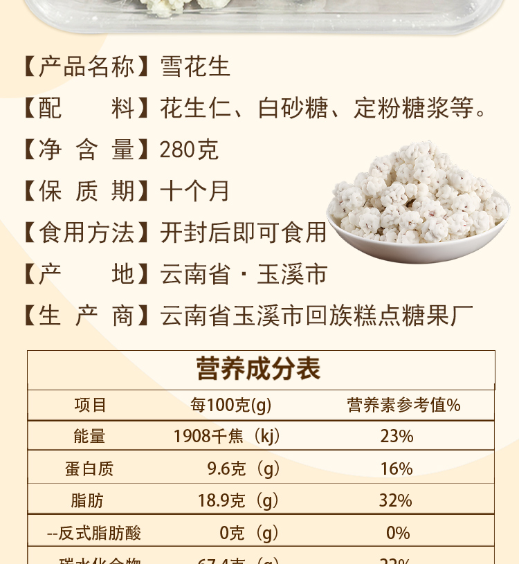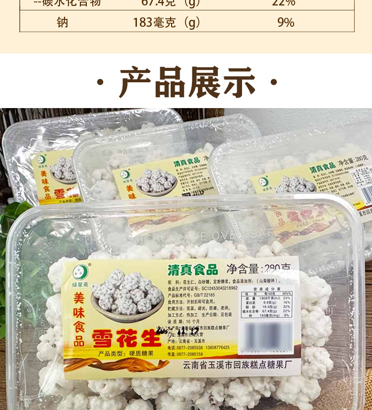 绿星斋清真雪花生280g云南老式糖衣花生裹白糖甜花生
