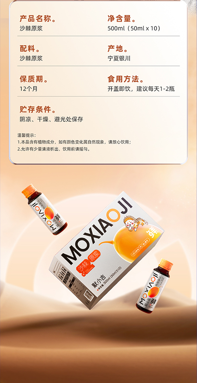 默小吉500ml盒装沙棘原浆甘肃沙棘果汁vc