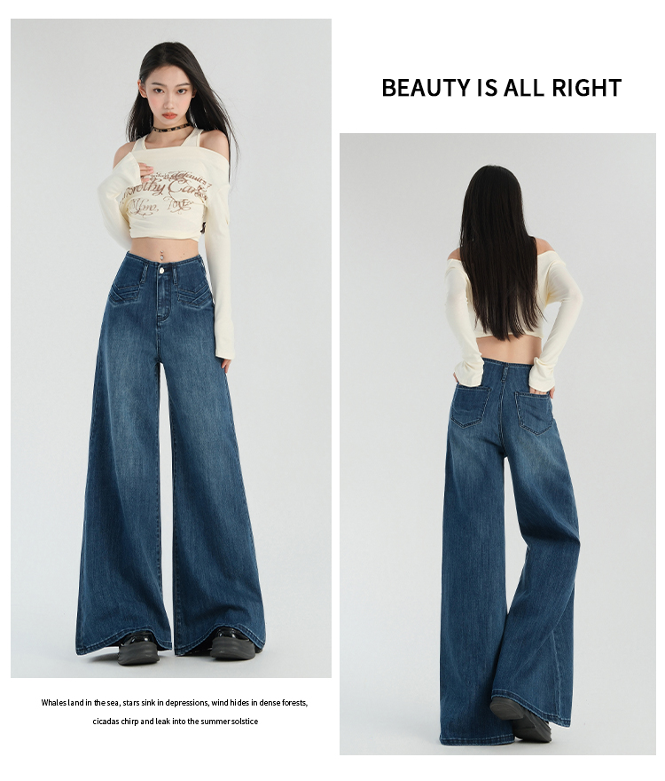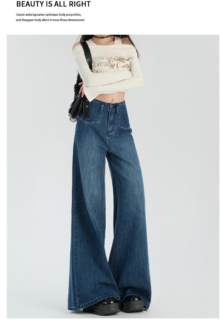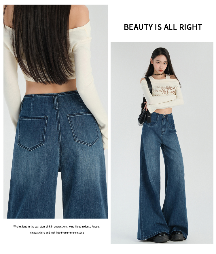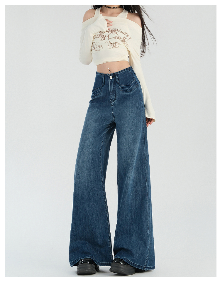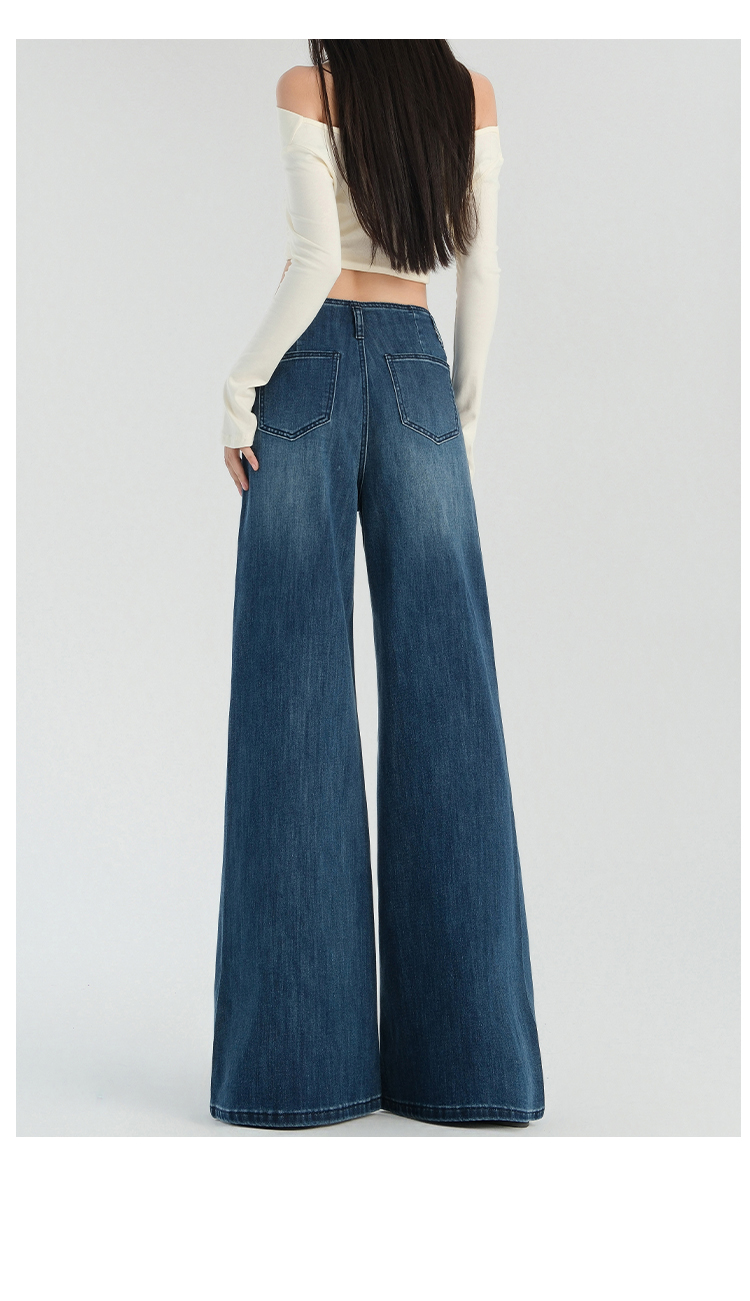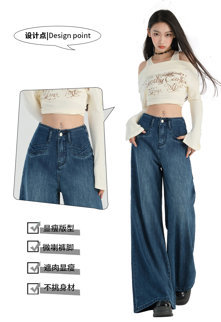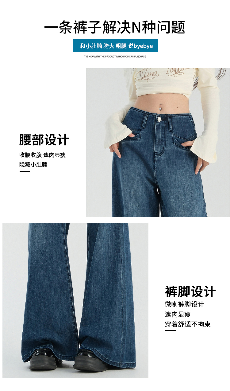 罗蒙春夏女式牛仔裤宽松显瘦休闲百搭阔腿裤棉质水洗女长裤喇叭裤女