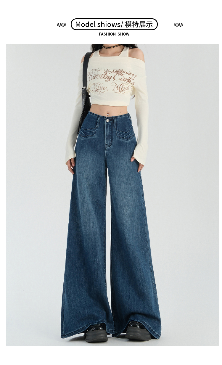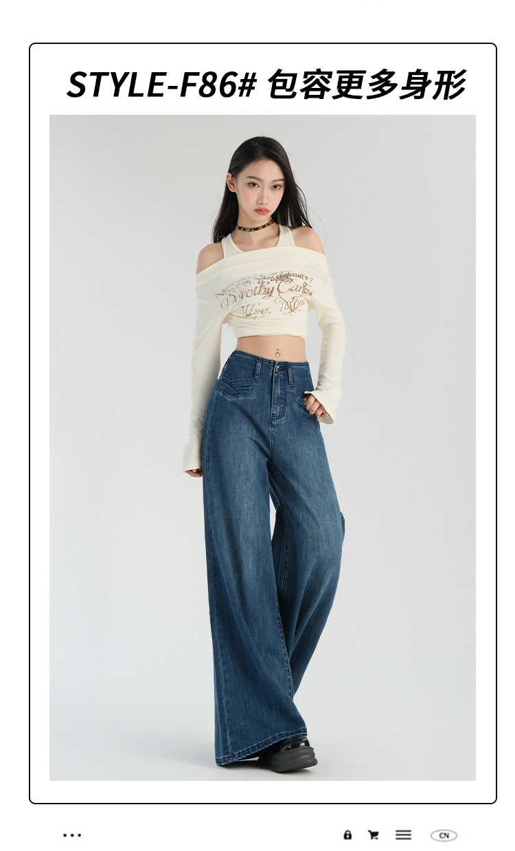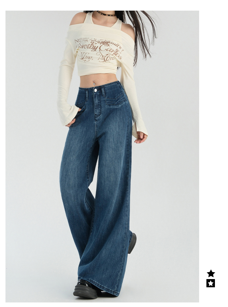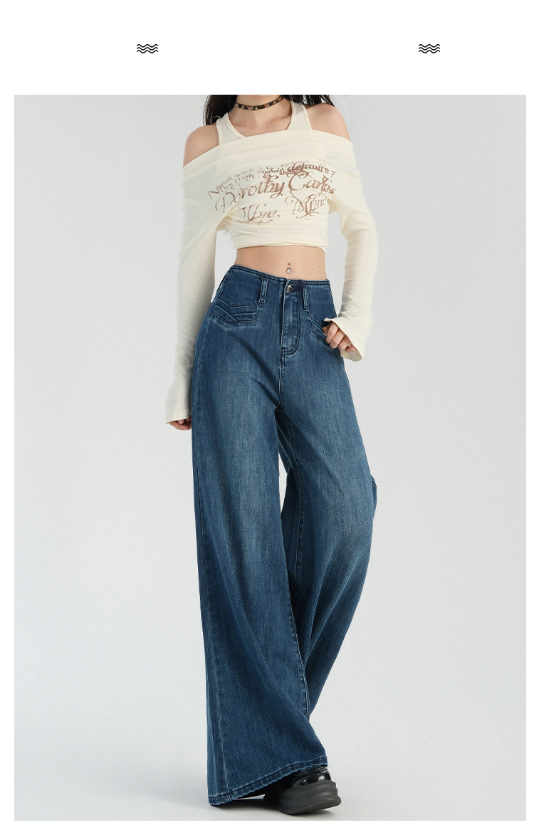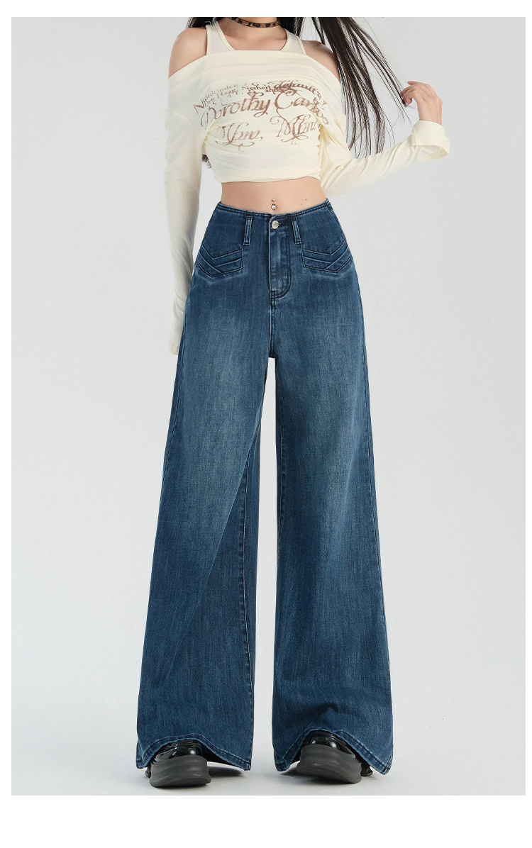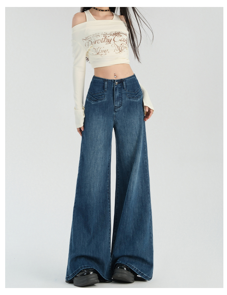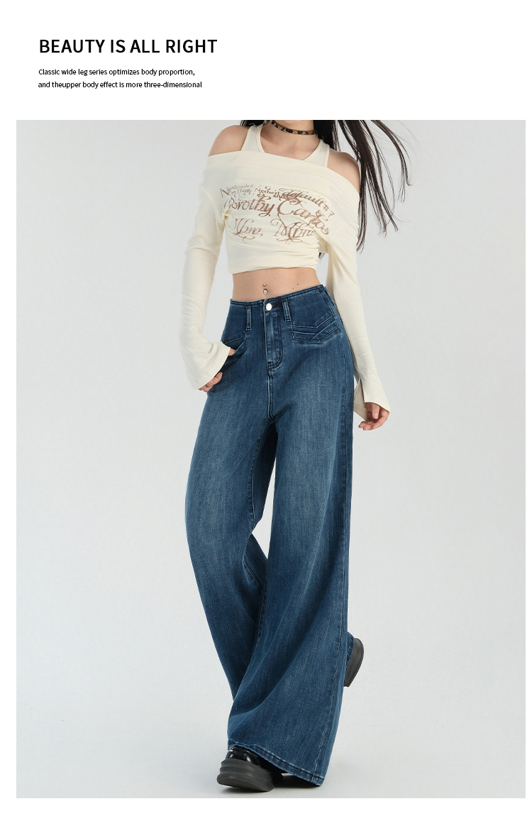罗蒙春夏女式牛仔裤宽松显瘦休闲百搭阔腿裤棉质水洗女长裤喇叭裤女