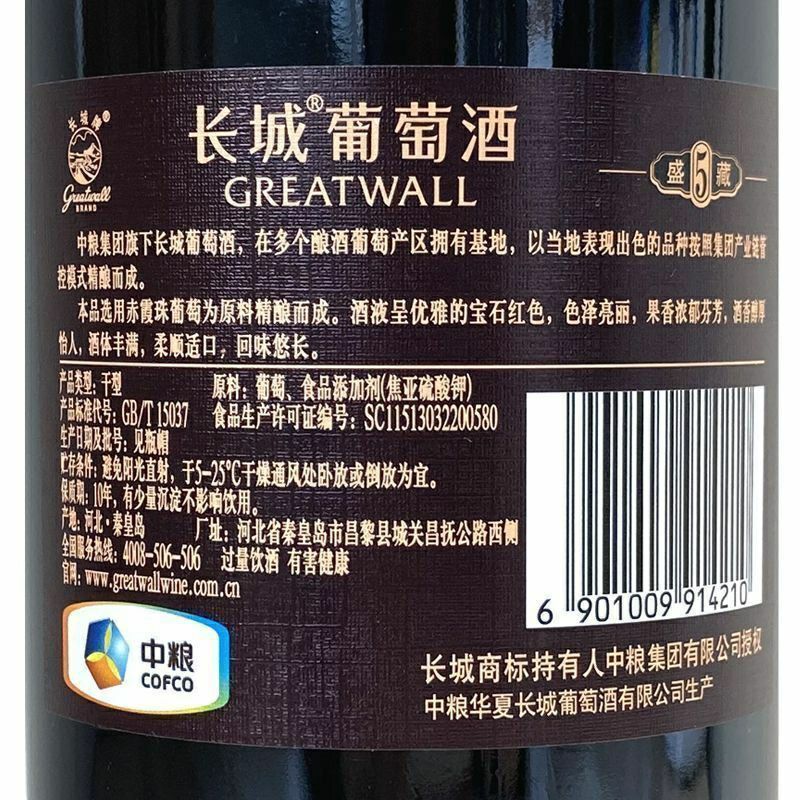 中粮长城出品长城盛藏5赤霞珠干红葡萄酒 酒精度13度 整箱750ml*6瓶包邮