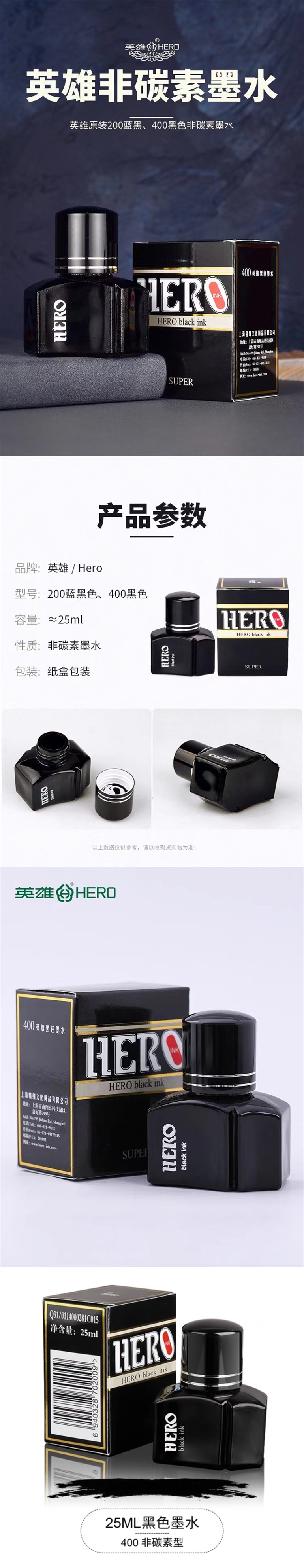 英雄钢笔墨水400黑色 25ml 1瓶 钢笔水不堵塞速干颜料型非碳素墨水