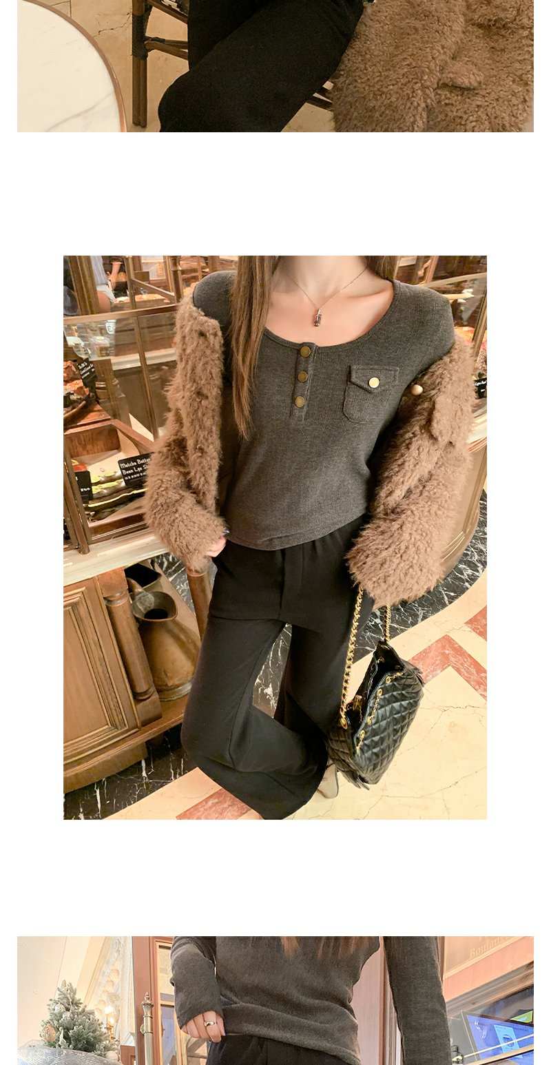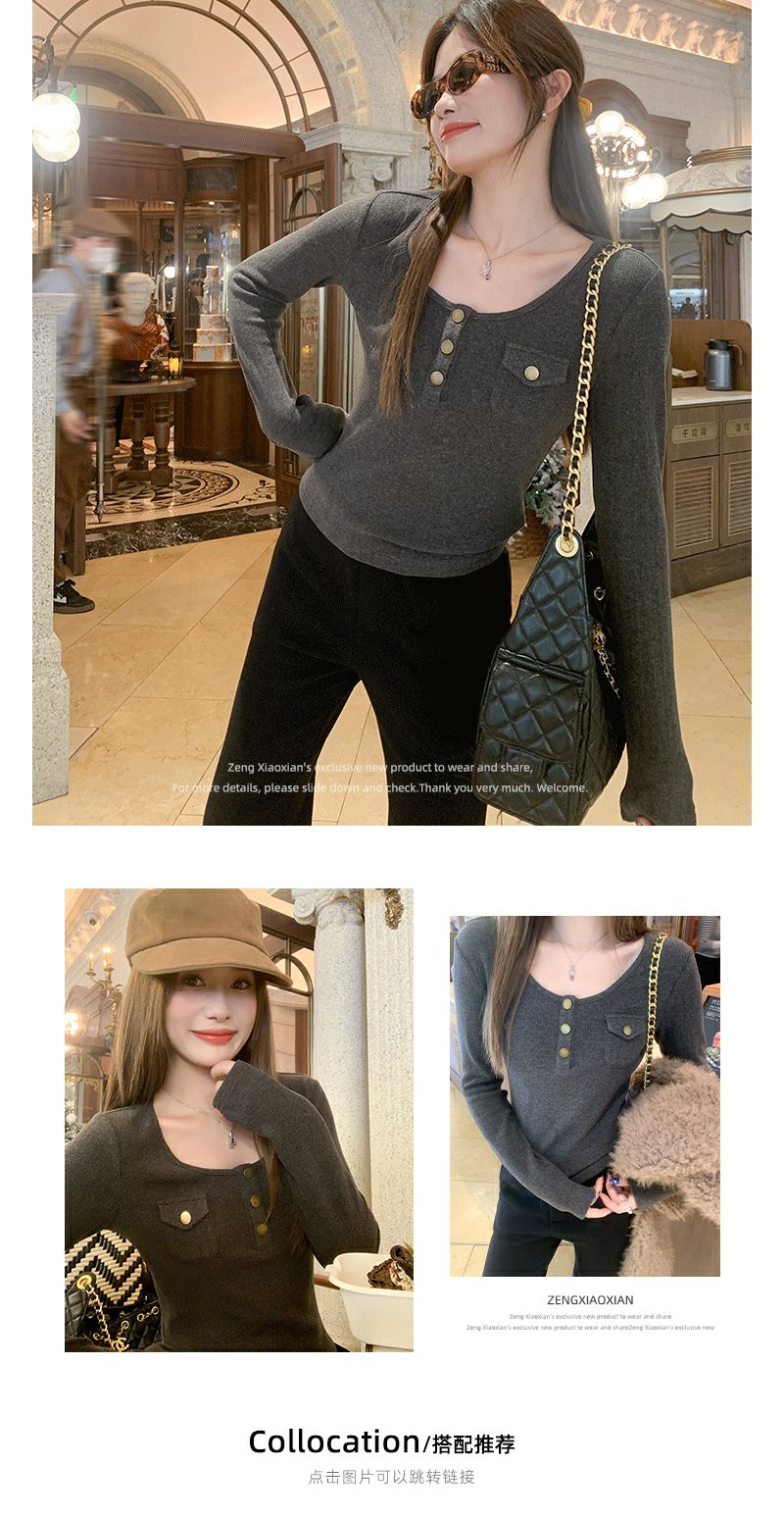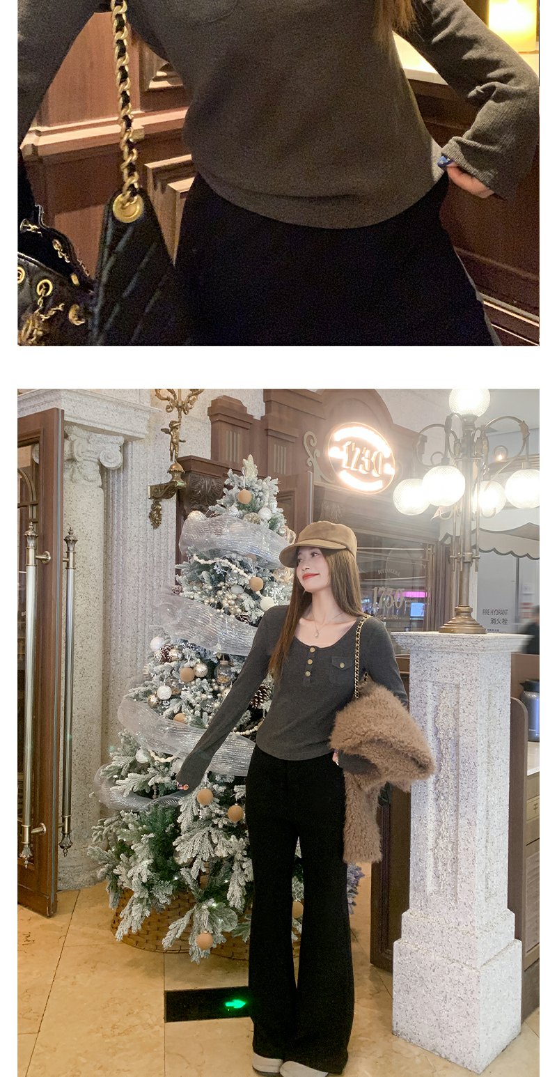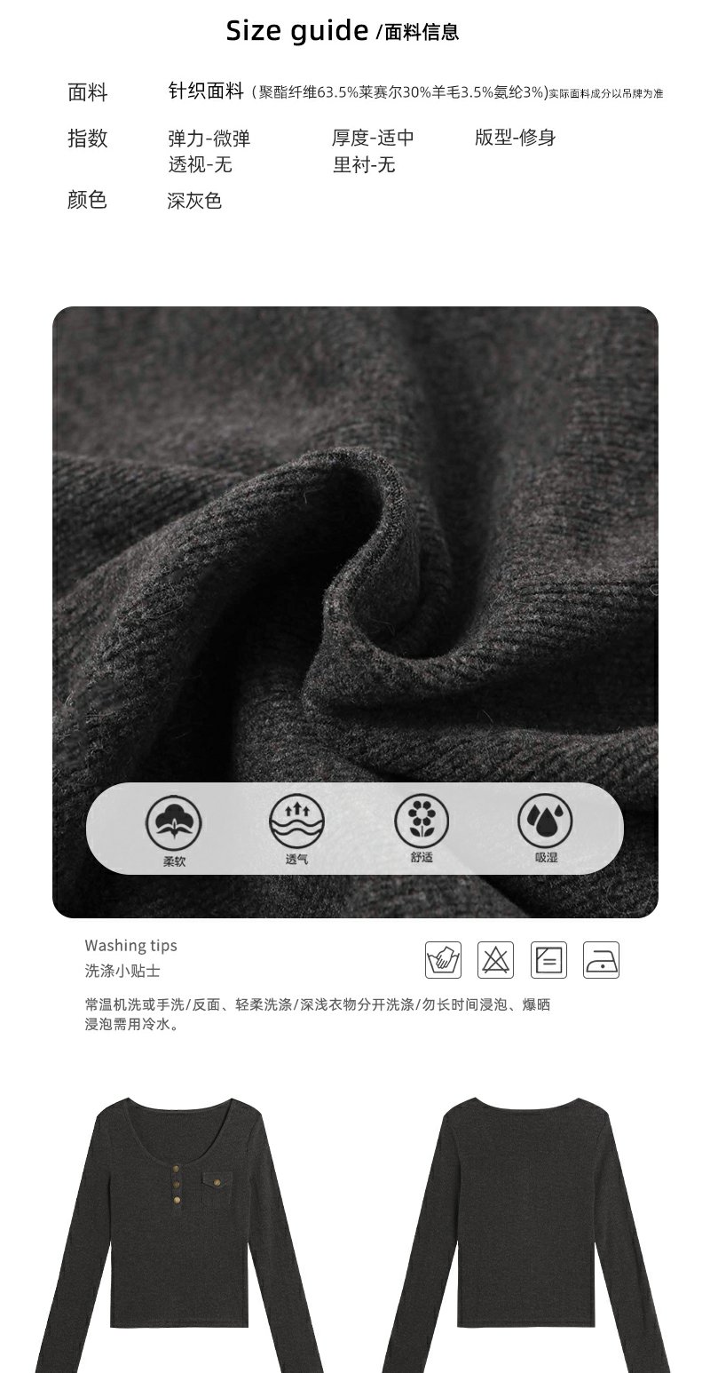 <曾小咸推荐>深灰色修身T恤上衣冬