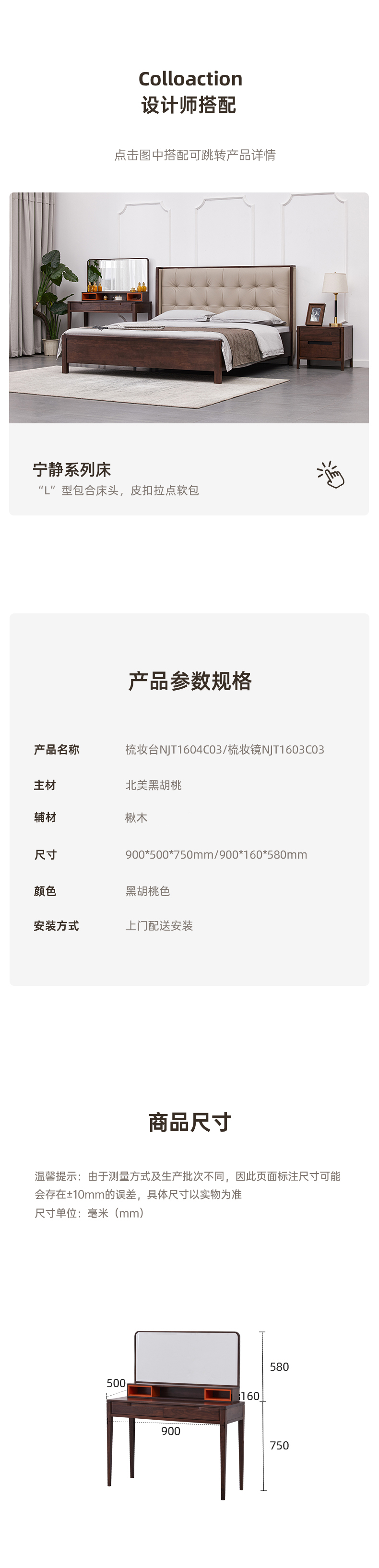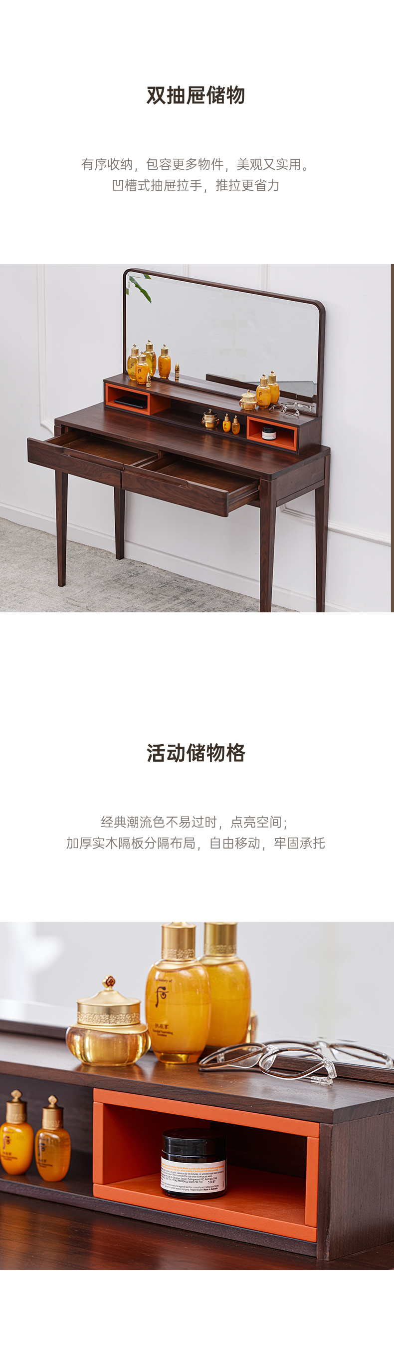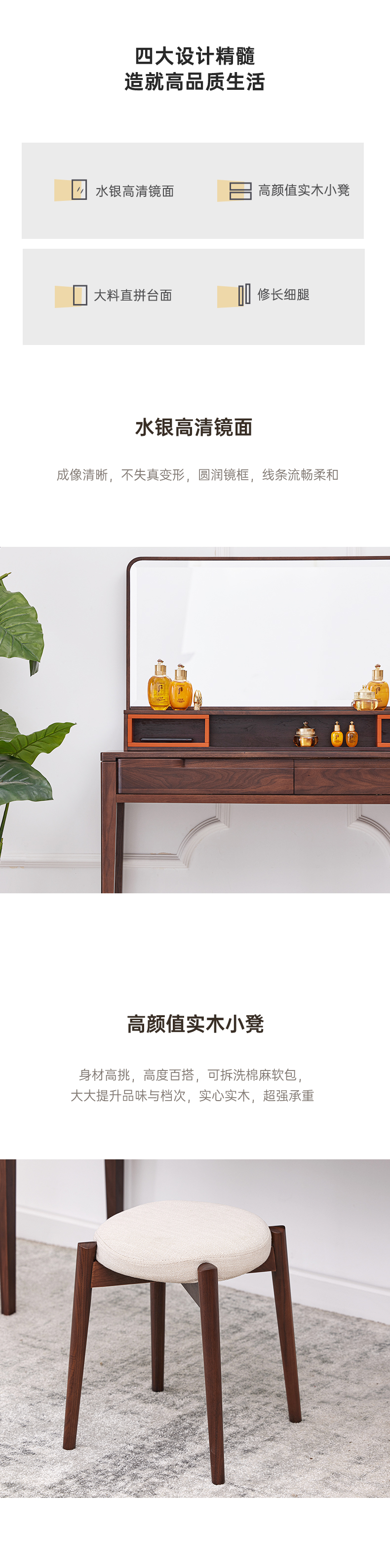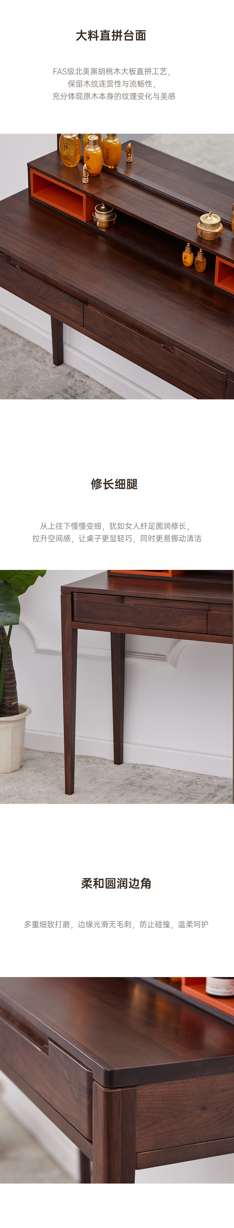 【现代实木风-NJT1604-1603妆台妆镜】现代实木/现代简约/卧室/北美黑胡桃/实木梳妆台