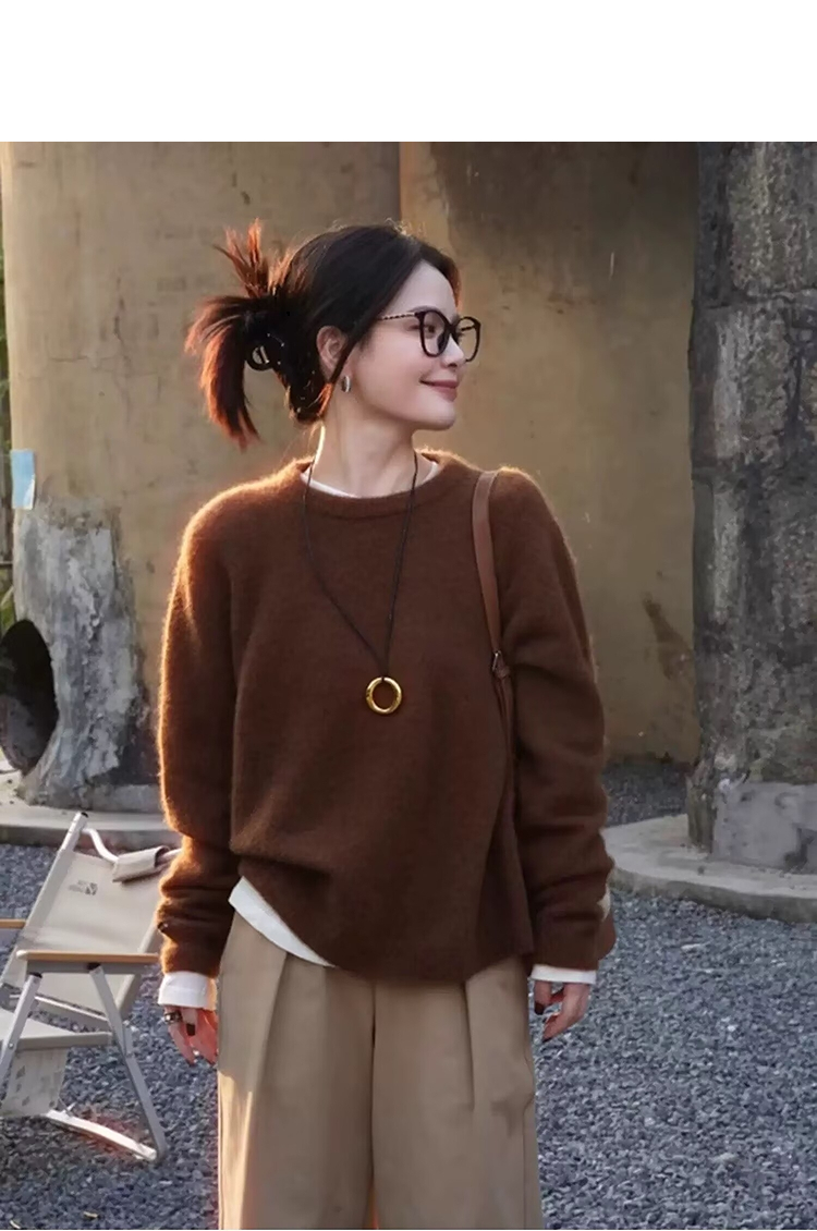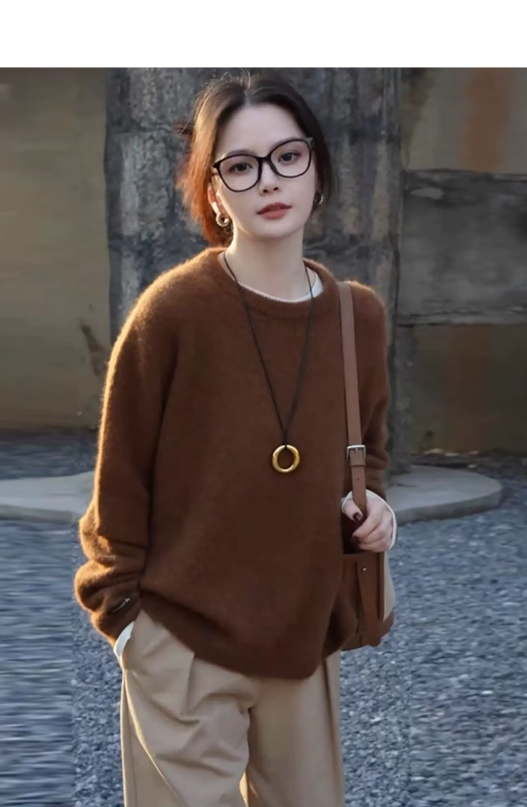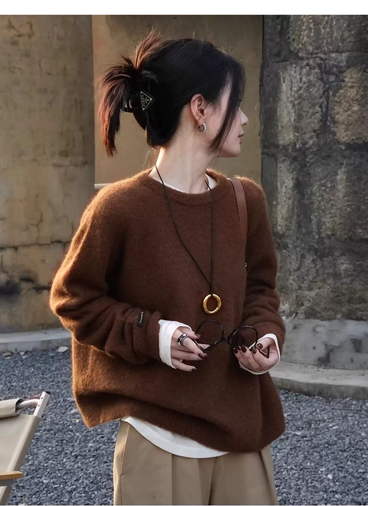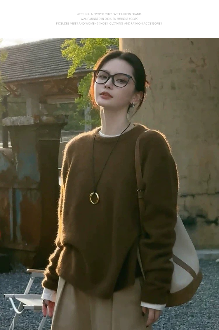西遇美拉德棕色套头毛衣女2026年春季新款时髦软糯宽松毛针织衫SS060027