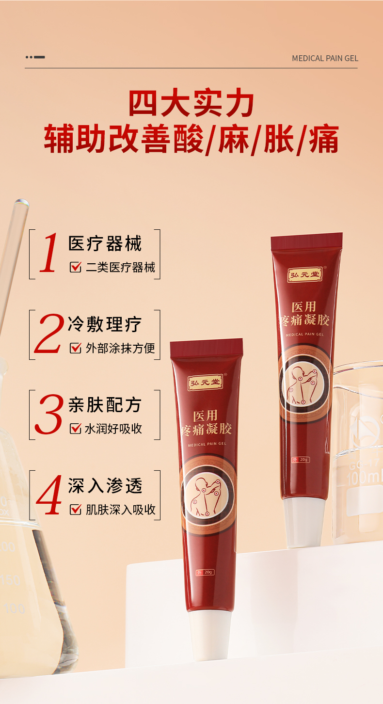 弘元堂医用疼痛凝胶用于肩周炎关节炎颈椎病腰椎间盘突出官方正品