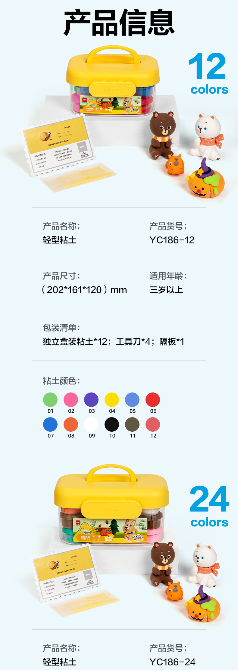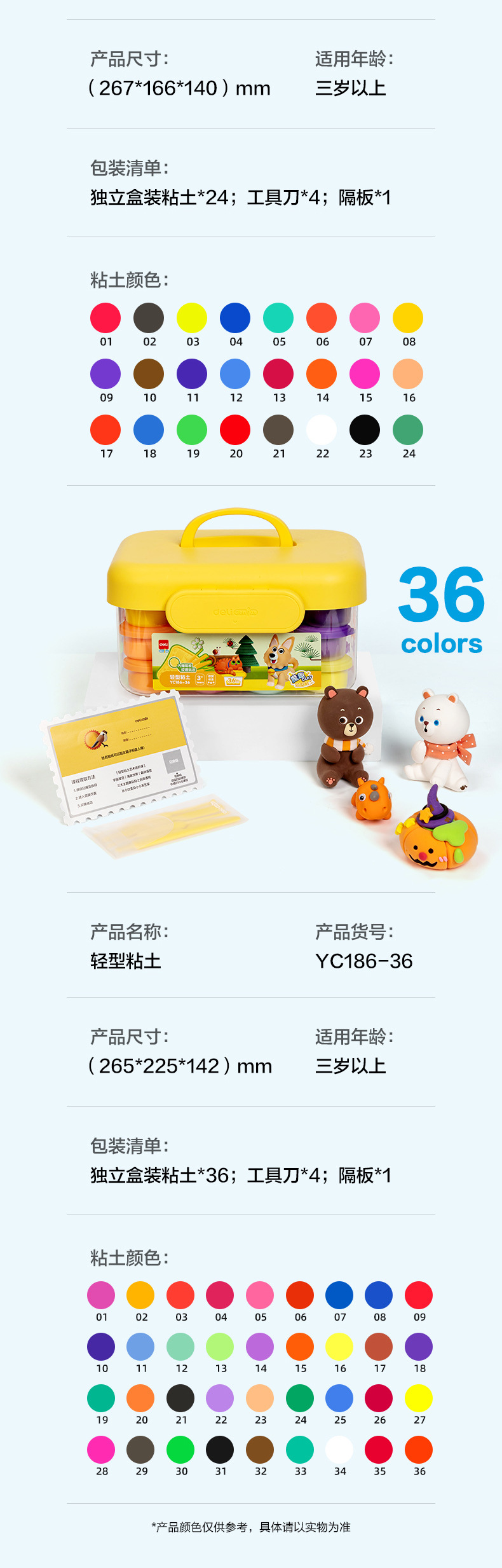 【老师推荐!欧盟认证!】得力超轻粘土套装 36色儿童黏土橡皮泥 24色幼儿园手工彩泥套装