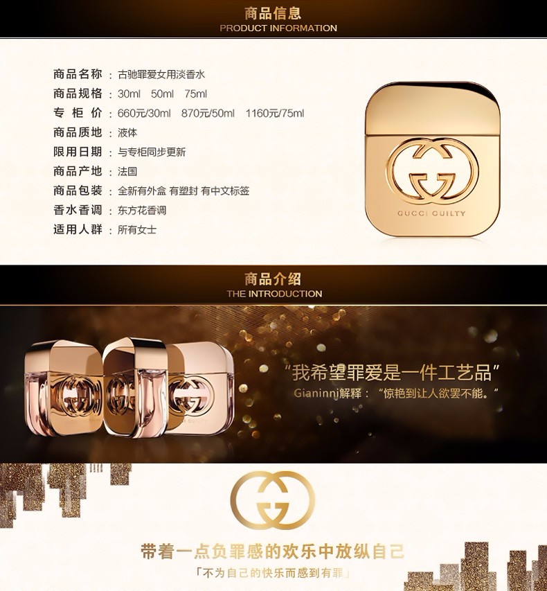 意大利 GUCCI 古驰 罪爱之水女士淡香EDT 30ML