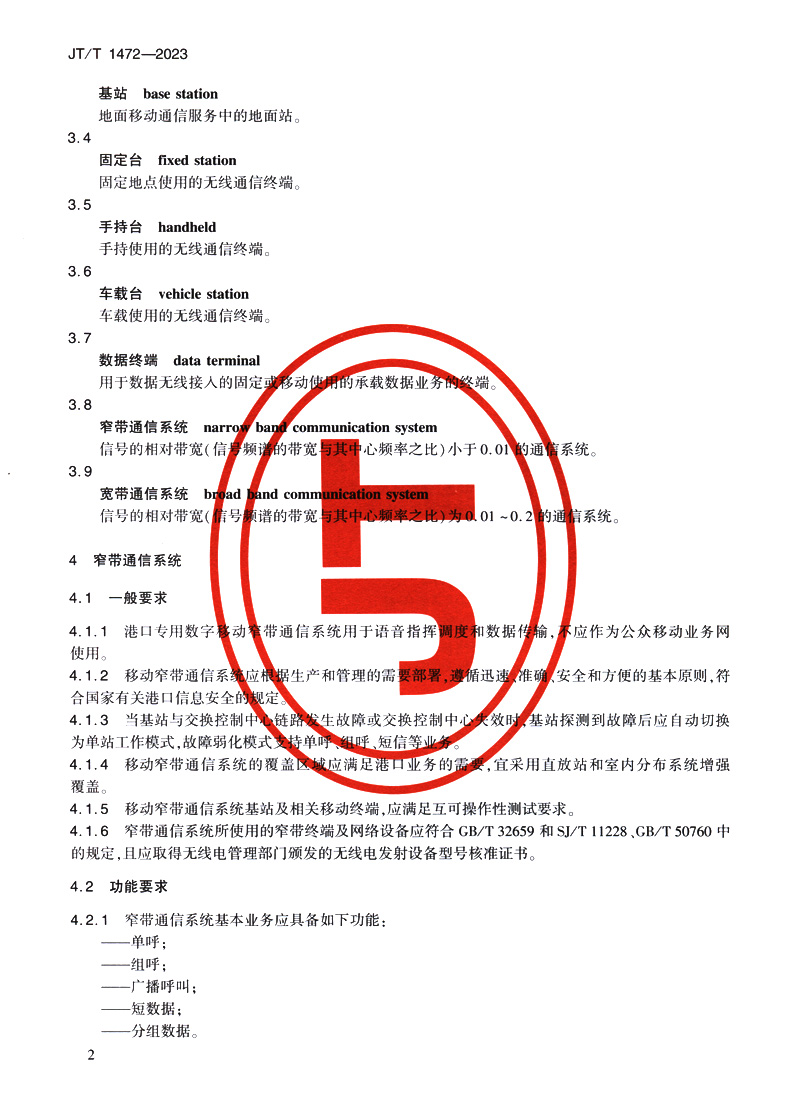 书名:港口专用数字移动通信系统要求(JT/T 1472—2023)
