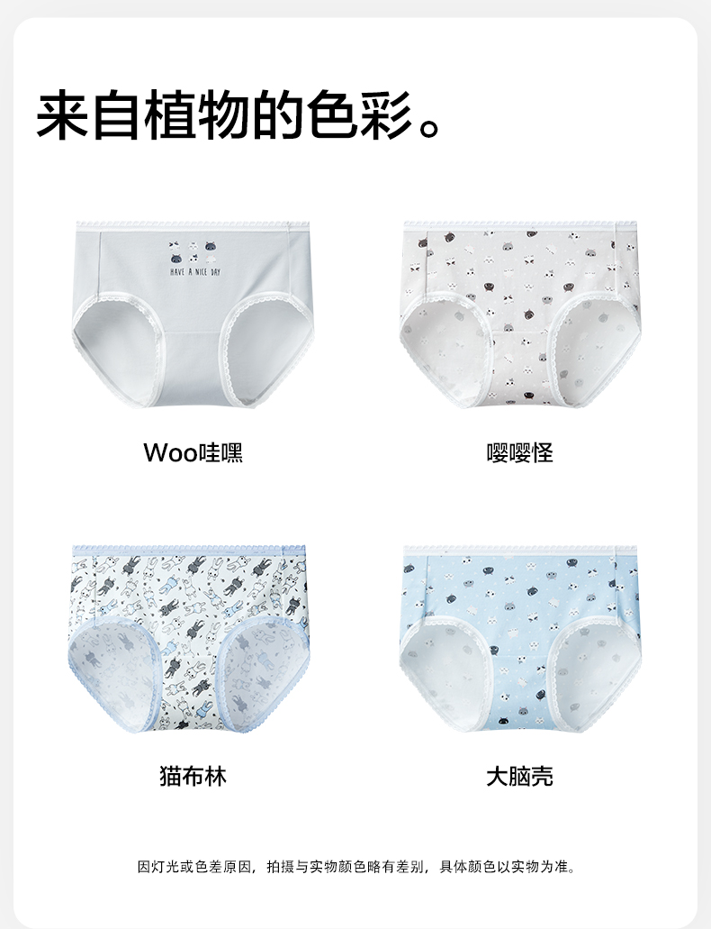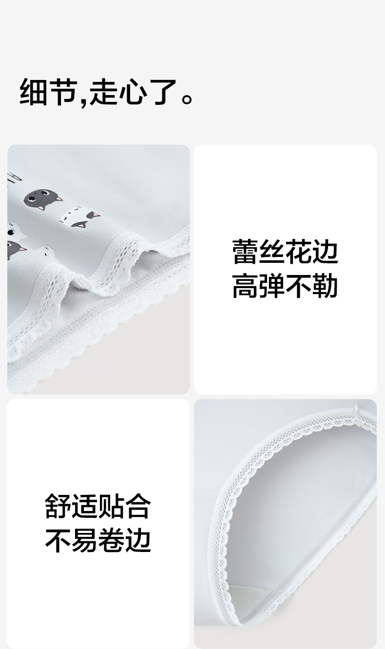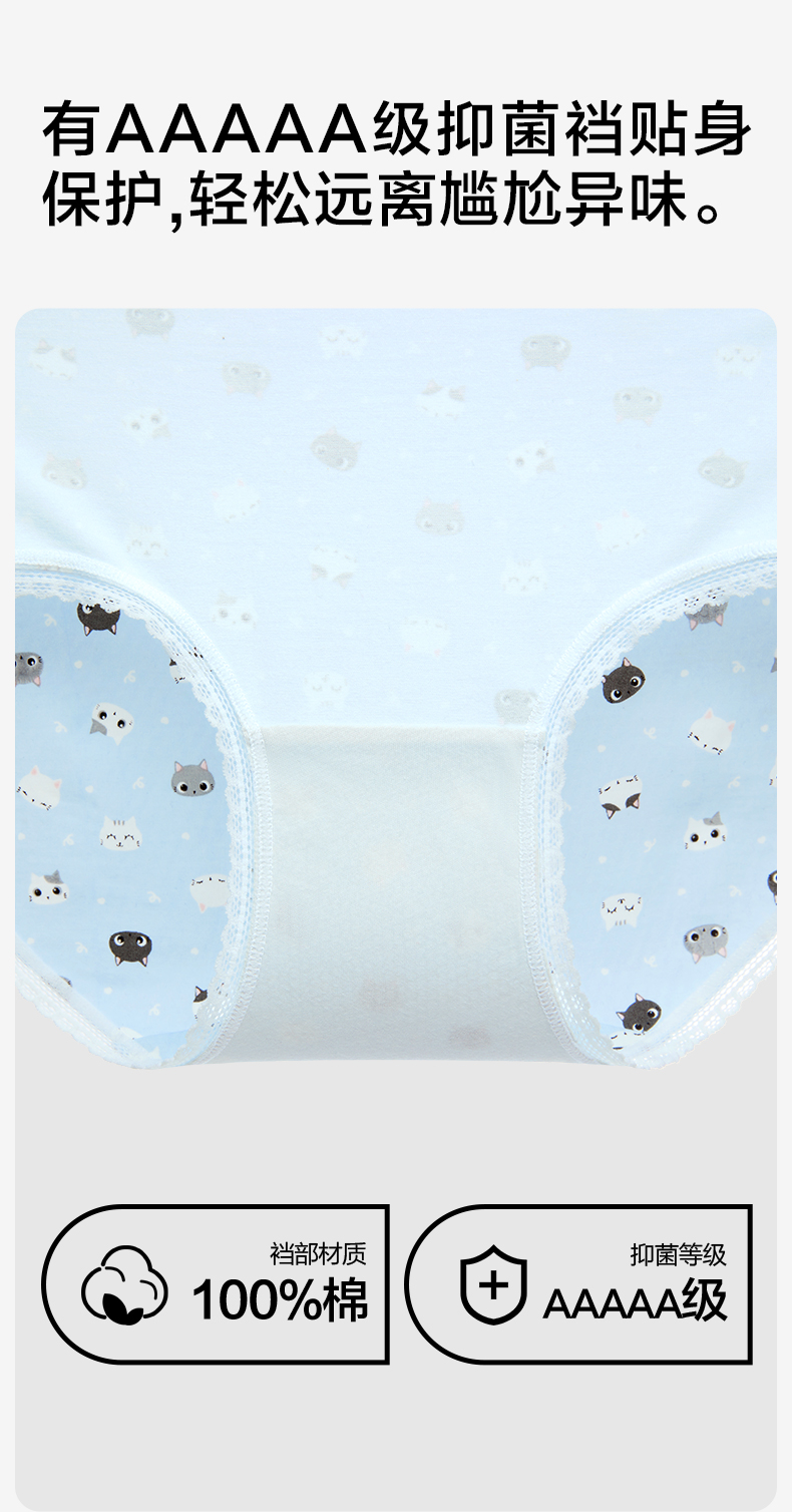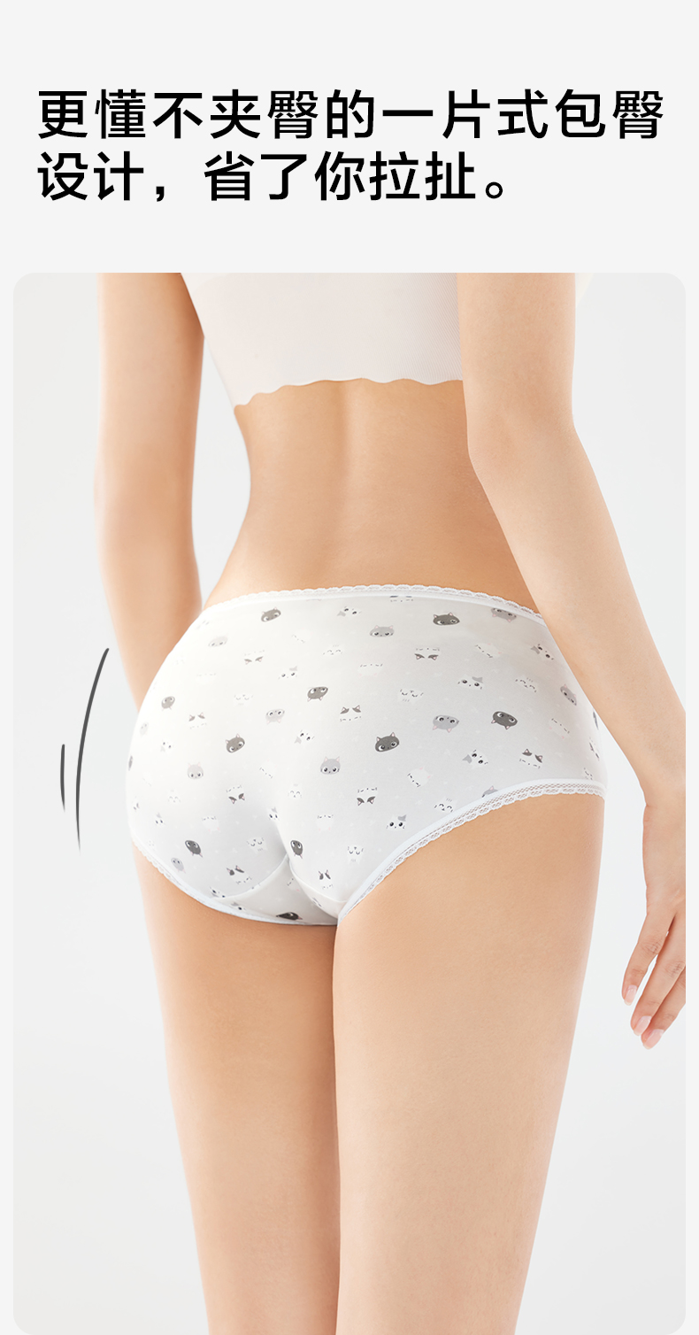 有棵树少女中腰蕾丝可爱印花女士内裤3条装C-U1012