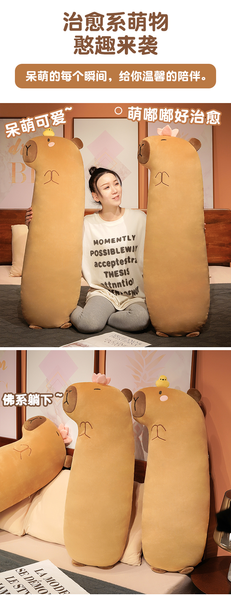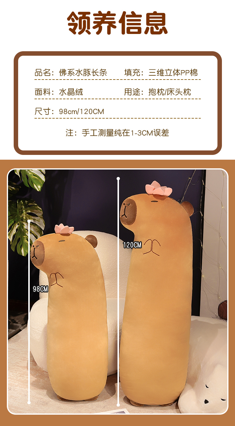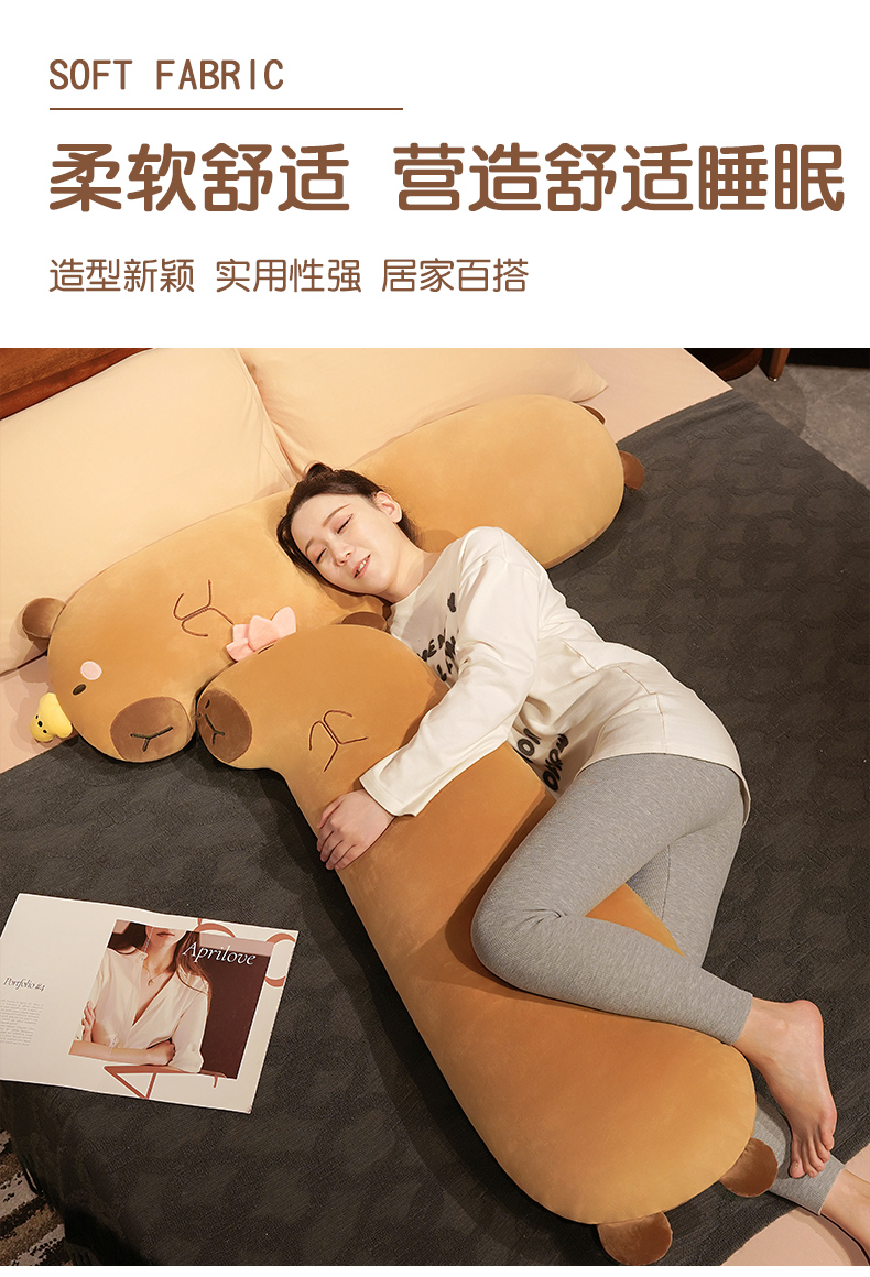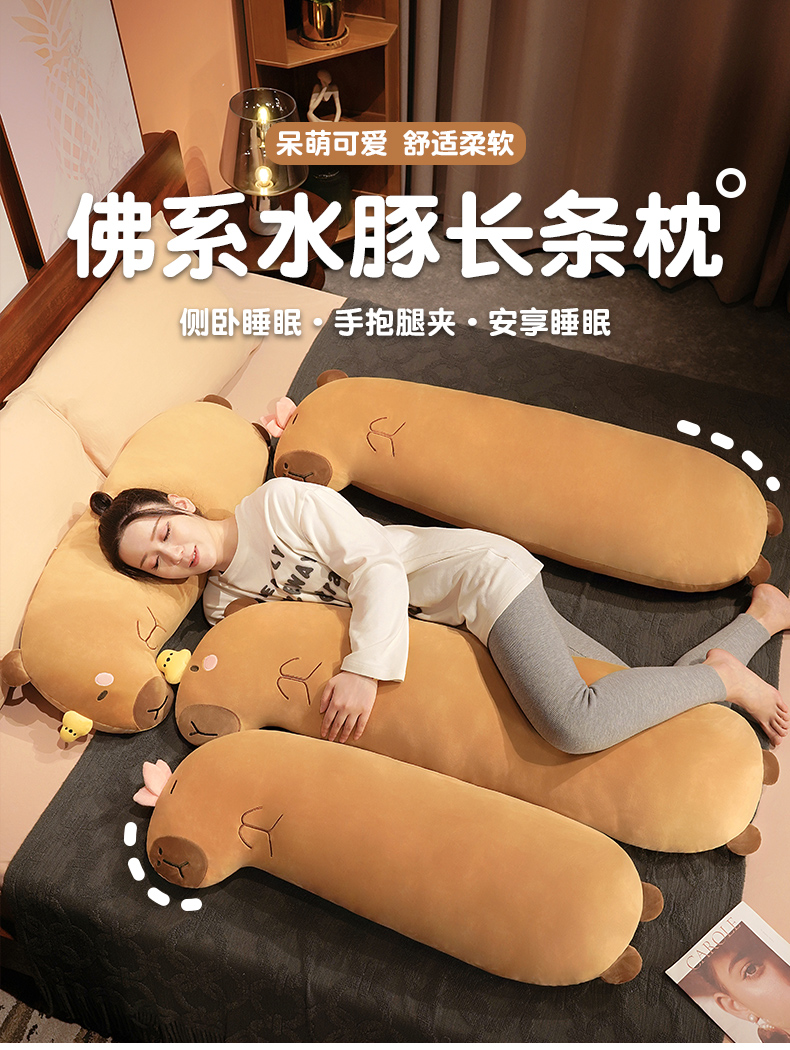 自然醒佛系水豚长条抱枕女生睡觉夹腿侧睡神器床头大靠垫床上男QYL