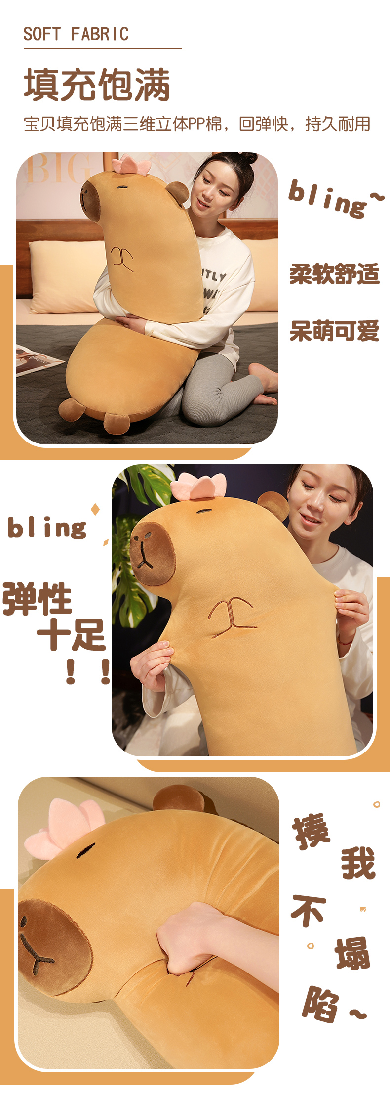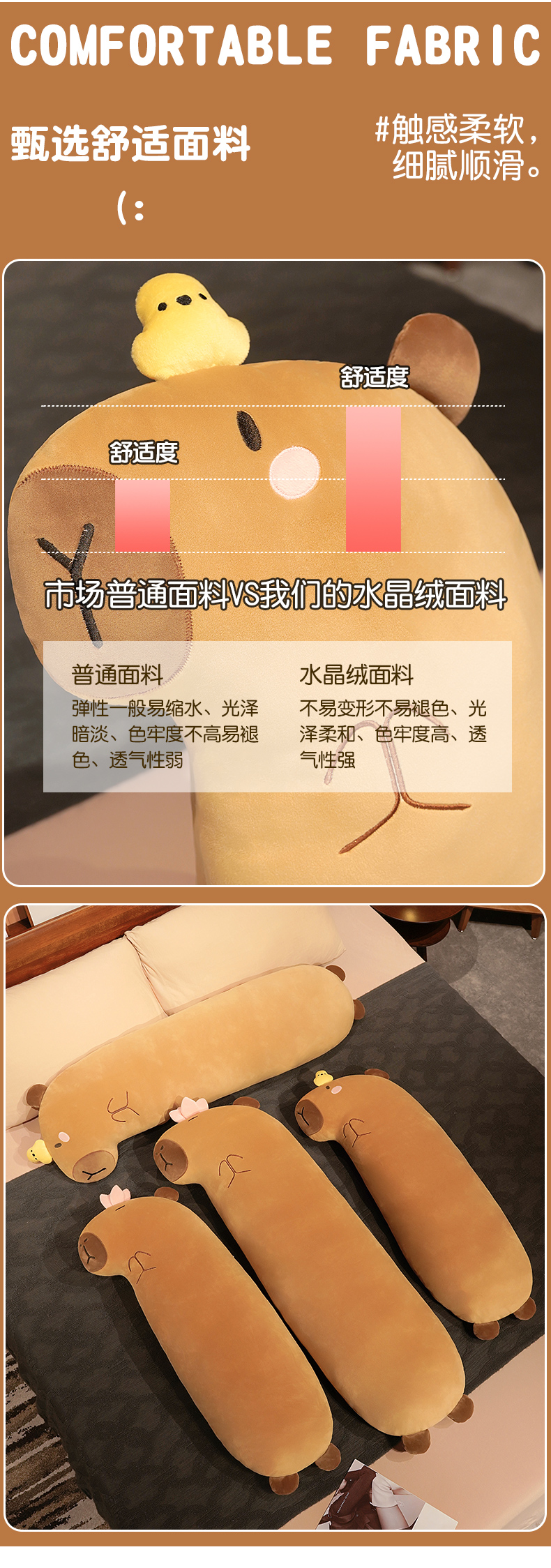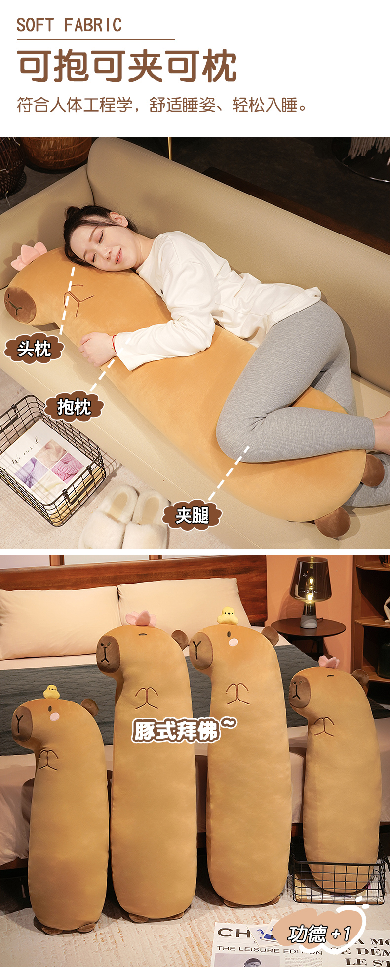自然醒佛系水豚长条抱枕女生睡觉夹腿侧睡神器床头大靠垫床上男QYL