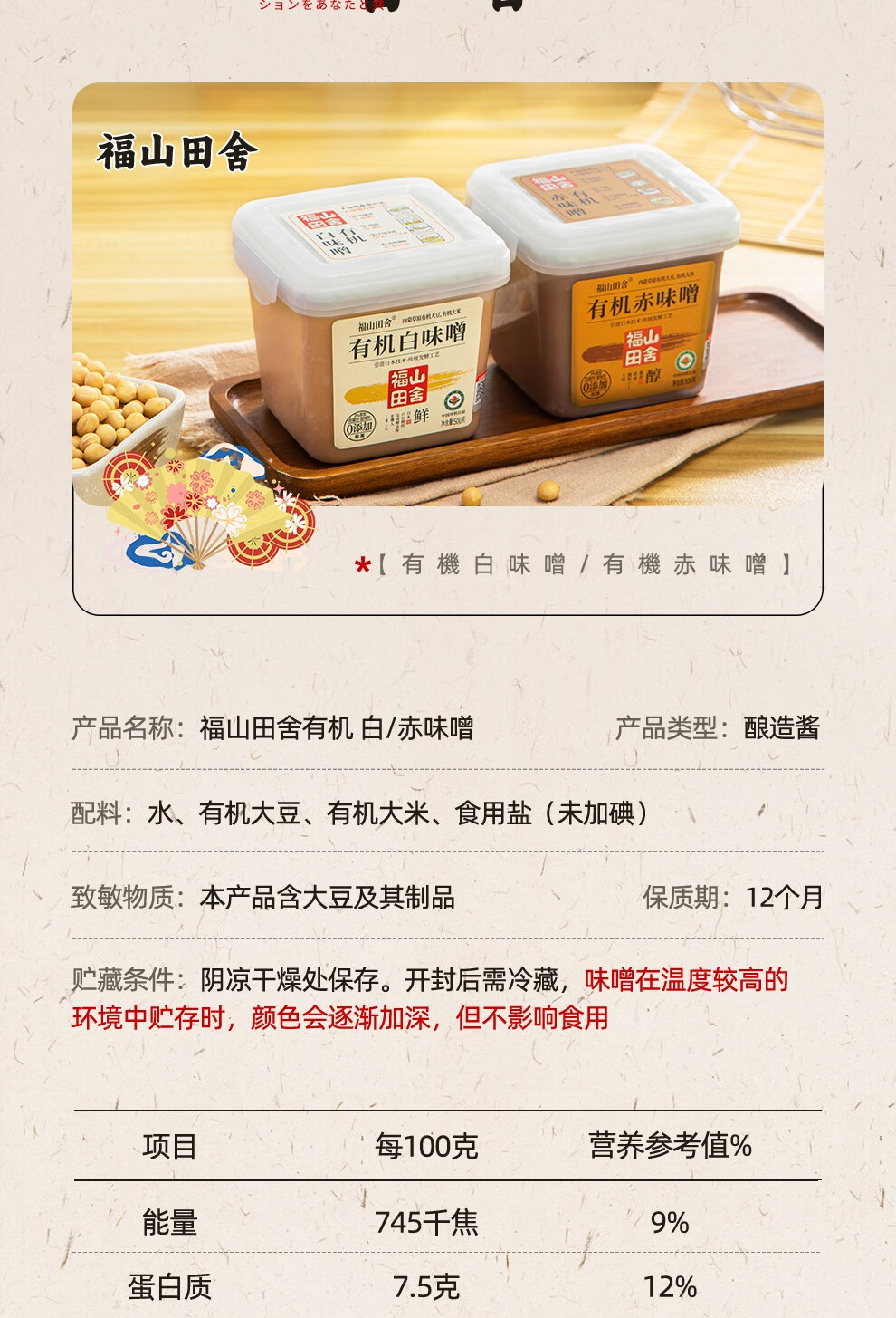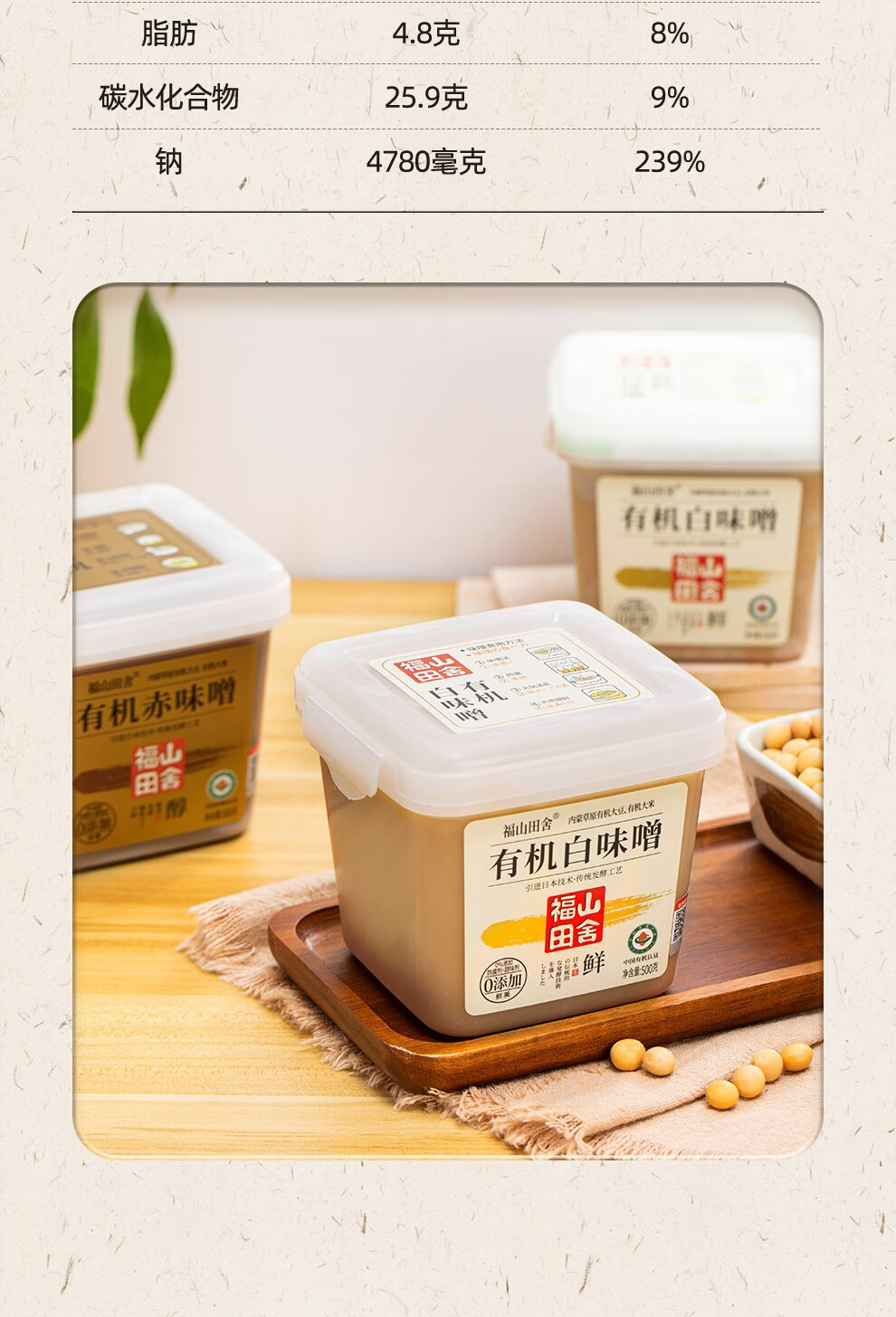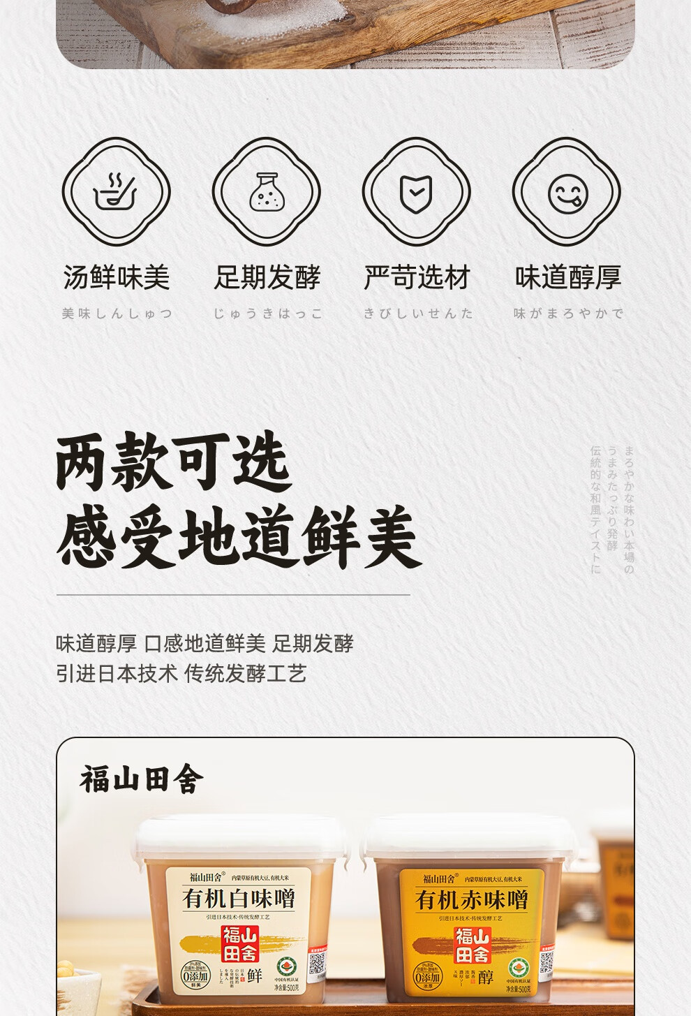 福山田舍 有机味噌酱 500g 日式味增汤调味酱日料酱汤