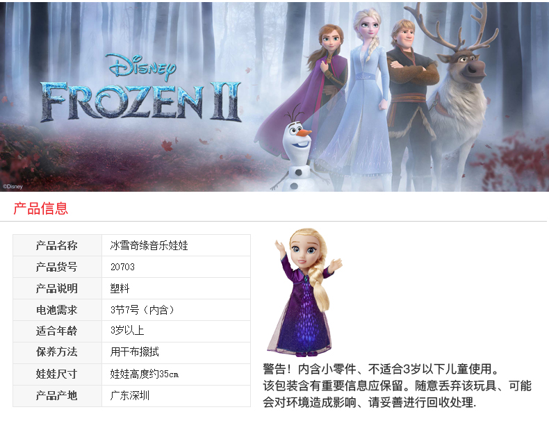 杰克仕 20703 冰雪奇缘音乐娃娃 (艾莎)