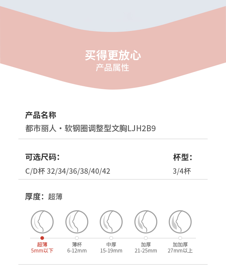 都市丽人舒软挺塑调整型文胸超薄蕾丝软钢圈塑身文胸LJH2B9