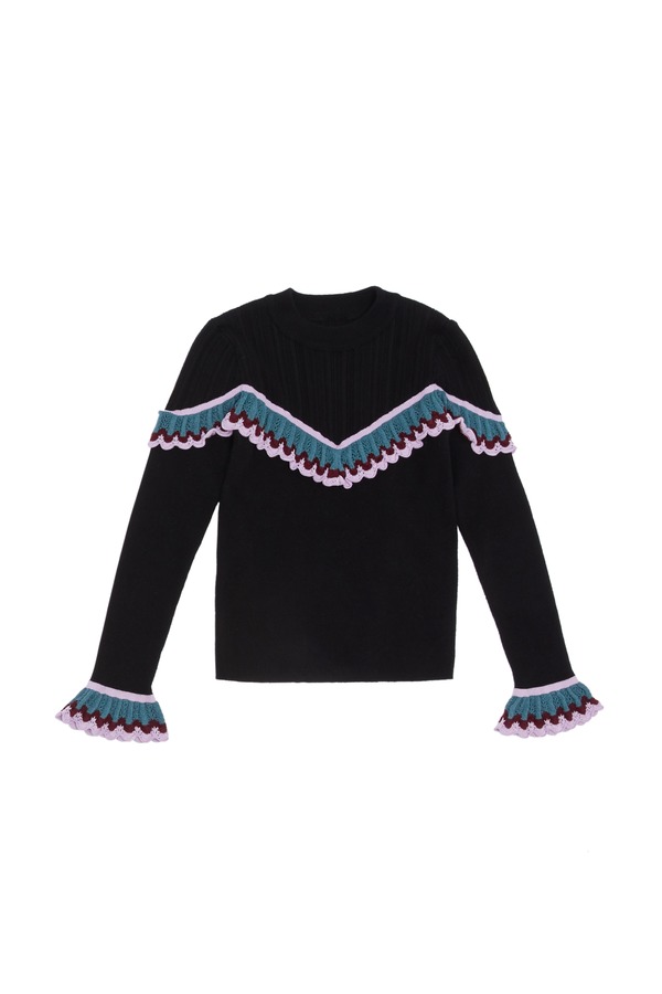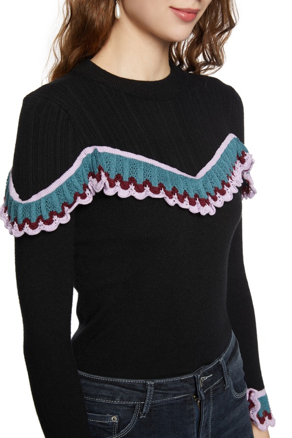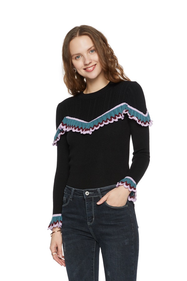 LED'IN 几何木耳边饰拼接毛衣 5417