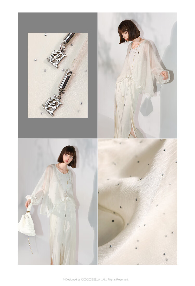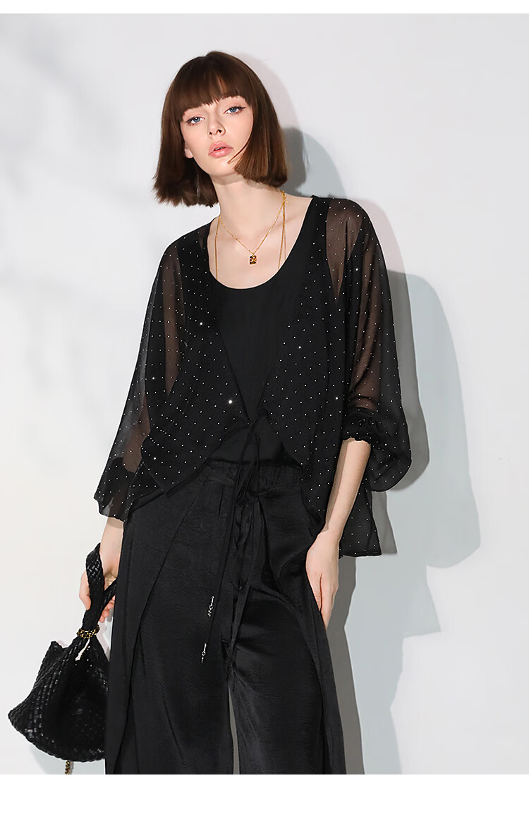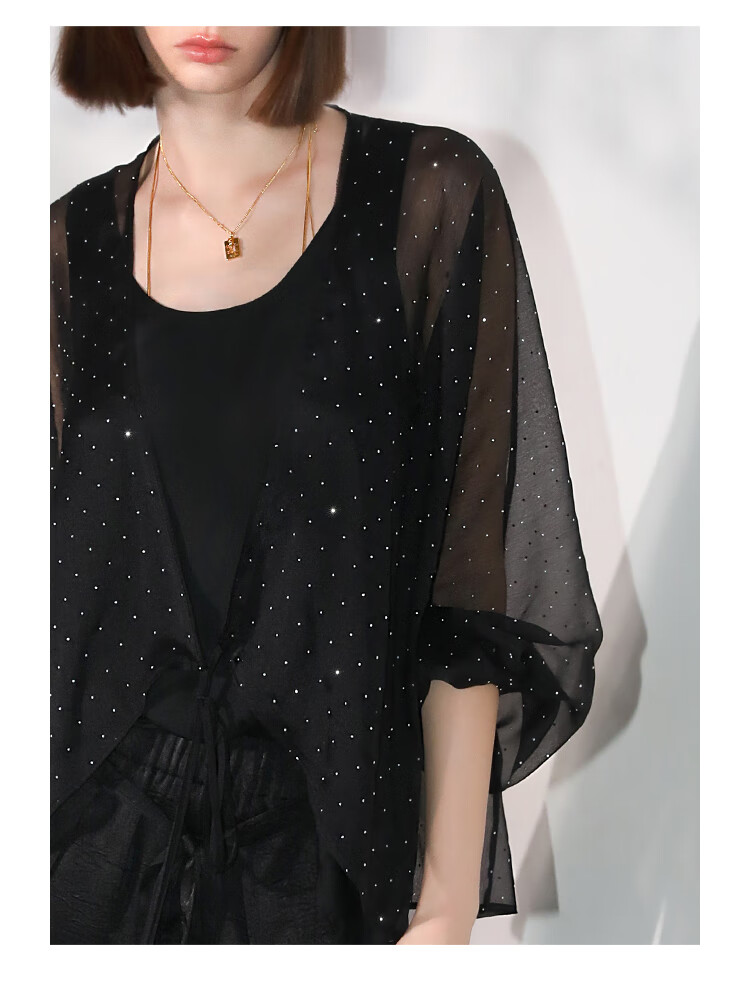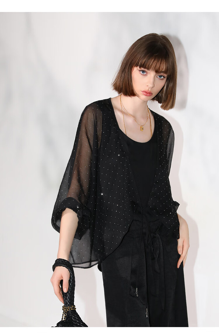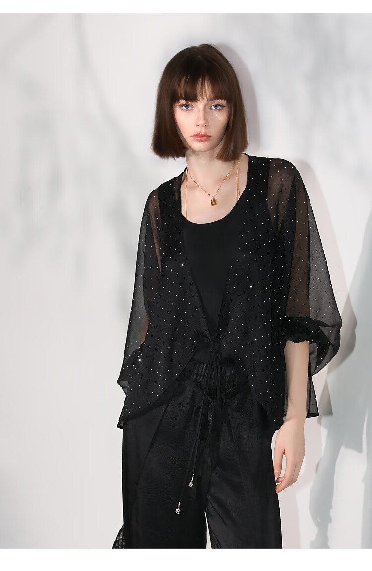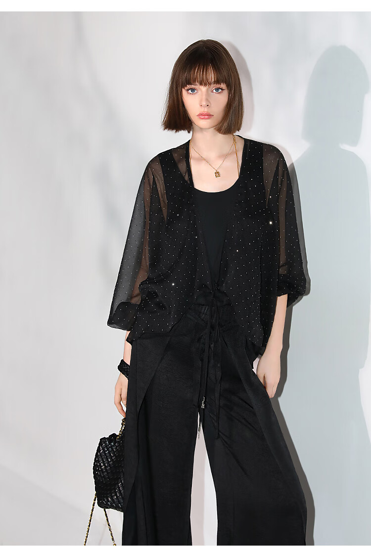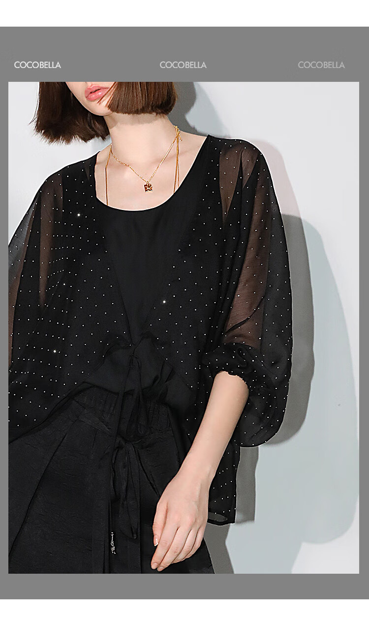 COCOBELLA璀璨星河手工烫钻微透视蝙蝠袖雪纺衫开衫SN7001