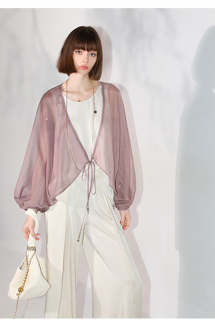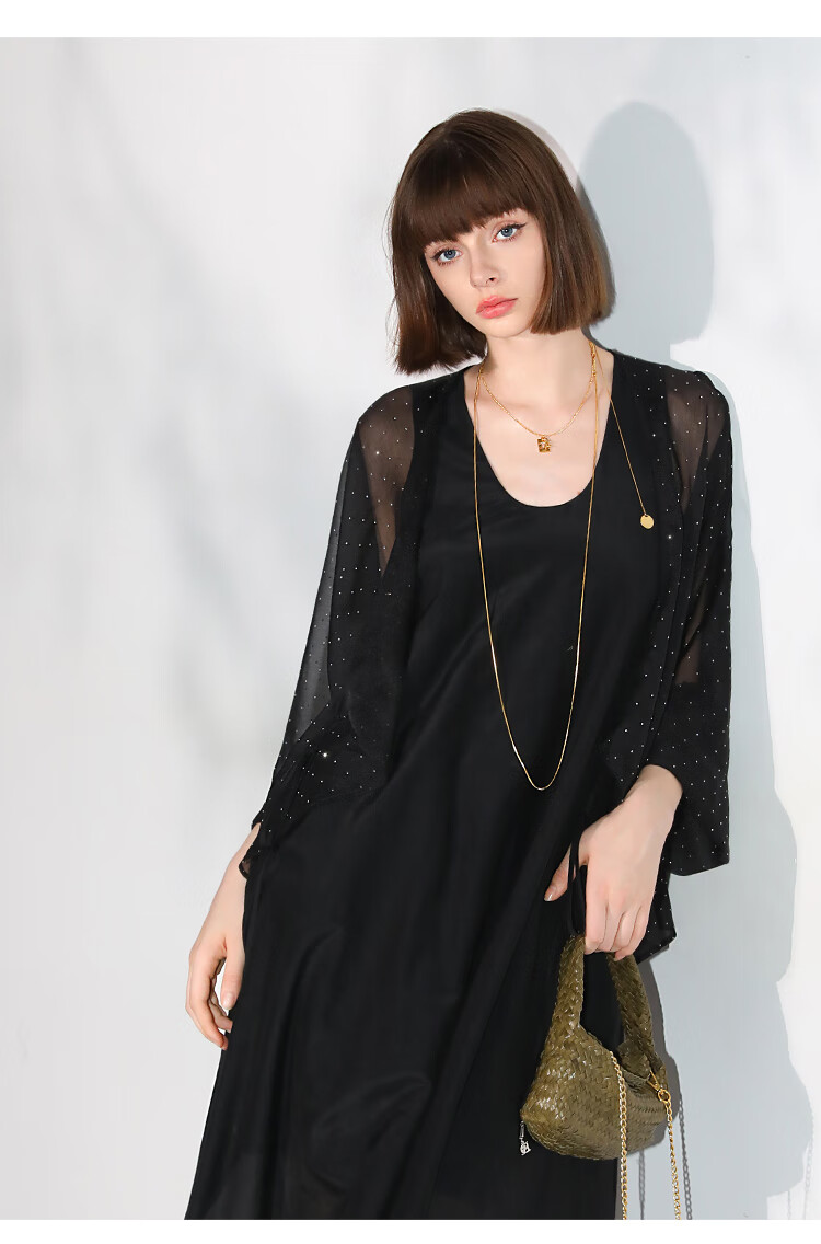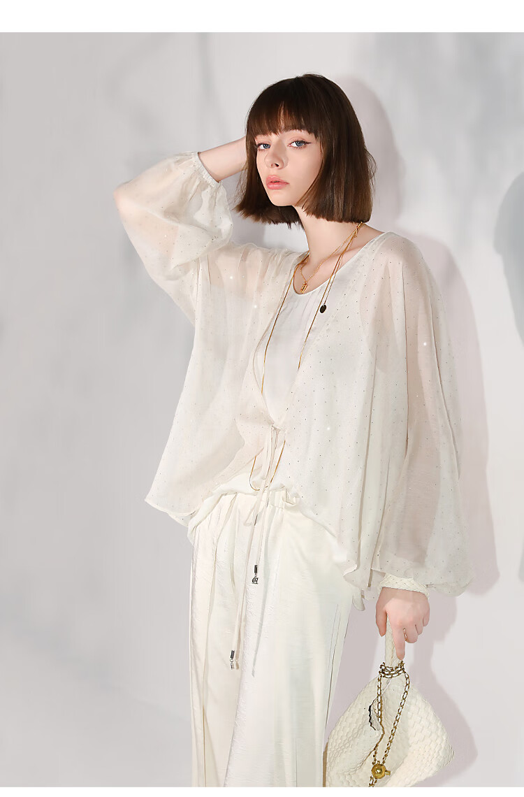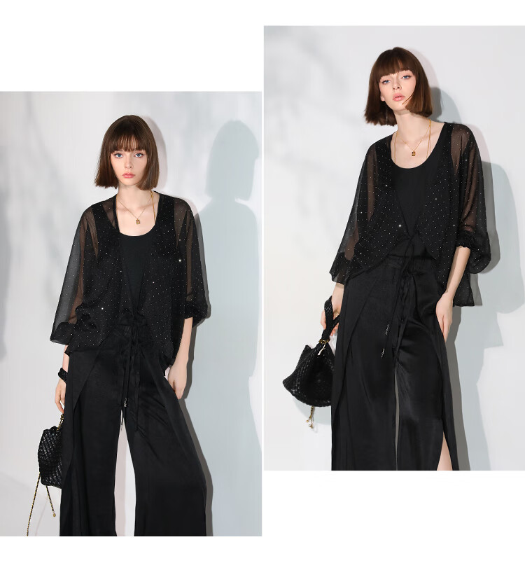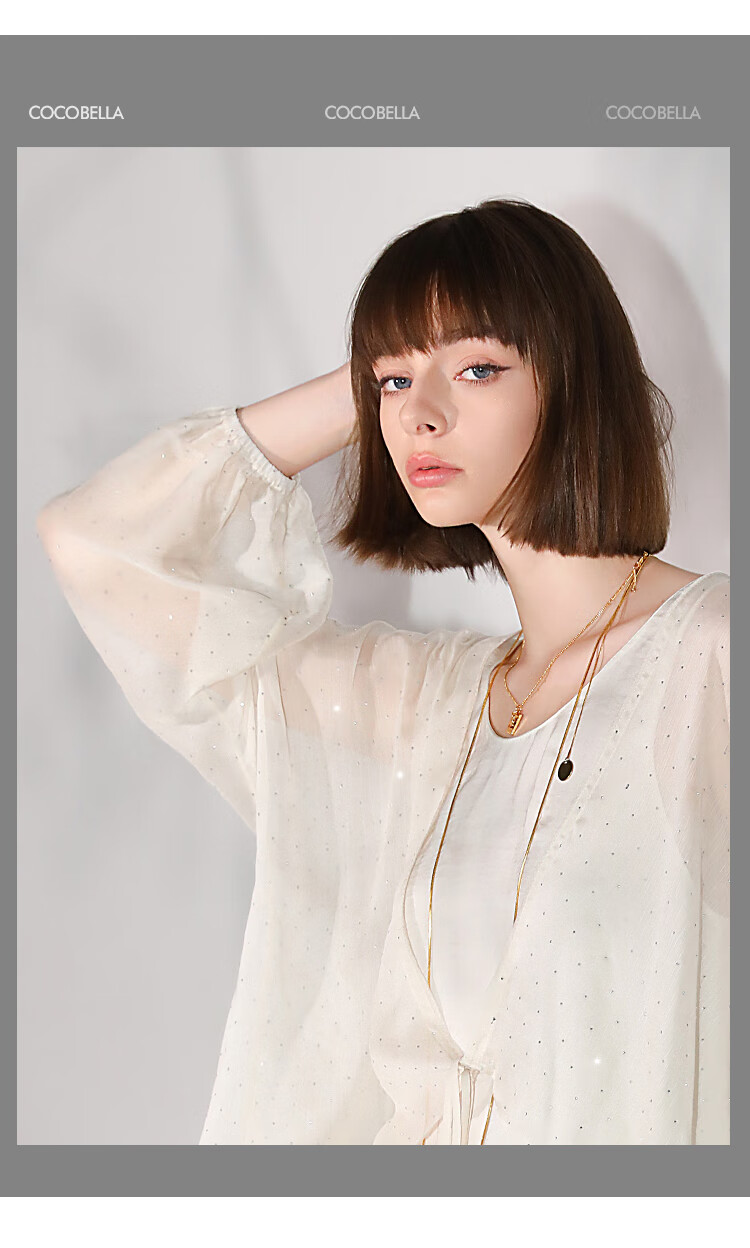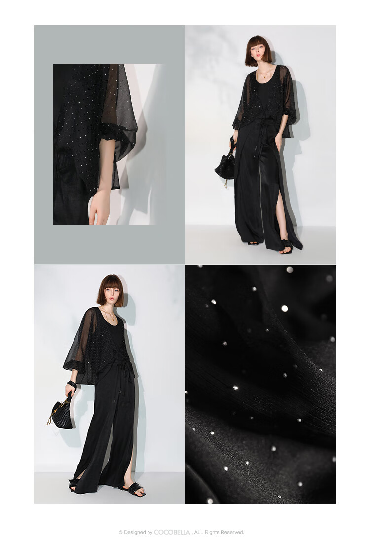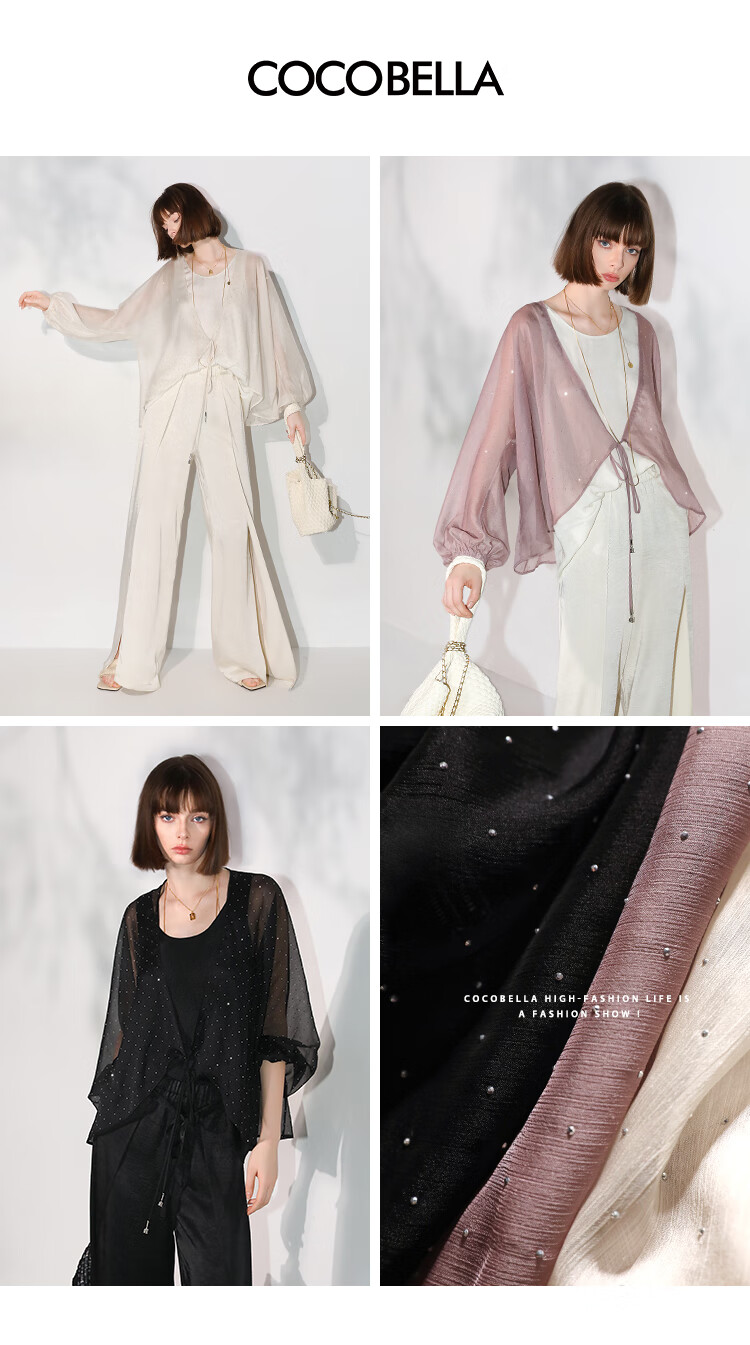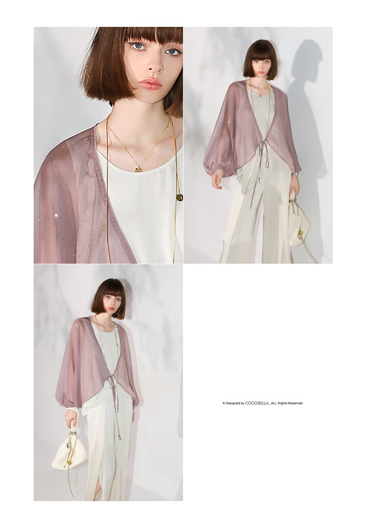 COCOBELLA璀璨星河手工烫钻微透视蝙蝠袖雪纺衫开衫SN7001