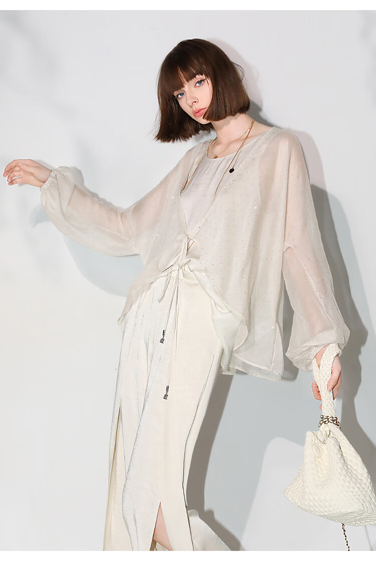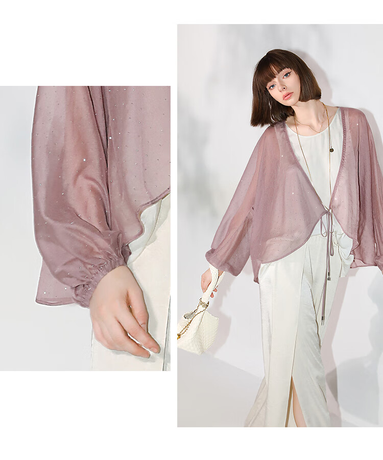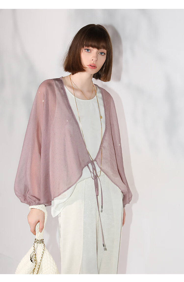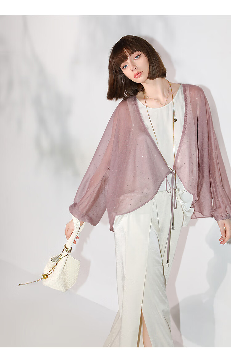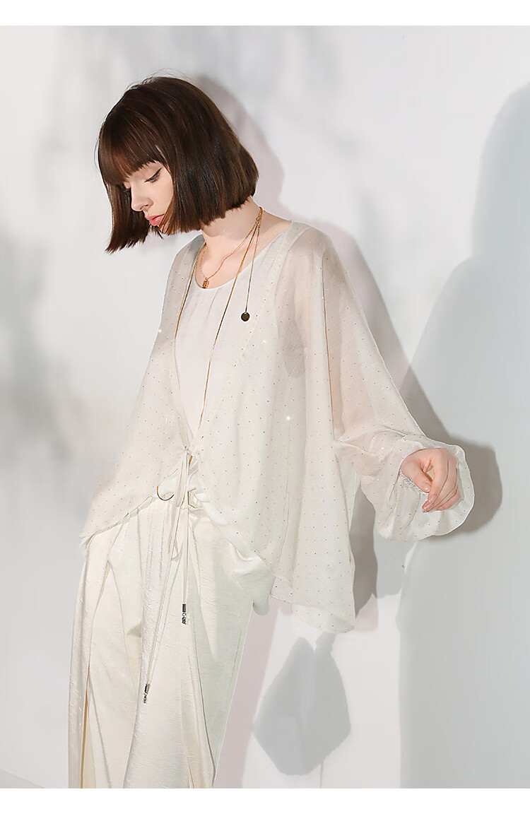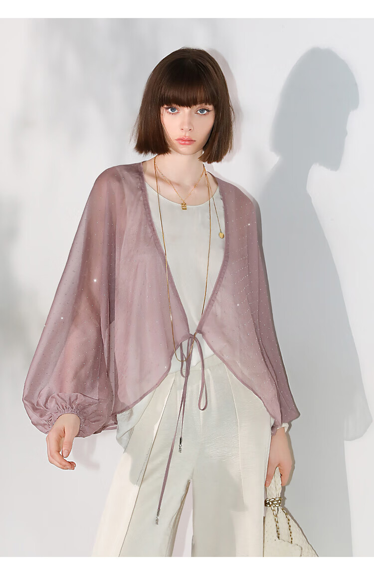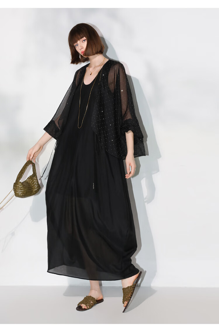 COCOBELLA璀璨星河手工烫钻微透视蝙蝠袖雪纺衫开衫SN7001