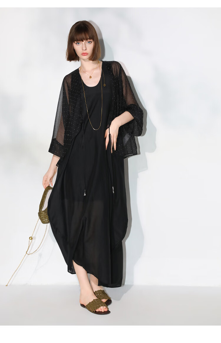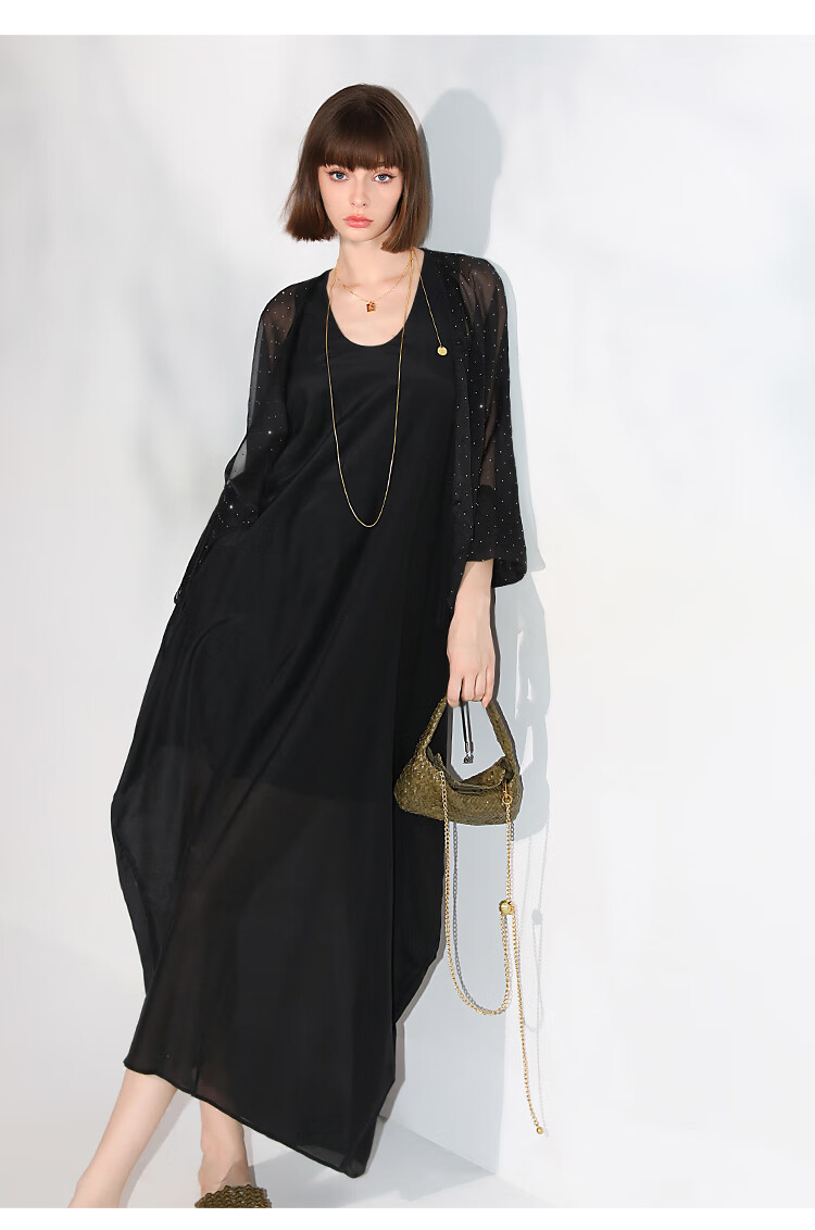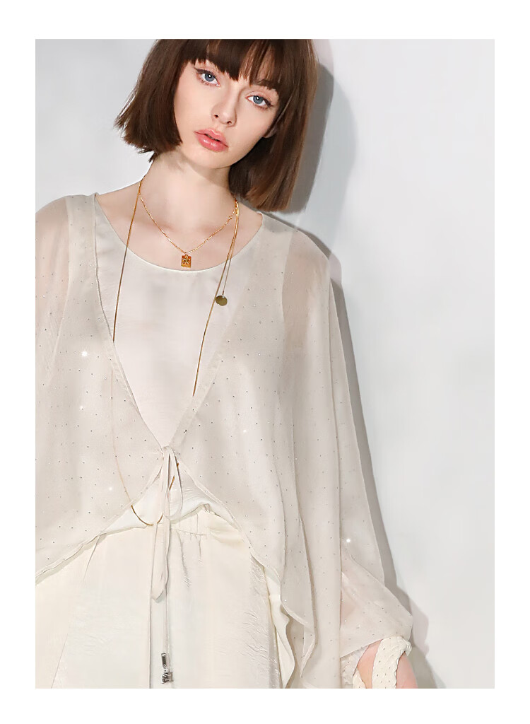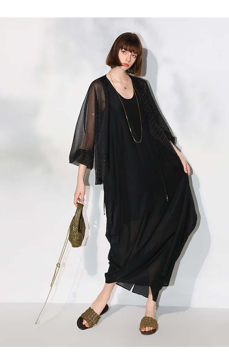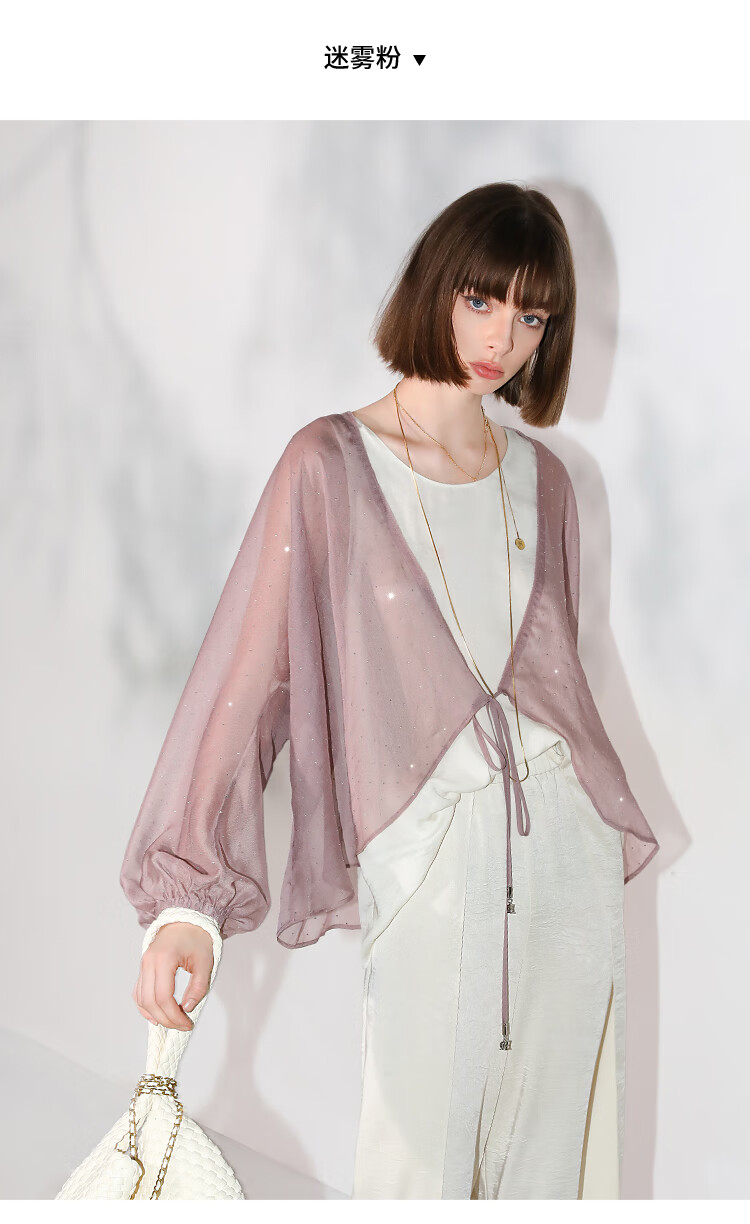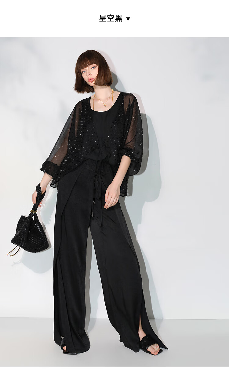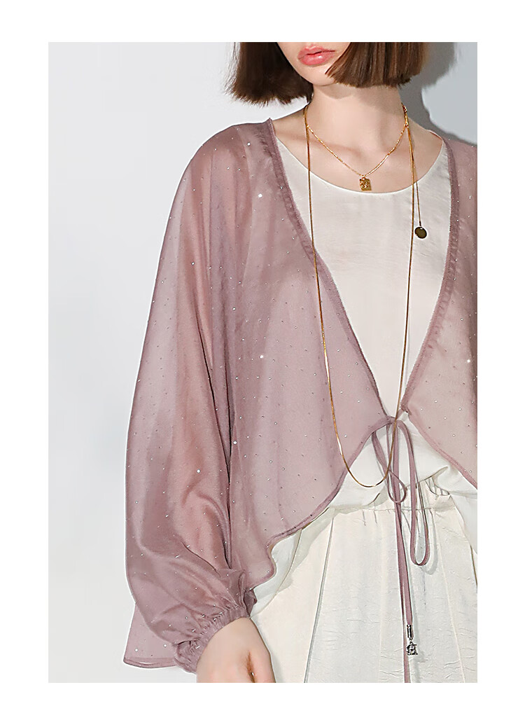COCOBELLA璀璨星河手工烫钻微透视蝙蝠袖雪纺衫开衫SN7001