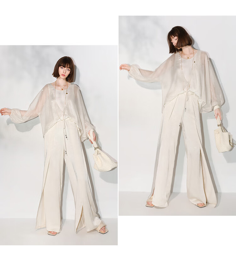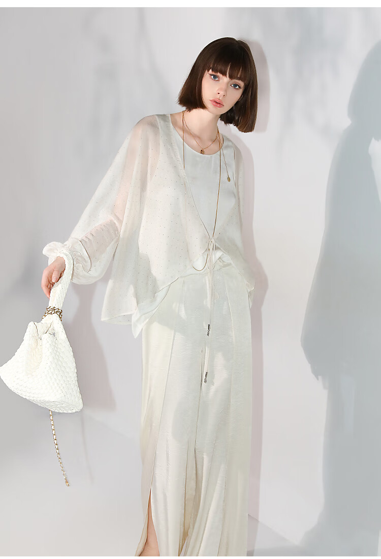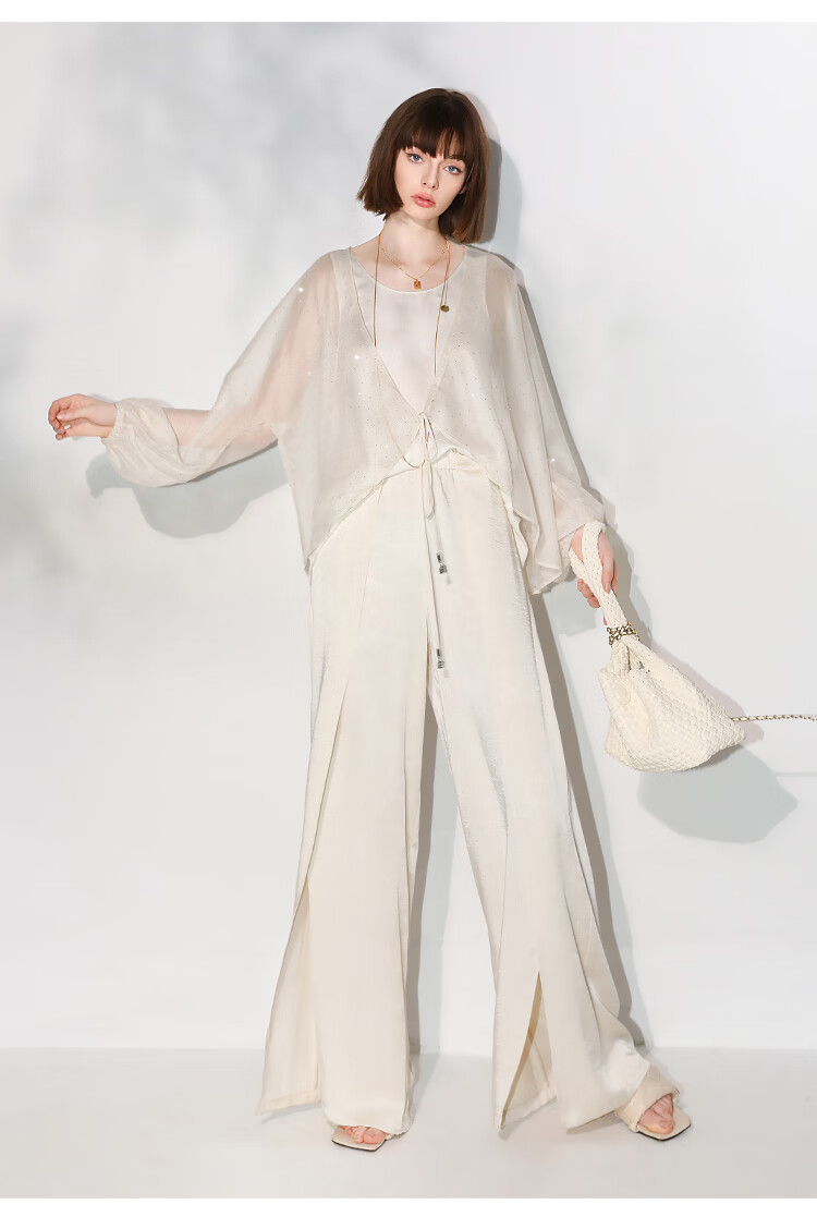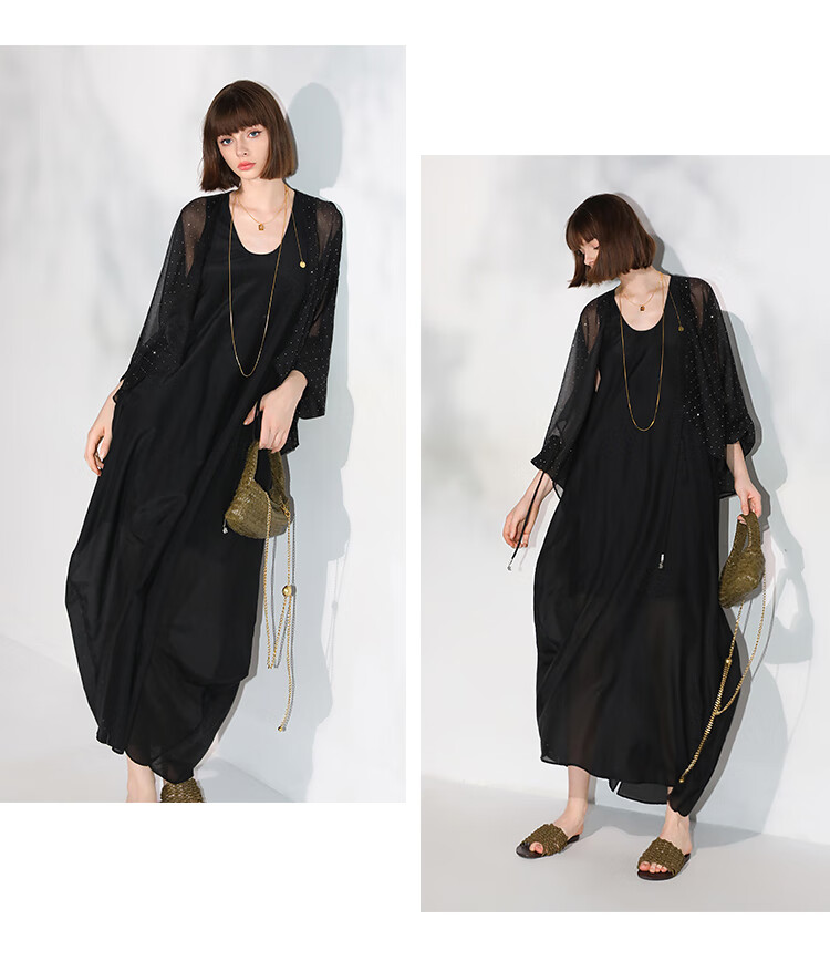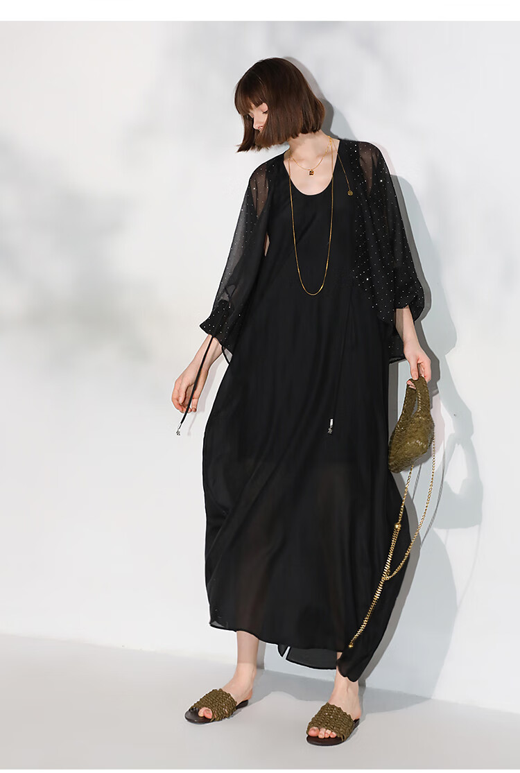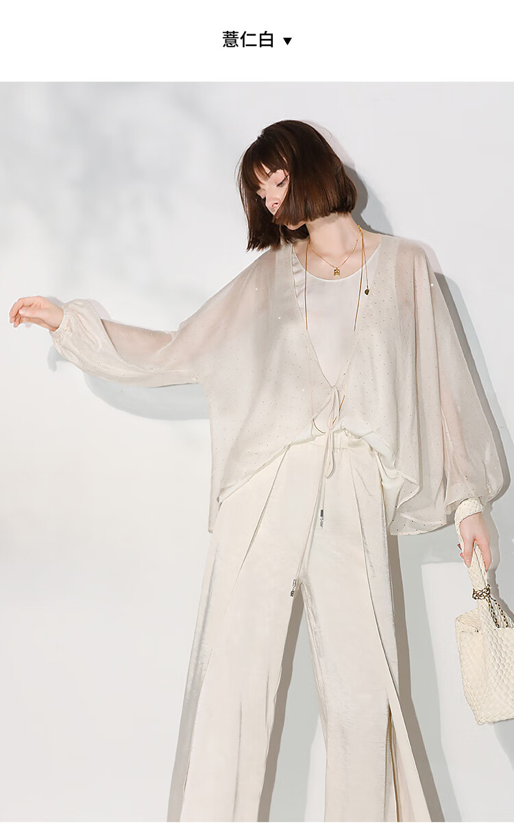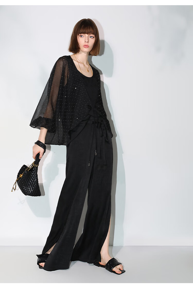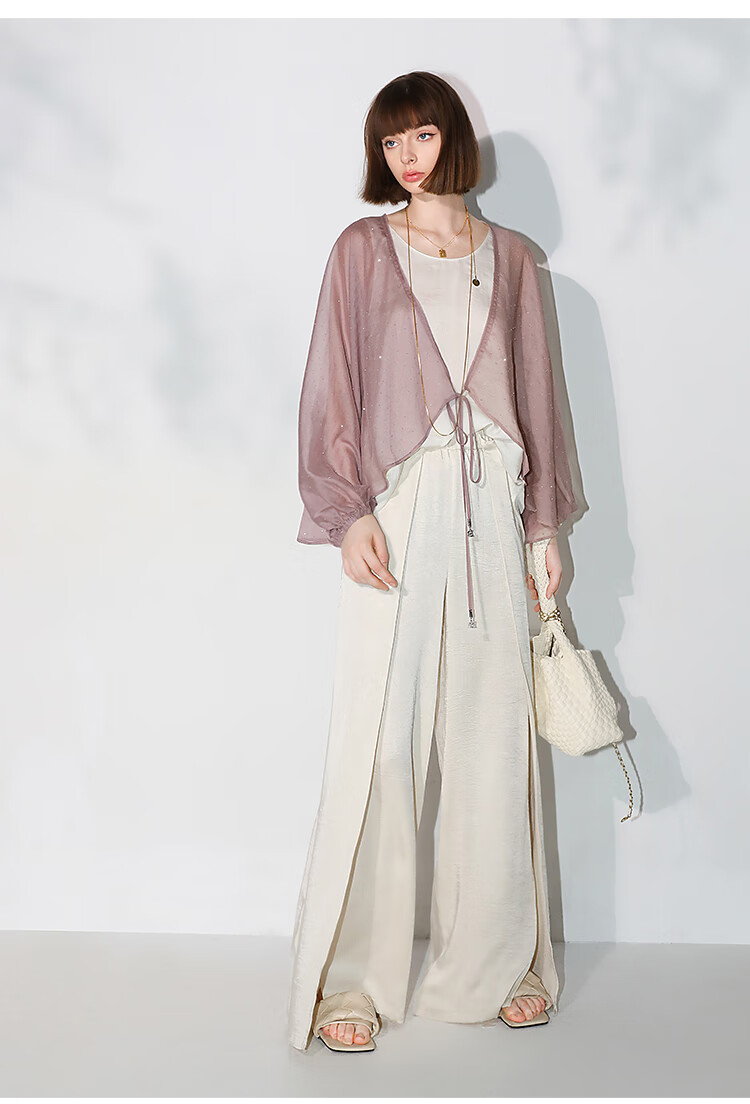 COCOBELLA璀璨星河手工烫钻微透视蝙蝠袖雪纺衫开衫SN7001